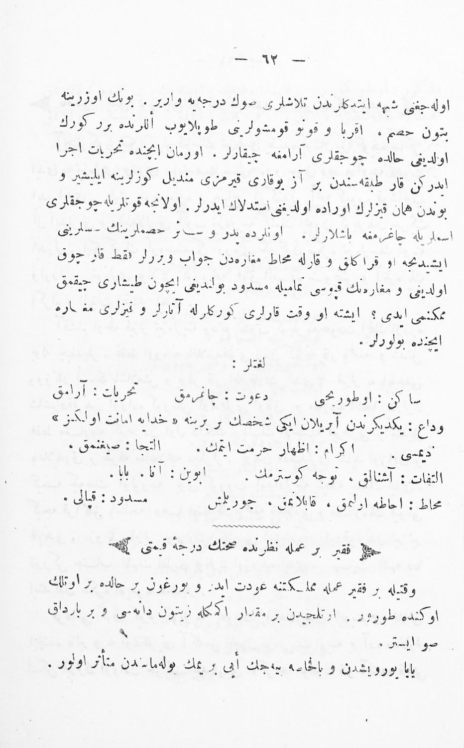 Αναγνωστικό για τους μαθητές της Ε' τάξης των Μουσουλμανικών Σχολείων που περιέχει κείμενα στα τουρκικά από την κοινωνική και την οικογενειακή ζωή και το φυσικό περιβάλλον.