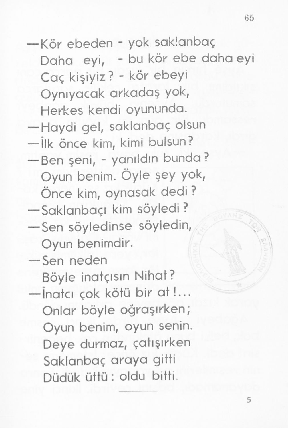 Αναγνωστικό για τους μαθητές της Ε΄ τάξης των Μουσουλμανικών Σχολείων που περιέχει κείμενα στα τουρκικά εμπνευσμένα από την κοινωνική και την οικογενειακή ζωή και το φυσικό περιβάλλον.