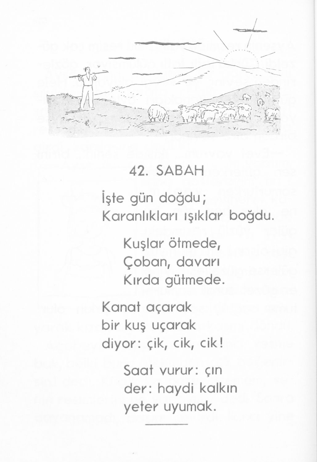Αναγνωστικό για τους μαθητές της Α΄ τάξης των Μουσουλμανικών Σχολείων που περιέχει κείμενα στα τουρκικά από την κοινωνική και την οικογενειακή ζωή και το φυσικό περιβάλλον.
