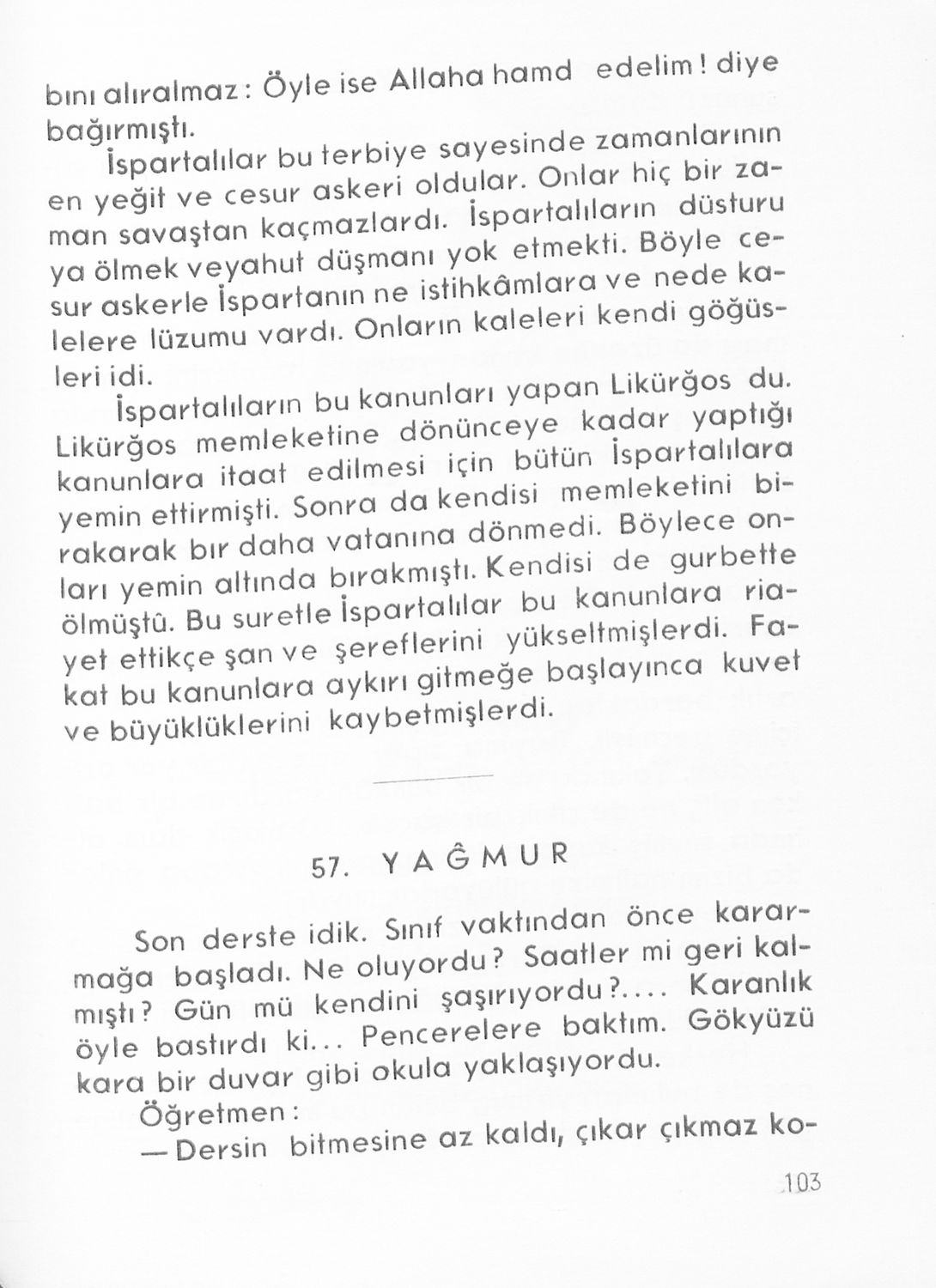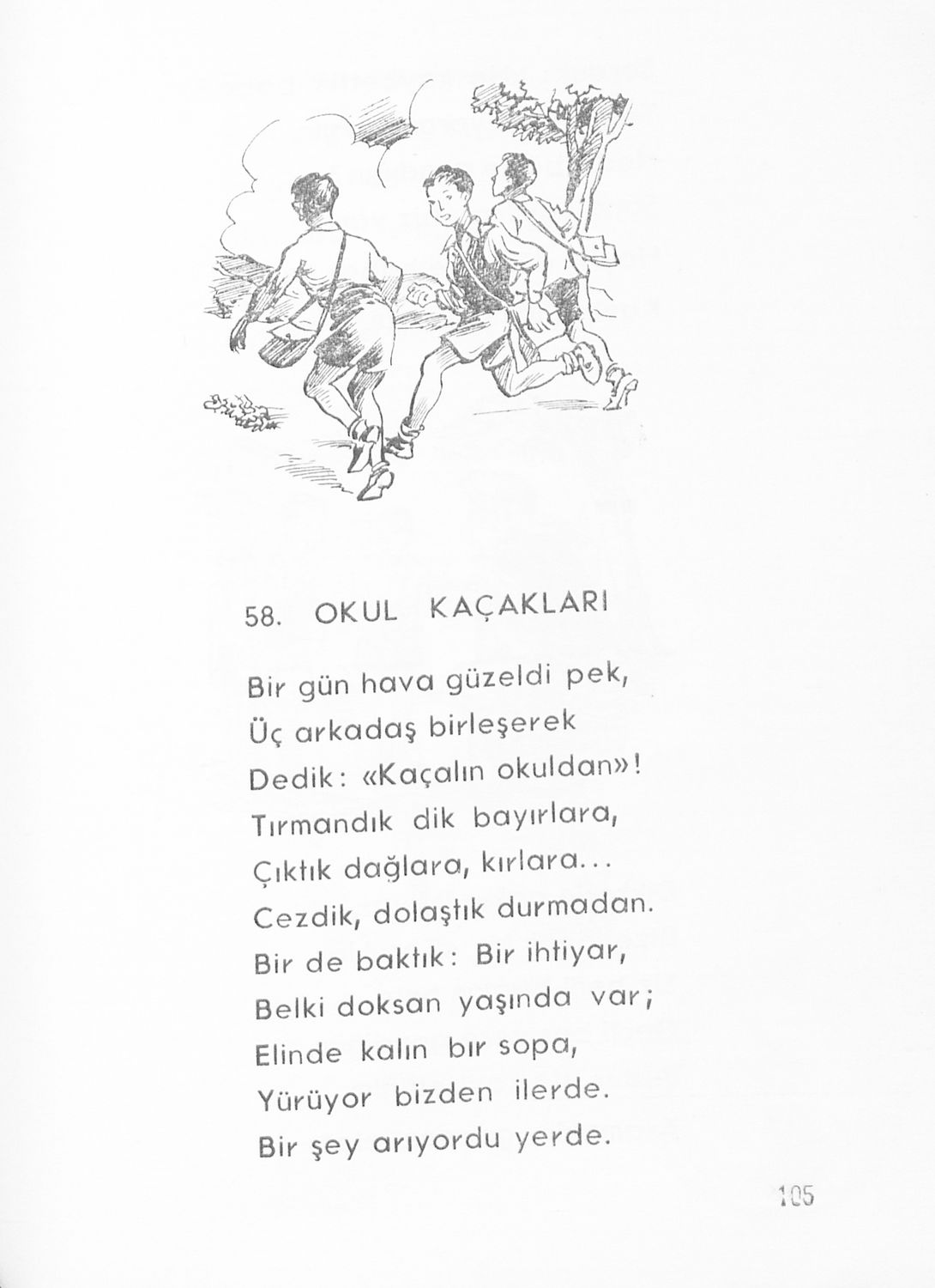Αναγνωστικό για τους μαθητές της Ε' τάξης των Μουσουλμανικών Σχολείων που περιέχει κείμενα στα τουρκικά από την κοινωνική και την οικογενειακή ζωή και το φυσικό περιβάλλον.