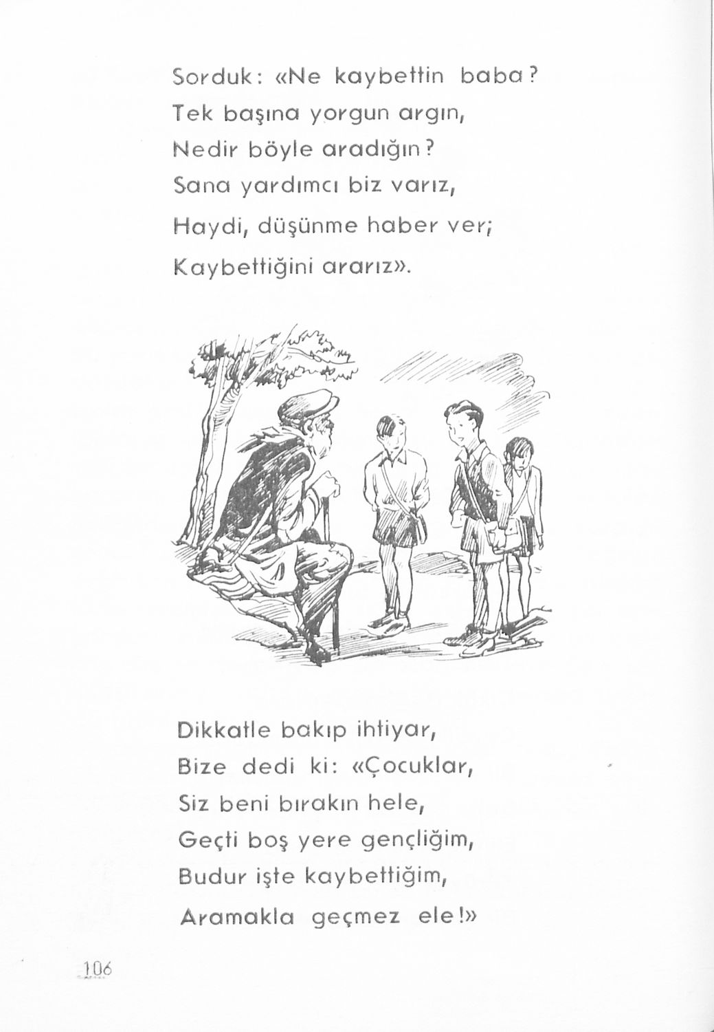 Αναγνωστικό για τους μαθητές της Δ' τάξης των Μουσουλμανικών Σχολείων που περιέχει κείμενα στα τουρκικά από την κοινωνική και την οικογενειακή ζωή και το φυσικό περιβάλλον.