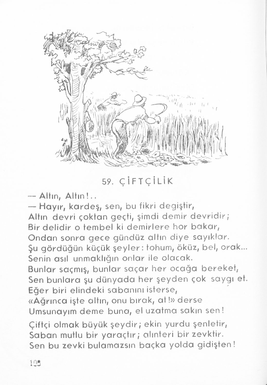 Αναγνωστικό για τους μαθητές της Γ΄ τάξης των Μουσουλμανικών Σχολείων που περιέχει κείμενα στα τουρκικά από την κοινωνική και την οικογενειακή ζωή και το φυσικό περιβάλλον.