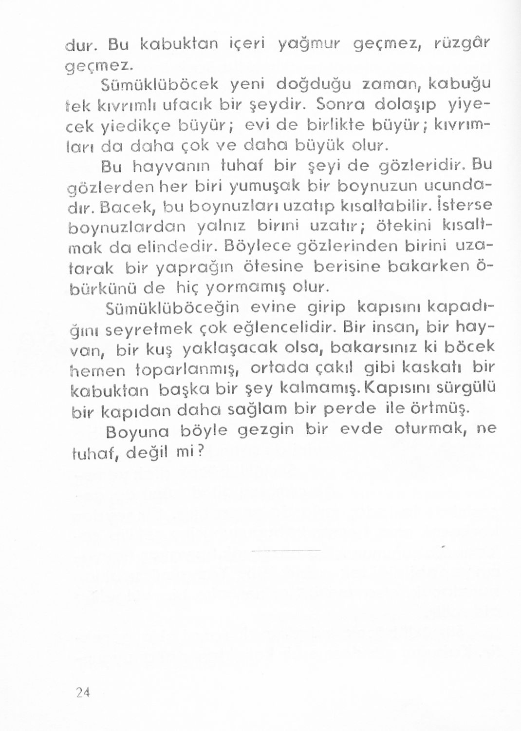 Αναγνωστικό για τους μαθητές της Ε' τάξης των Μουσουλμανικών Σχολείων που περιέχει κείμενα στα τουρκικά από την κοινωνική και την οικογενειακή ζωή και το φυσικό περιβάλλον.