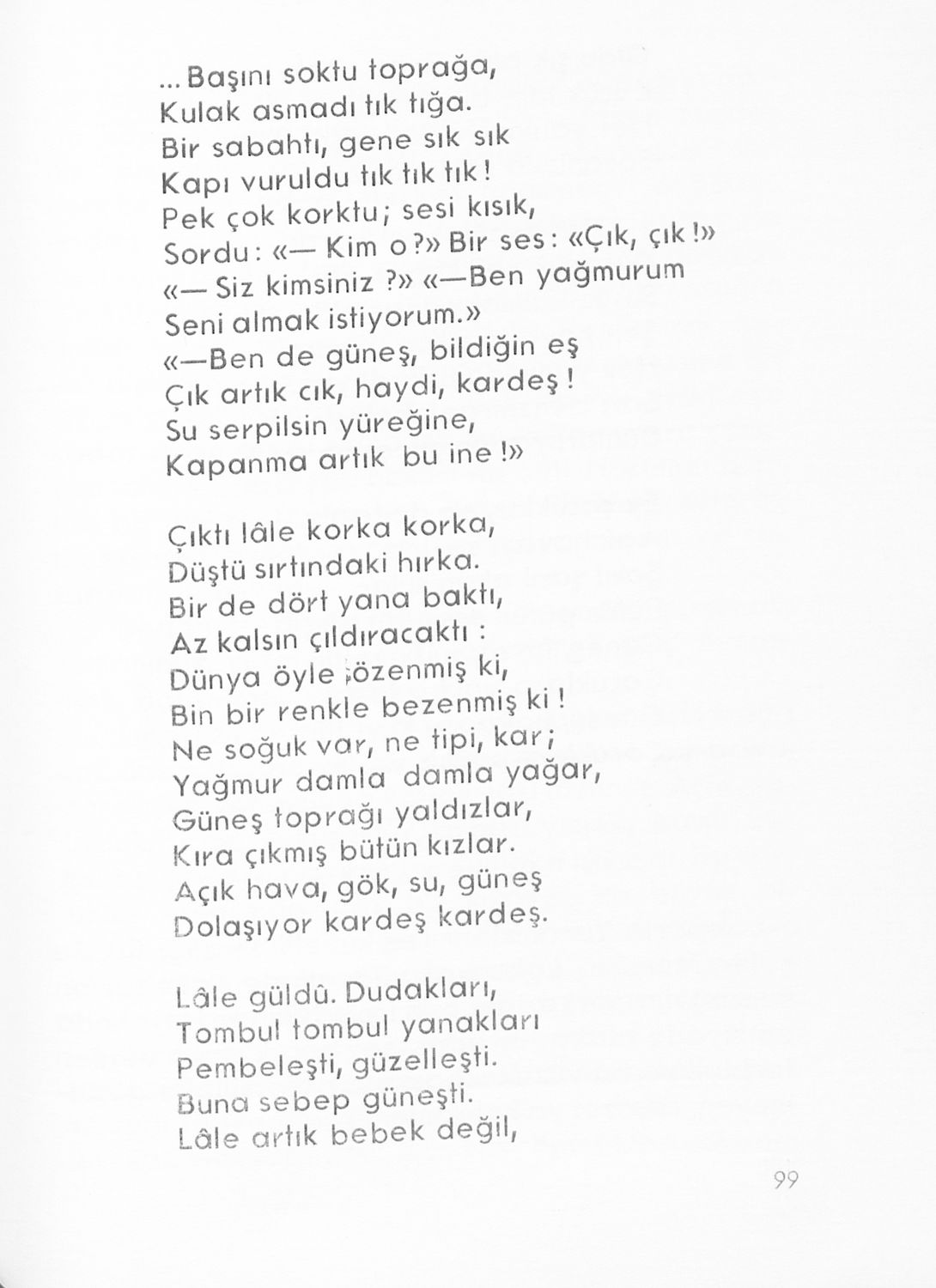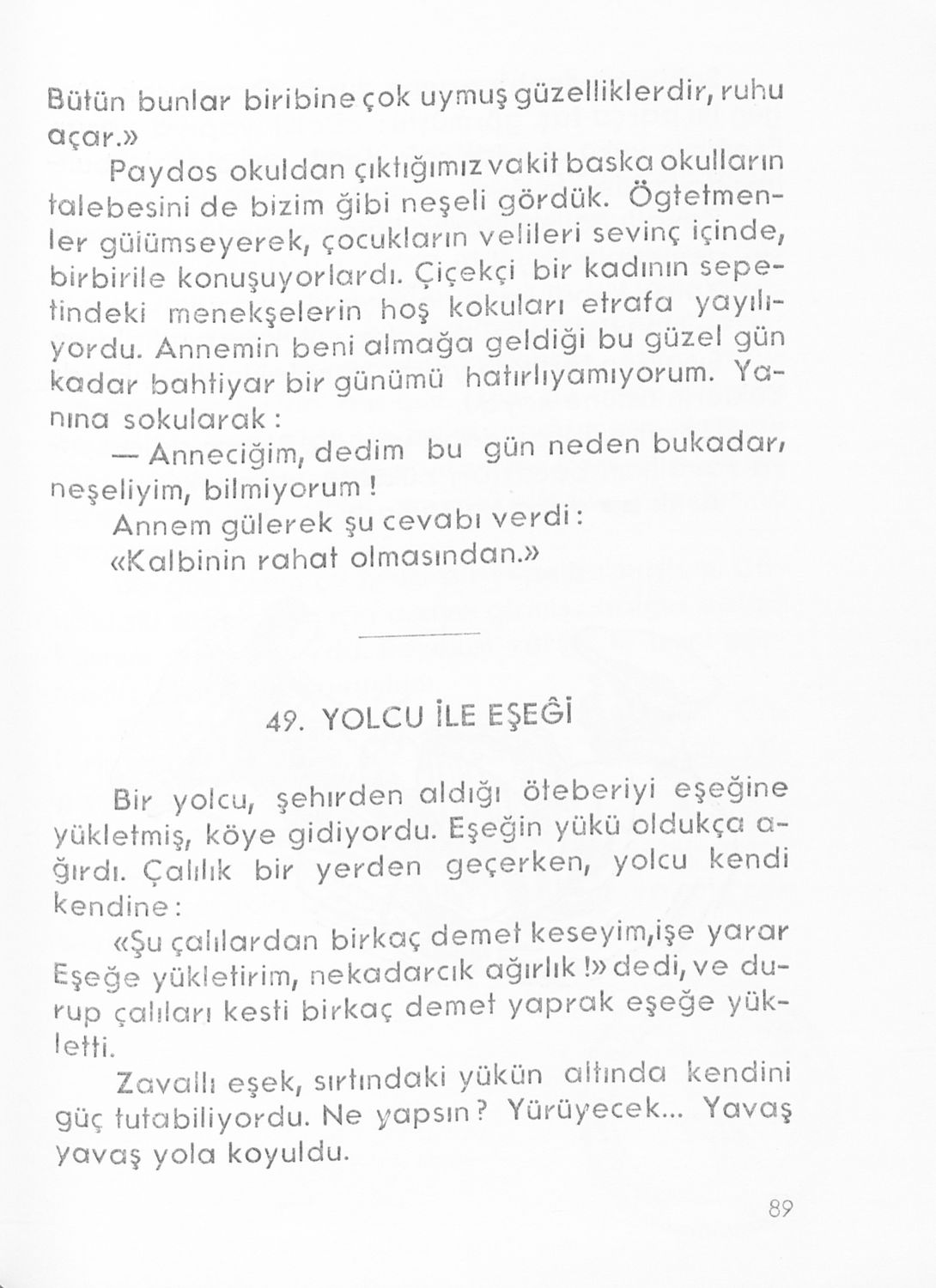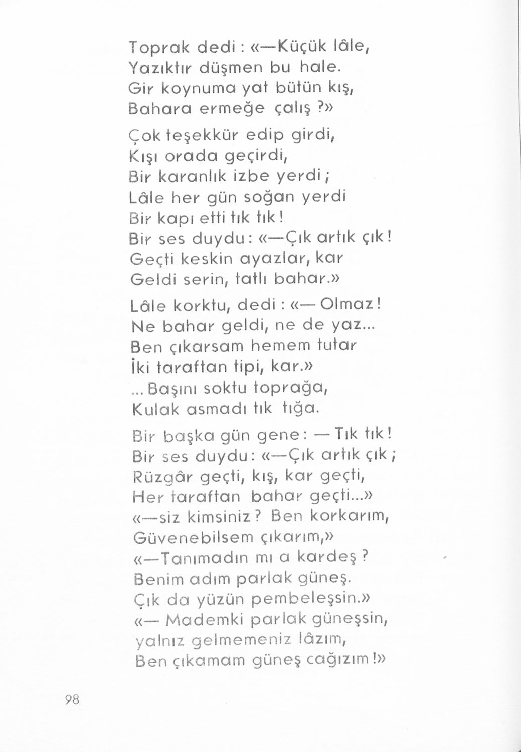 Αναγνωστικό για τους μαθητές της Ε΄ τάξης των Μουσουλμανικών Σχολείων που περιέχει κείμενα στα τουρκικά εμπνευσμένα από την κοινωνική και την οικογενειακή ζωή και το φυσικό περιβάλλον.