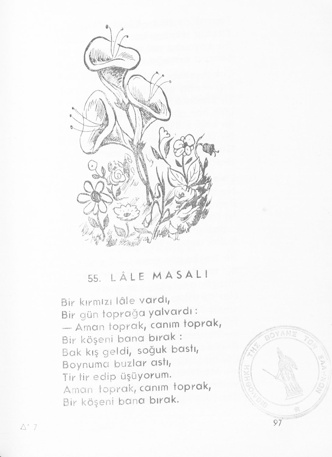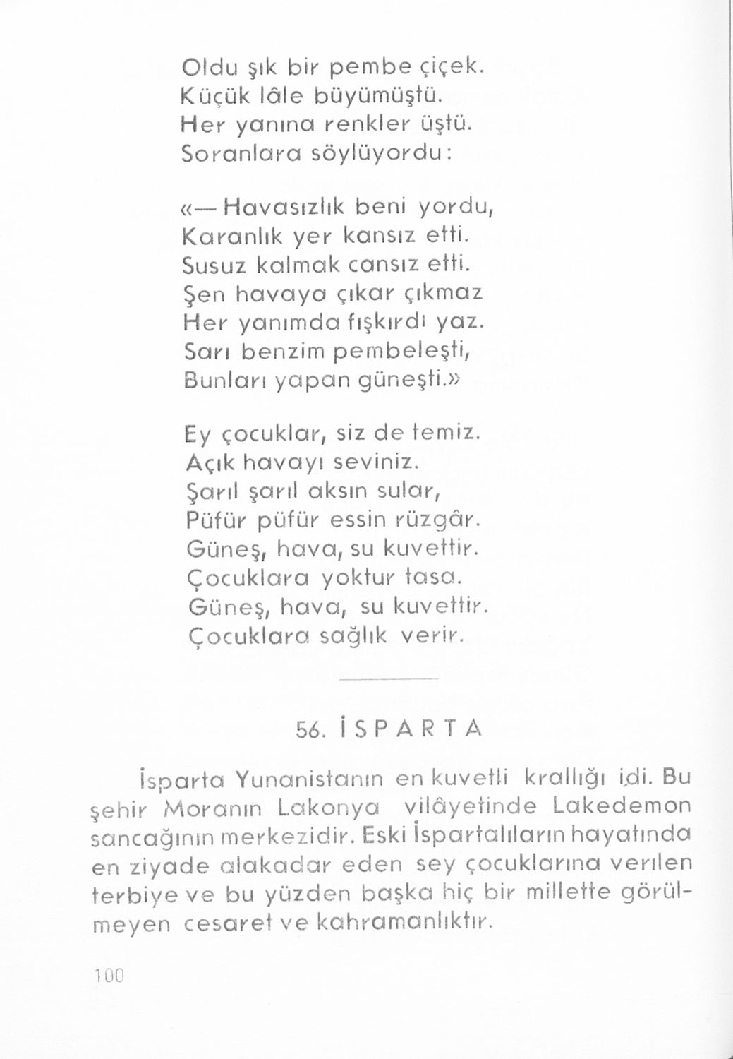 Αναγνωστικό για τους μαθητές της Ε' τάξης των Μουσουλμανικών Σχολείων που περιέχει κείμενα στα τουρκικά από την κοινωνική και την οικογενειακή ζωή και το φυσικό περιβάλλον.