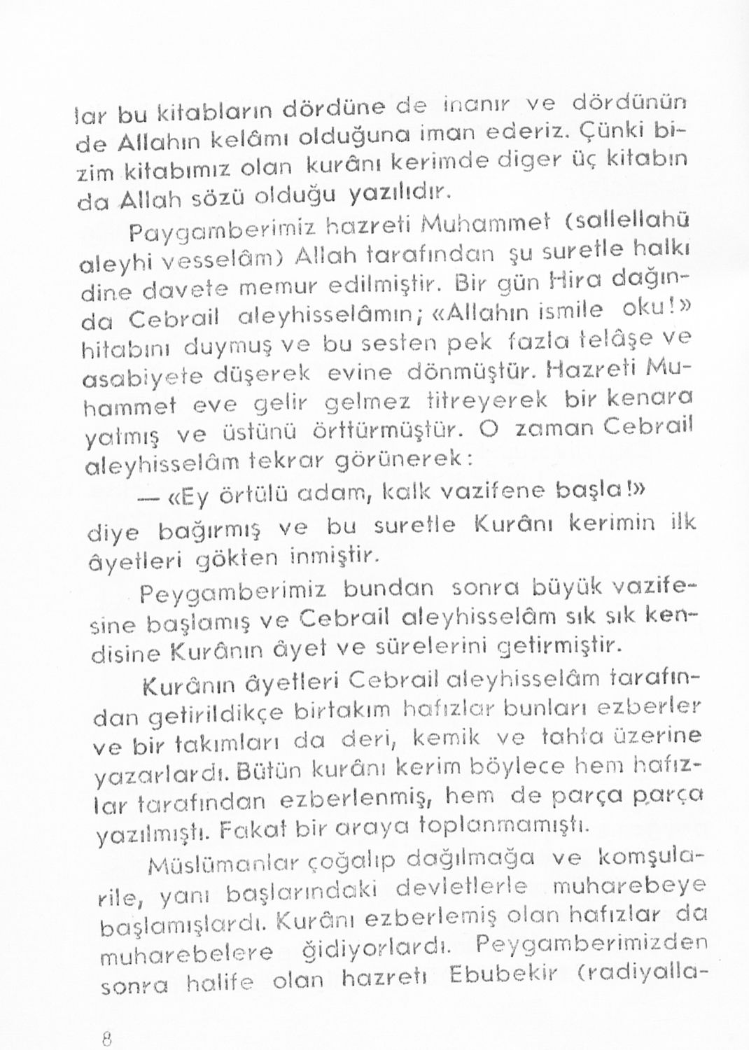 Αναγνωστικό για τους μαθητές της Ε' τάξης των Μουσουλμανικών Σχολείων που περιέχει κείμενα στα τουρκικά από την κοινωνική και την οικογενειακή ζωή και το φυσικό περιβάλλον.