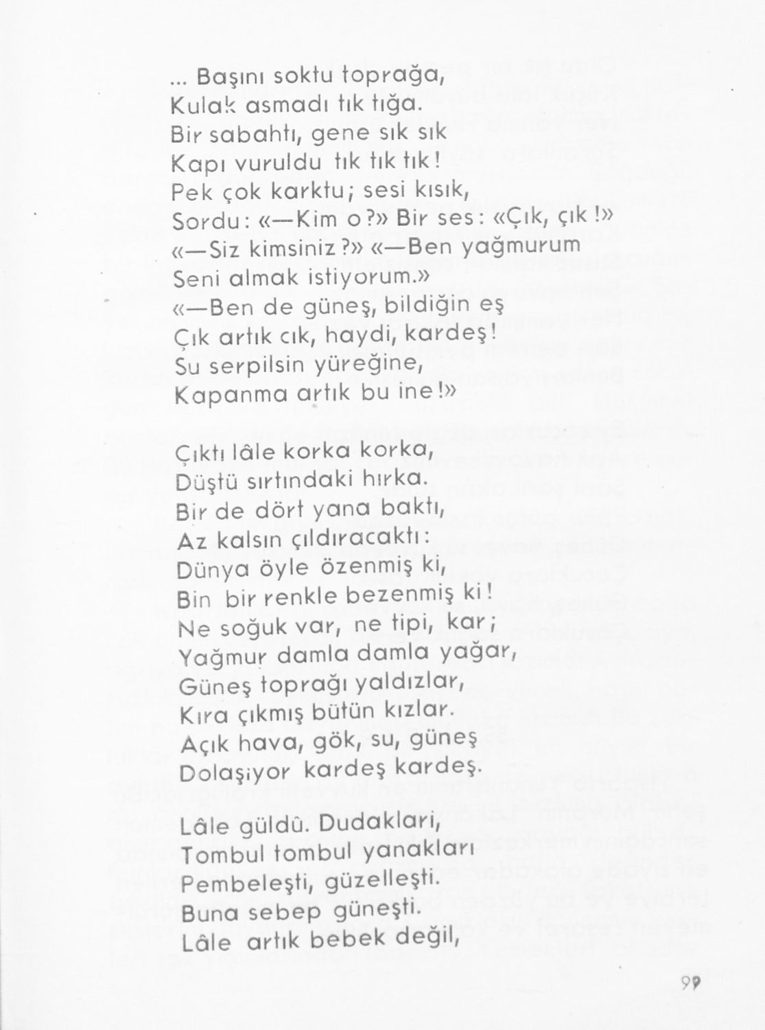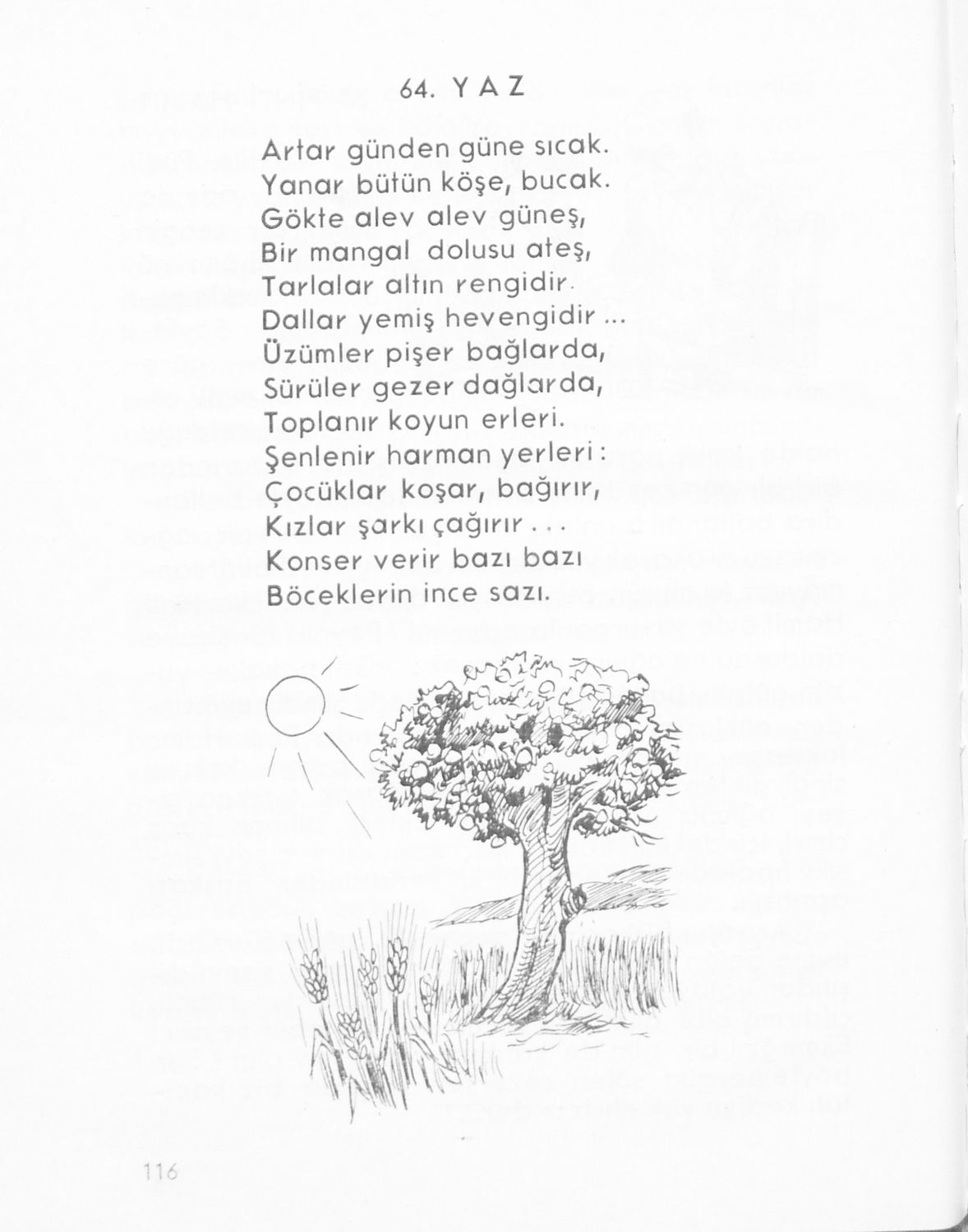 Αναγνωστικό για τους μαθητές της Δ΄ τάξης των Μουσουλμανικών Σχολείων που περιέχει κείμενα στα τουρκικά εμπνευσμένα από την κοινωνική και την οικογενειακή ζωή και το φυσικό περιβάλλον.