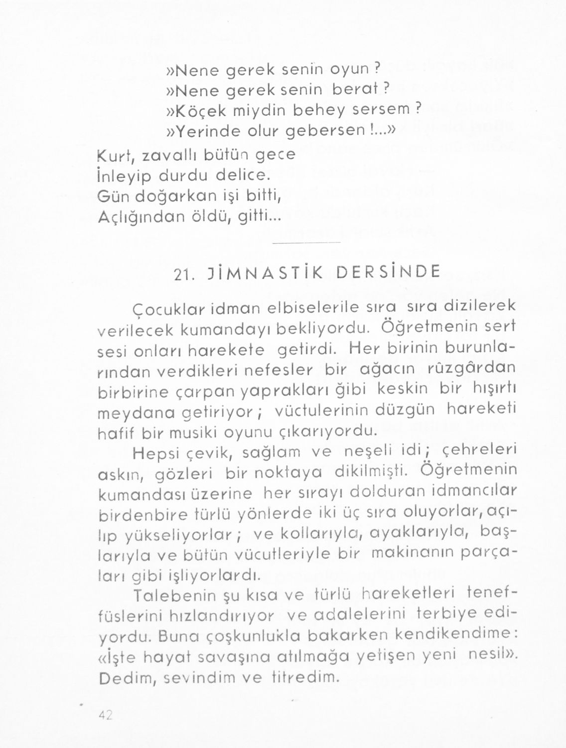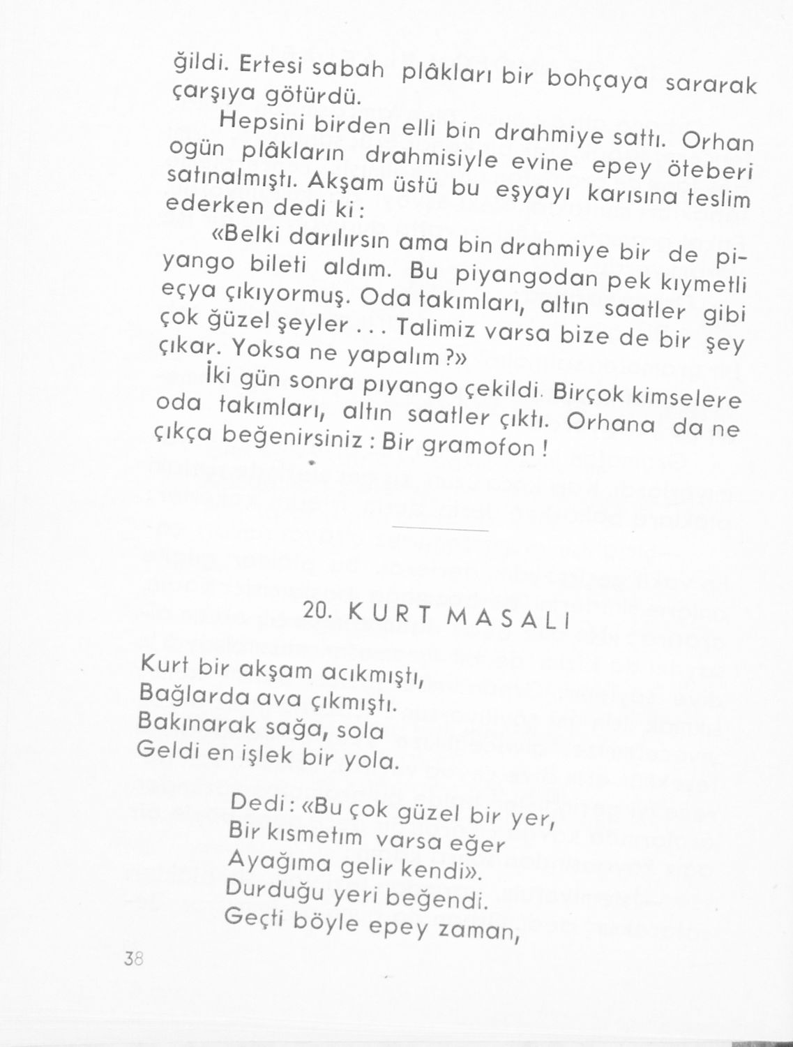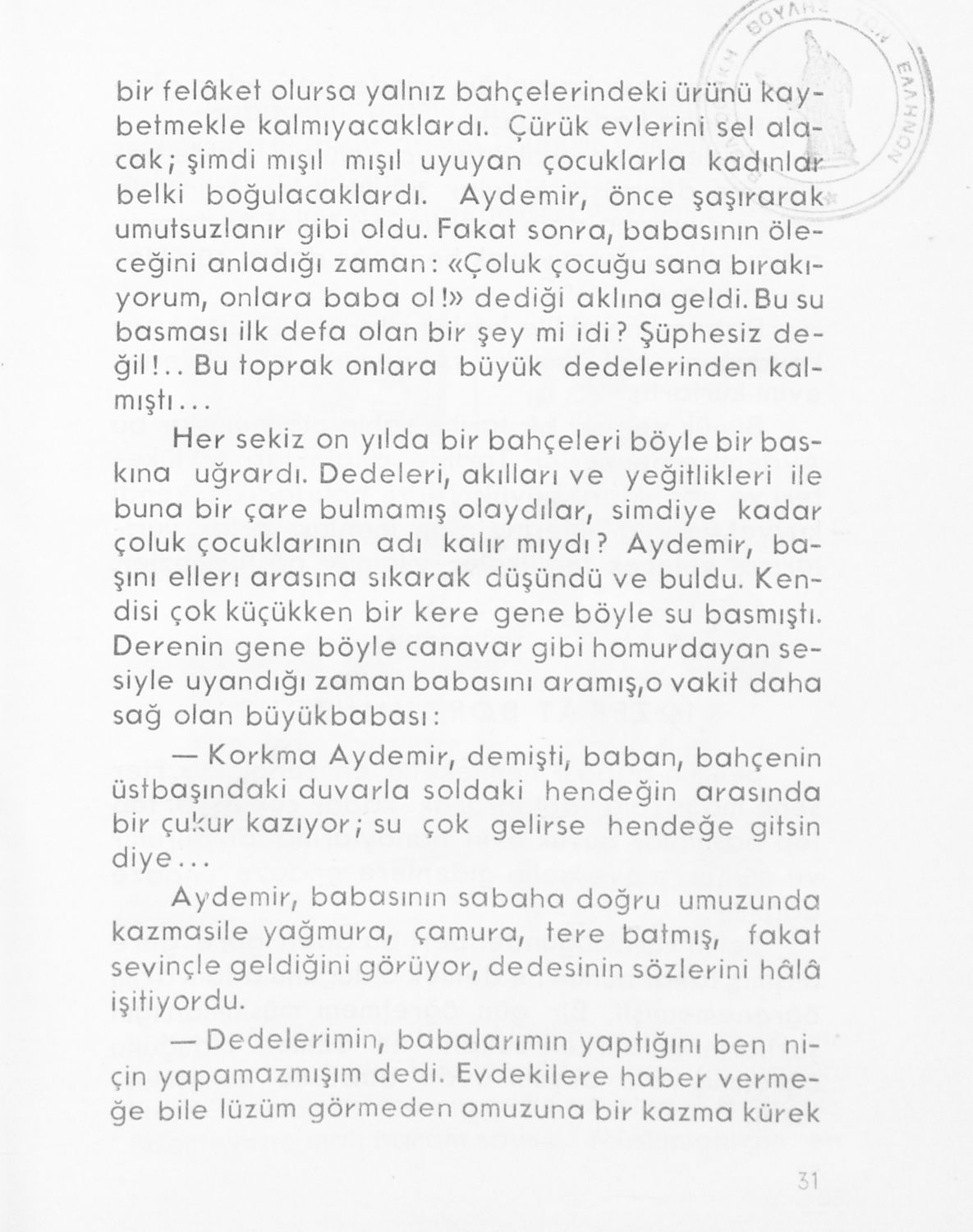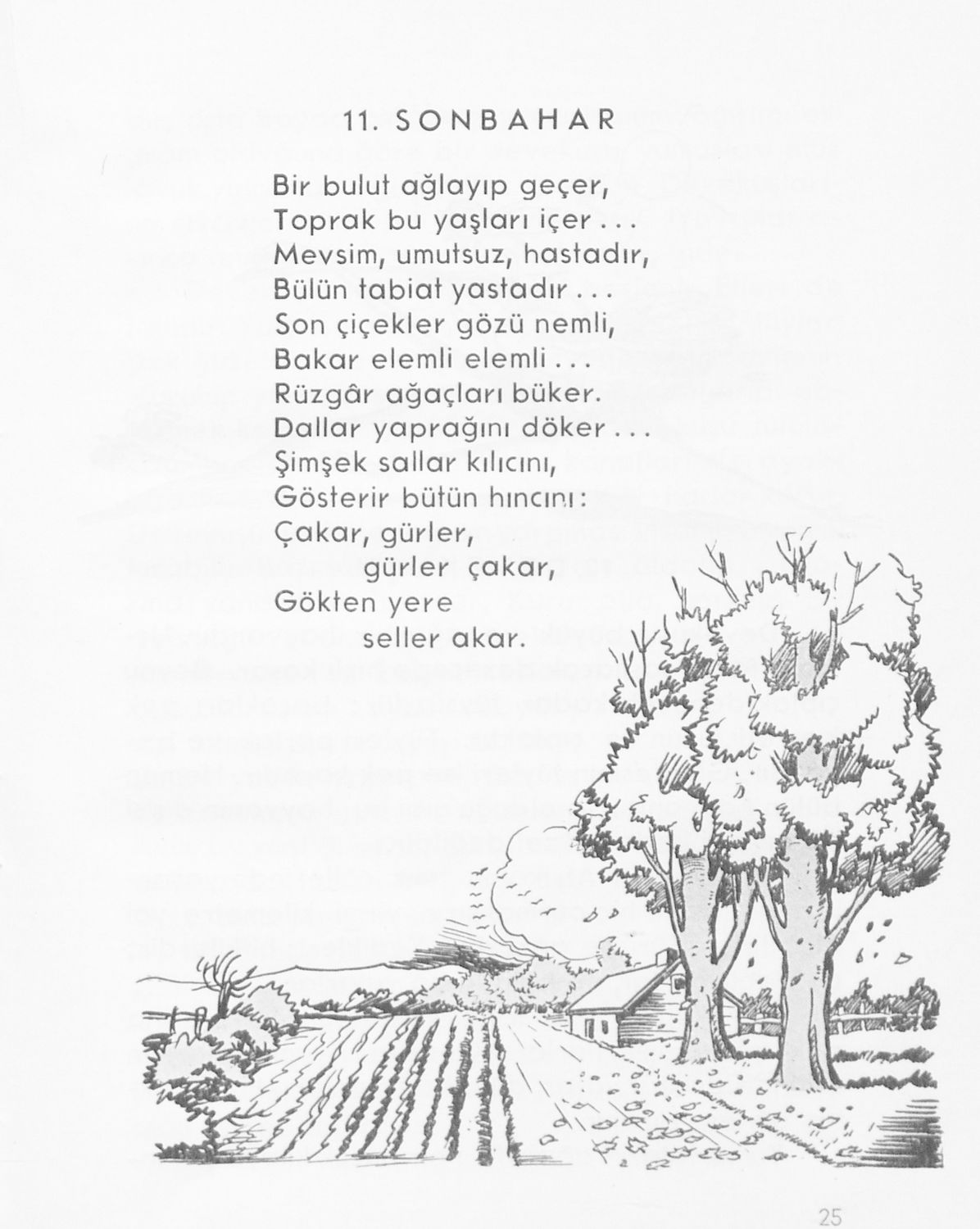 Αναγνωστικό για τους μαθητές της Ε' τάξης των Μουσουλμανικών Σχολείων που περιέχει κείμενα στα τουρκικά από την κοινωνική και την οικογενειακή ζωή και το φυσικό περιβάλλον.