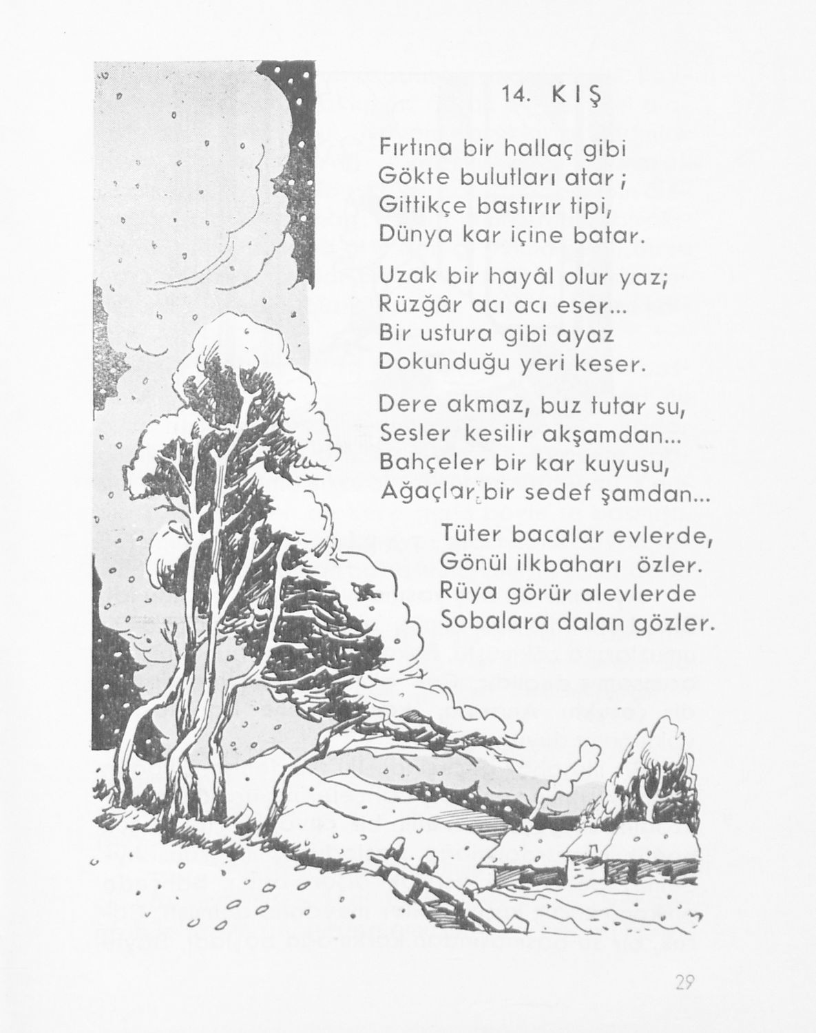 Αναγνωστικό για τους μαθητές της Β΄ τάξης των Μουσουλμανικών Σχολείων που περιέχει κείμενα στα τουρκικά από την κοινωνική και την οικογενειακή ζωή και το φυσικό περιβάλλον.