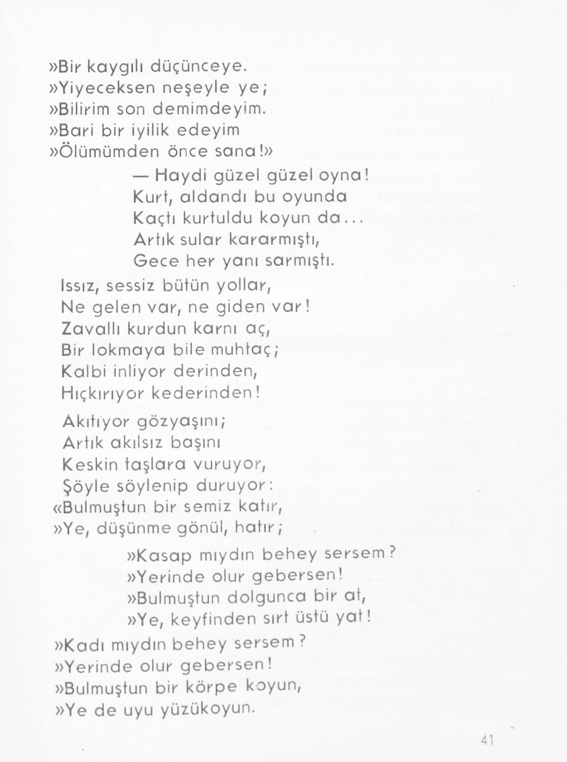 Αναγνωστικό για τους μαθητές της Δ' τάξης των Μουσουλμανικών Σχολείων που περιέχει κείμενα στα τουρκικά εμπνευσμένα από την κοινωνική και την οικογενειακή ζωή και το φυσικό περιβάλλον.