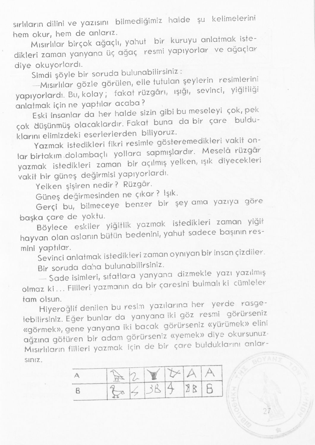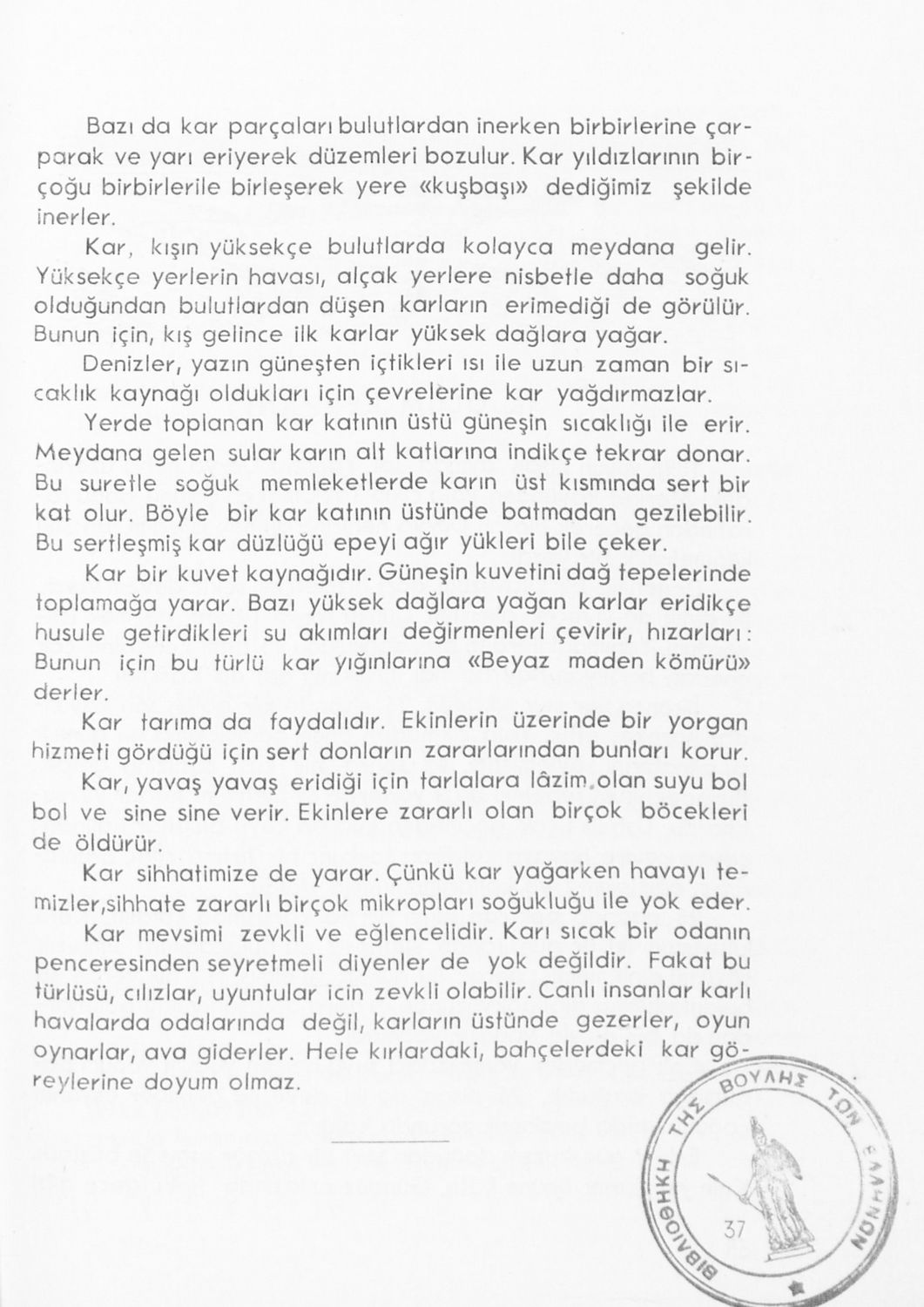 Αναγνωστικό για τους μαθητές της Ε' τάξης των Μουσουλμανικών Σχολείων που περιέχει κείμενα στα τουρκικά από την κοινωνική και την οικογενειακή ζωή και το φυσικό περιβάλλον.