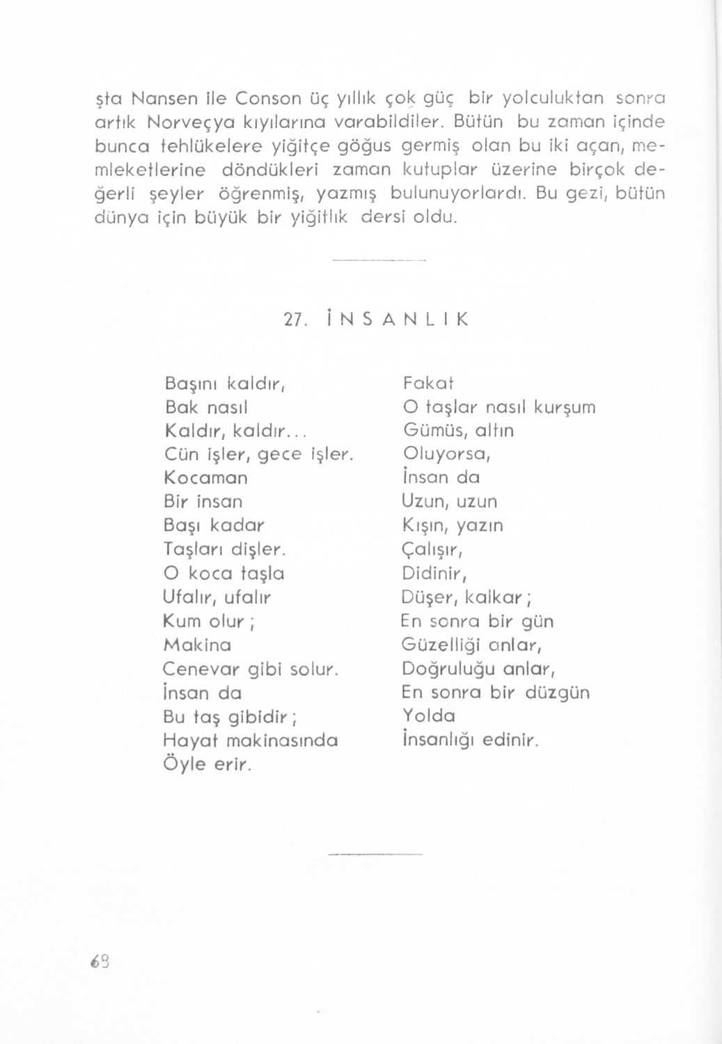 Αναγνωστικό για τους μαθητές της Ε' τάξης των Μουσουλμανικών Σχολείων που περιέχει κείμενα στα τουρκικά από την κοινωνική και την οικογενειακή ζωή και το φυσικό περιβάλλον.