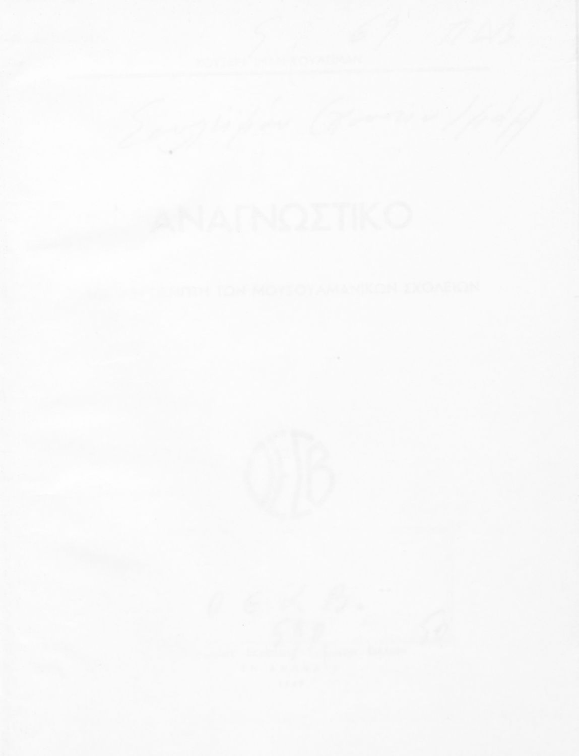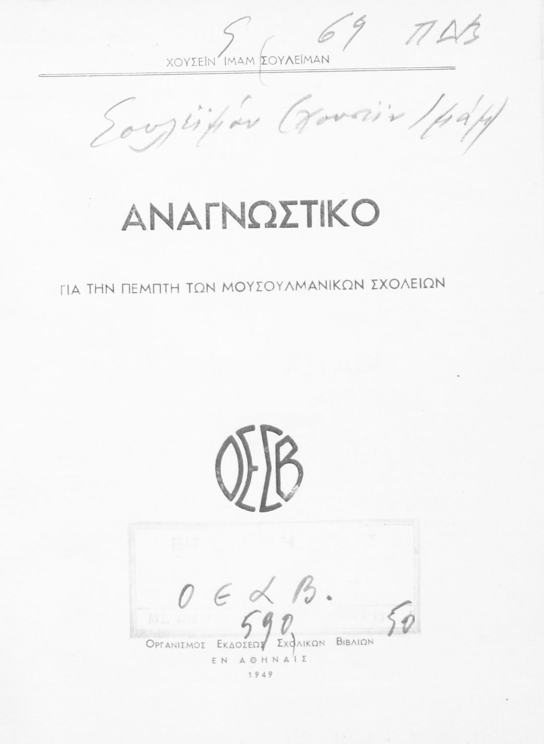 Κωδικός αναγνώρισης: 03-20644190 Τίτλος: Αναγνωστικό για την Πέμπτη των Μουσουλμανικών Σχολείων Συγγραφέας: Huseyin Imam Suleyman Μέγεθος και υπόστρωμα: Σχολικό εγχειρίδιο, μαλακό εξώφυλλο, 114 σελίδες. Εικόνες, σκίτσα (ασπρόμαυρα). |