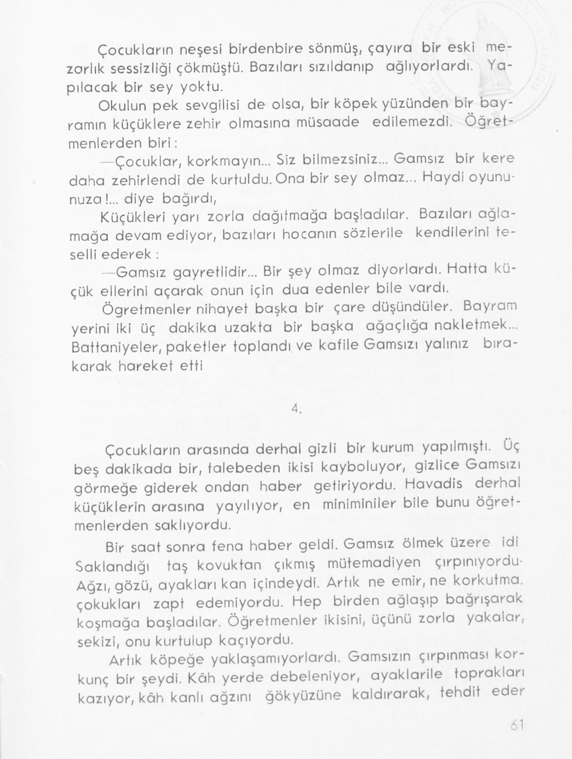 Αναγνωστικό για τους μαθητές της Δ' τάξης των Μουσουλμανικών Σχολείων που περιέχει κείμενα στα τουρκικά από την κοινωνική και την οικογενειακή ζωή και το φυσικό περιβάλλον.