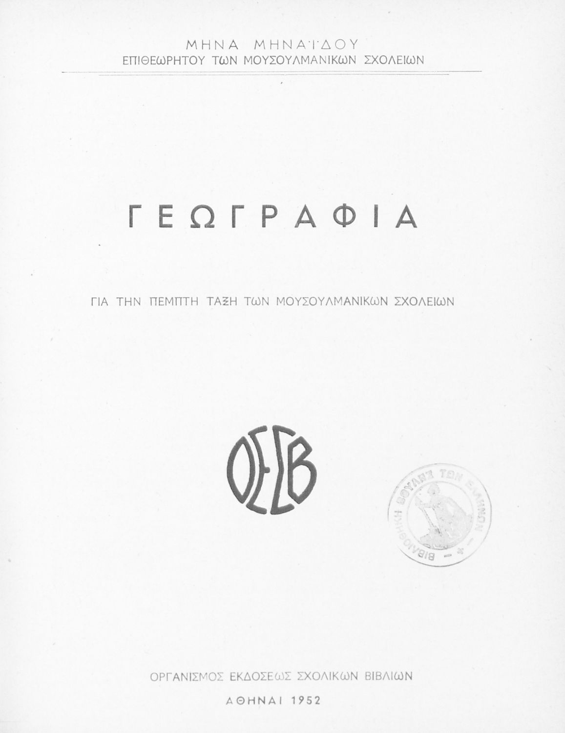Σχολικό εγχειρίδιο Ιστορίας για τους μαθητές της Γ' Δημοτικού των μουσουλμανικών σχολείων που παρουσιάζει την ελληνική μυθολογία. / Σχολικό εγχειρίδιο Γεωγραφίας για τους μαθητές της Γ' Δημοτικού των ...