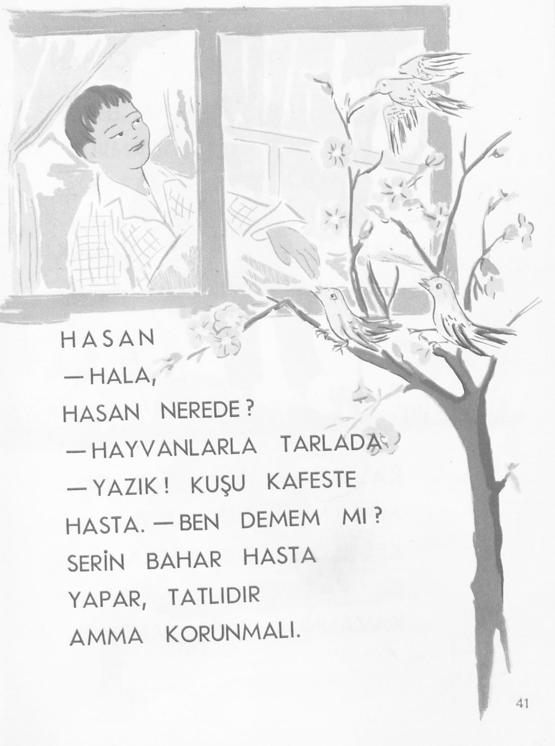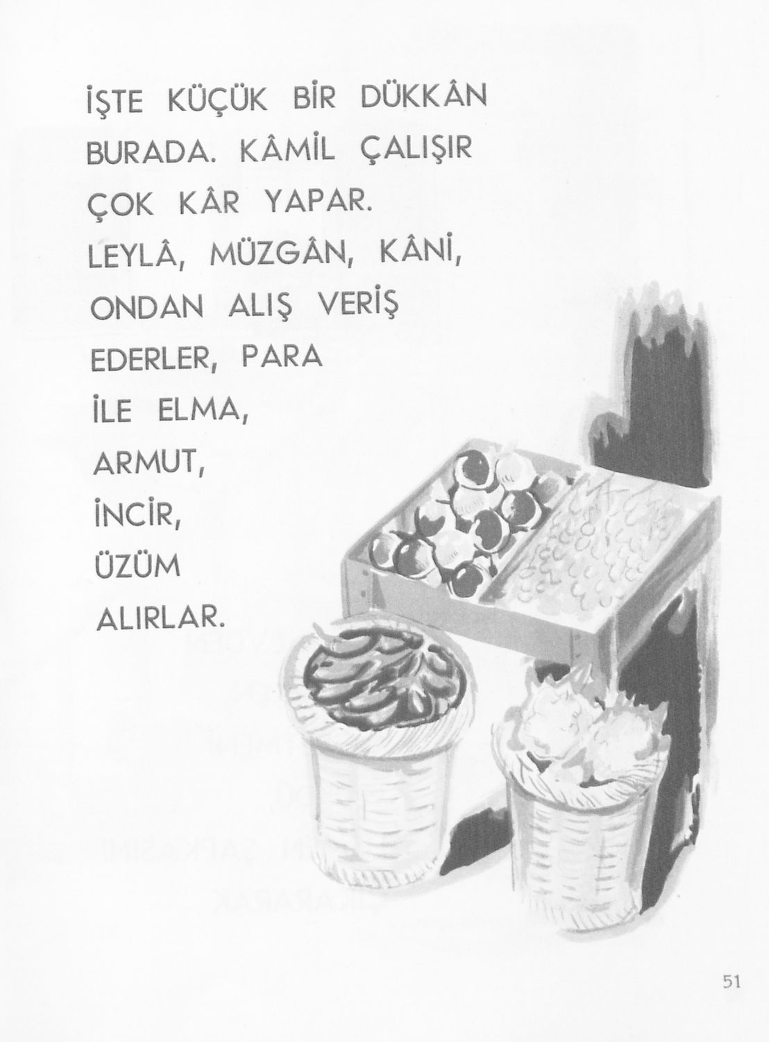 Αναγνωστικό Α΄ Δημοτικού για τα Μουσουλμανικά Σχολεία που περιέχει κείμενα στα τουρκικά εμπνευσμένα από την κοινωνική και οικογενειακή ζωή και το φυσικό περιβάλλον.