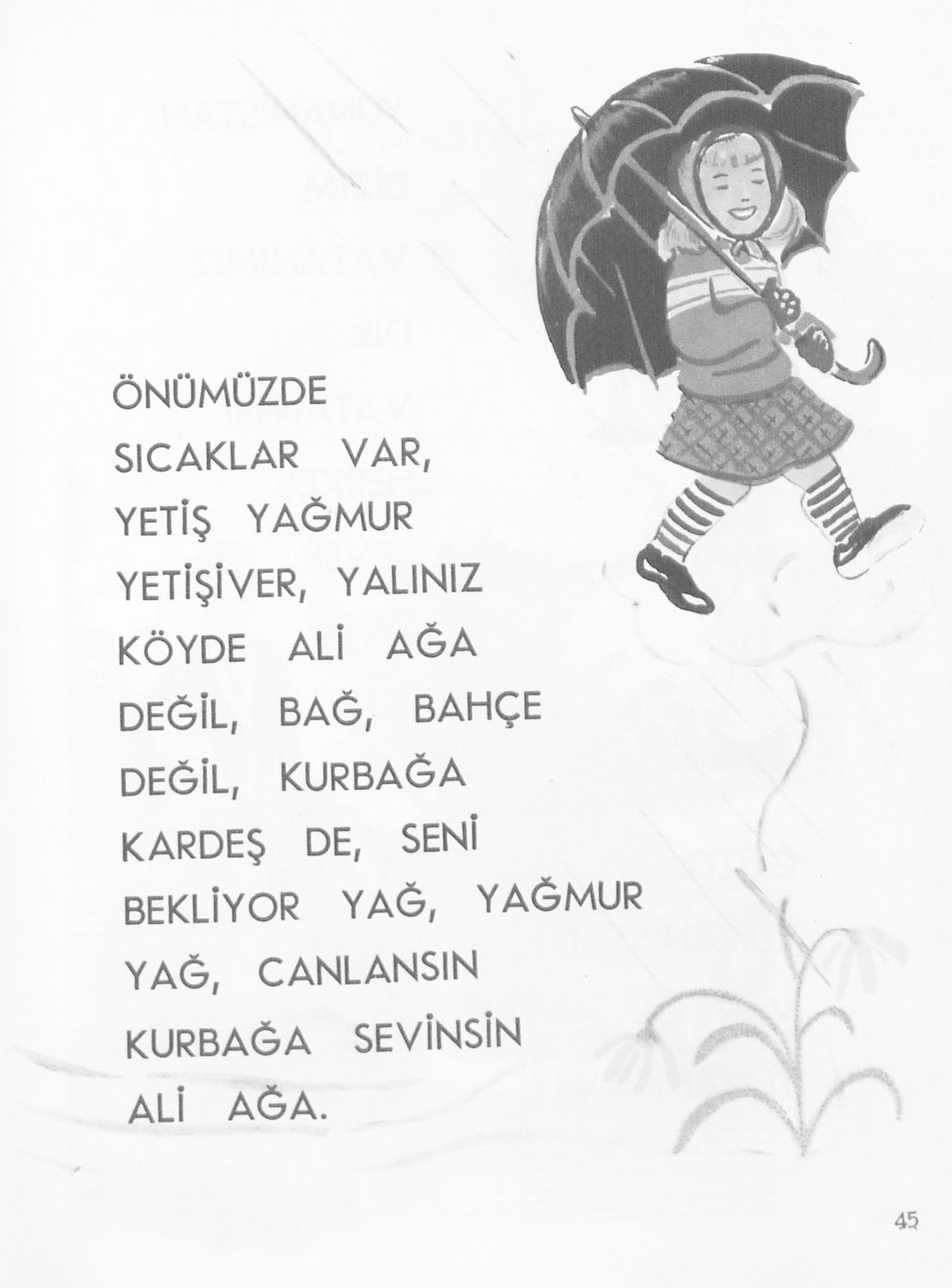 Αναγνωστικό για τους μαθητές της Β΄ τάξης των Μουσουλμανικών Σχολείων που περιέχει κείμενα στα τουρκικά από την κοινωνική και την οικογενειακή ζωή και το φυσικό περιβάλλον.
