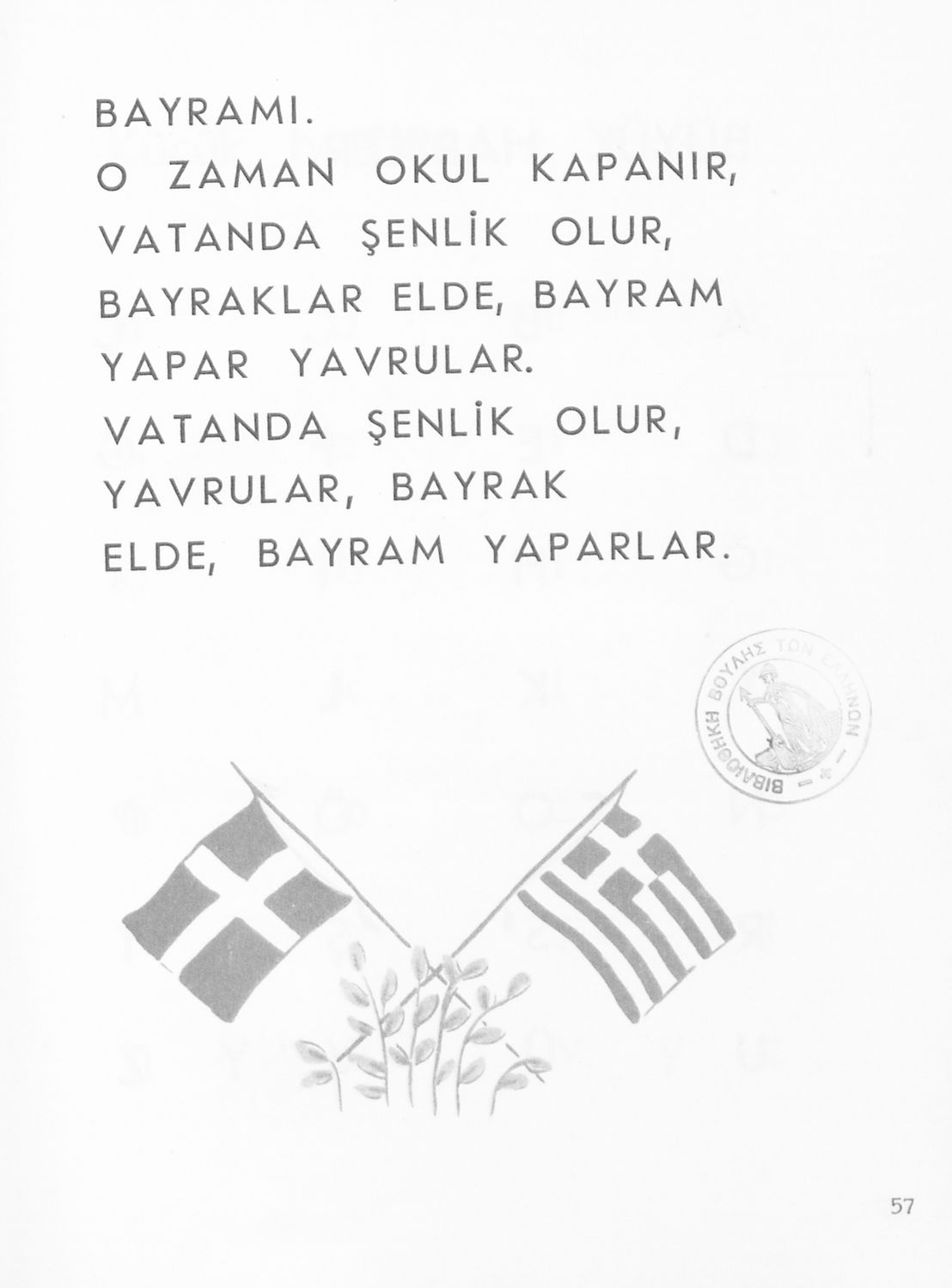Αναγνωστικό για τους μαθητές της Β΄ τάξης των Μουσουλμανικών Σχολείων που περιέχει κείμενα στα τουρκικά από την κοινωνική και την οικογενειακή ζωή και το φυσικό περιβάλλον.