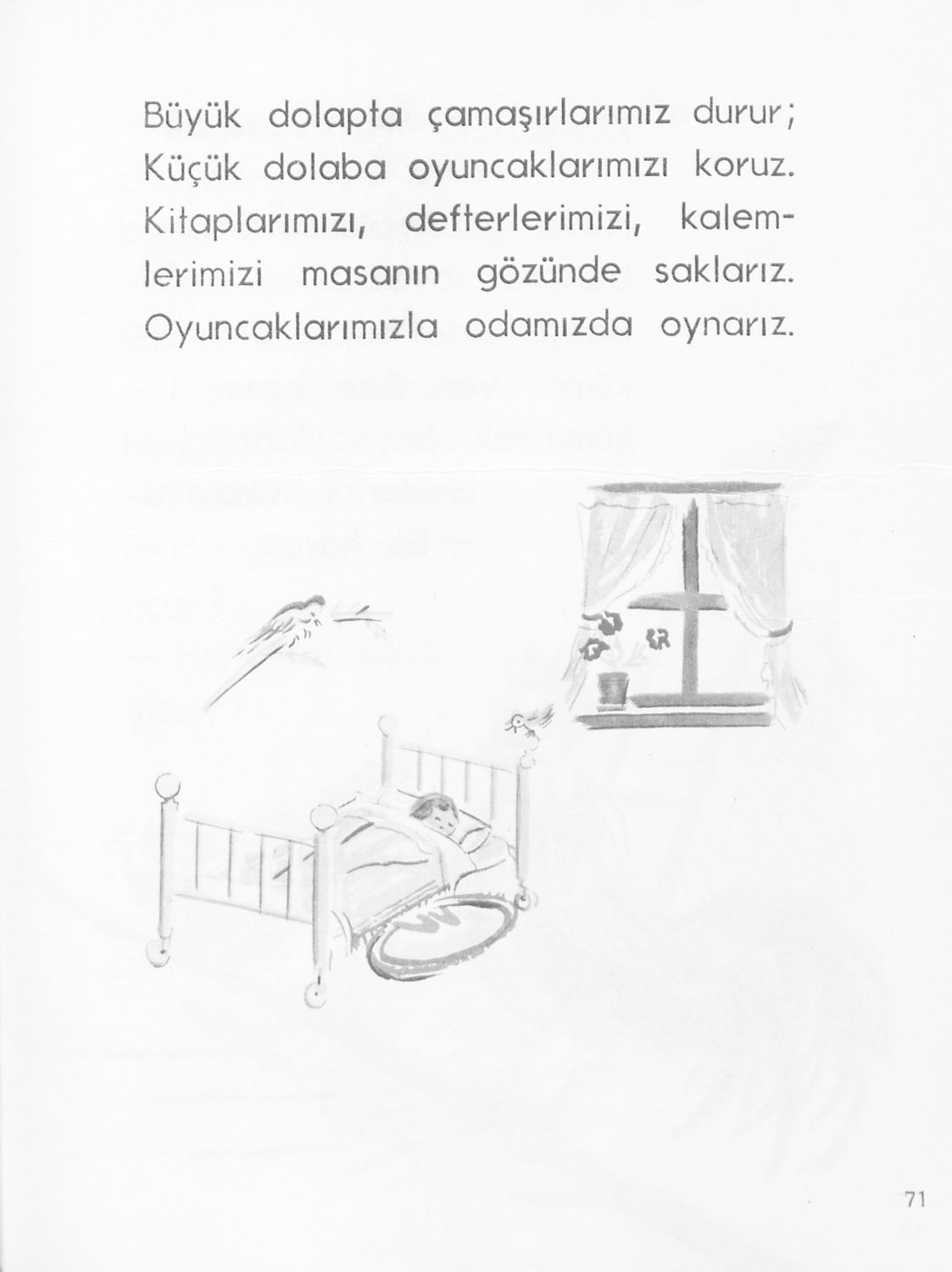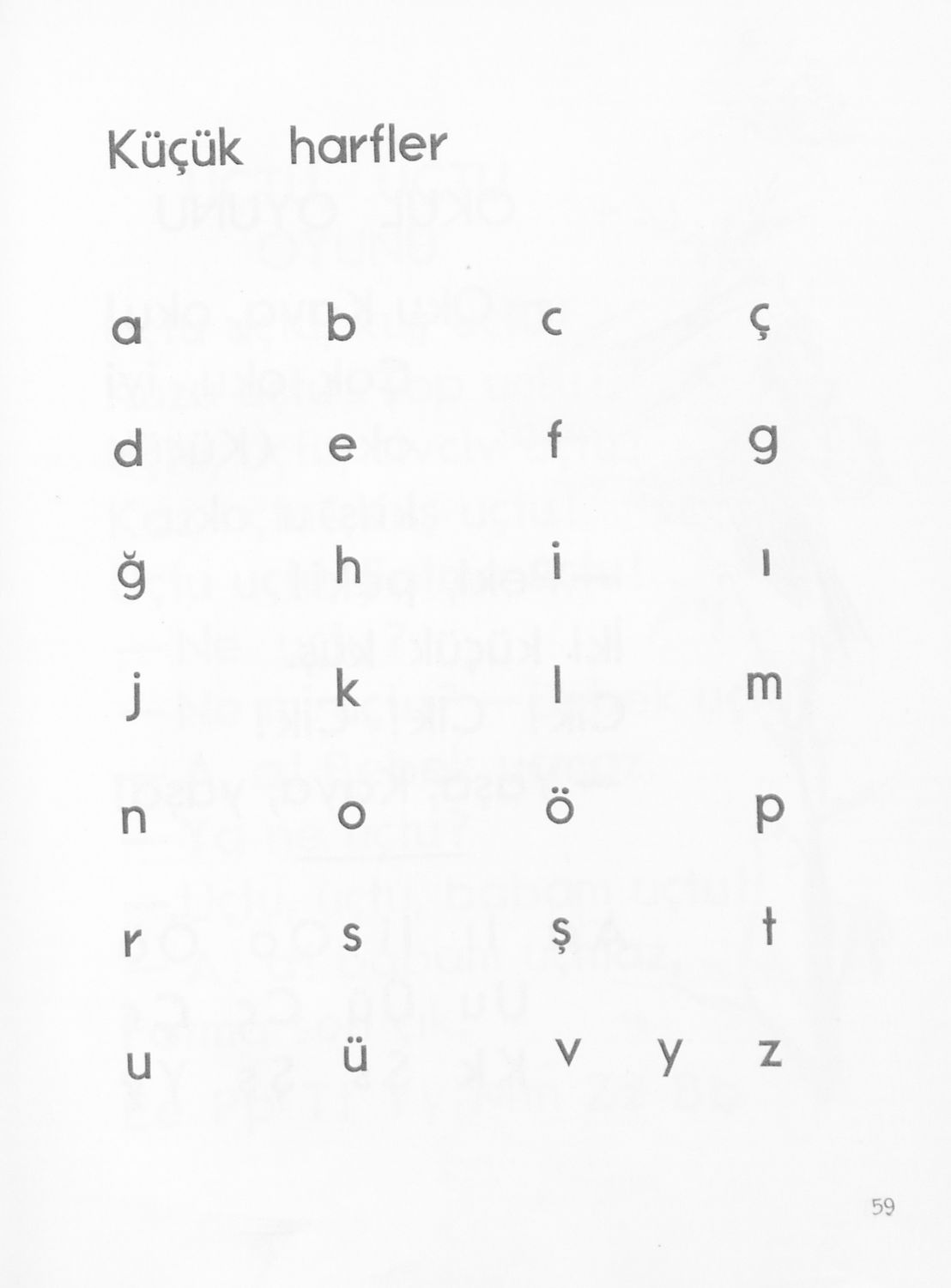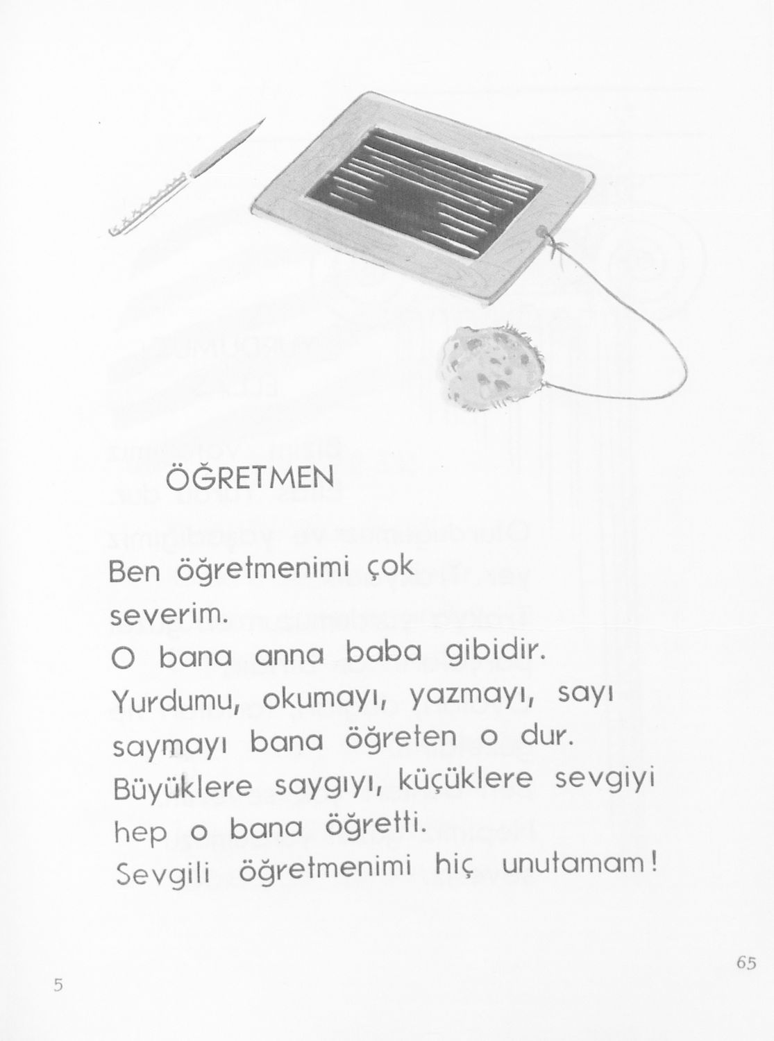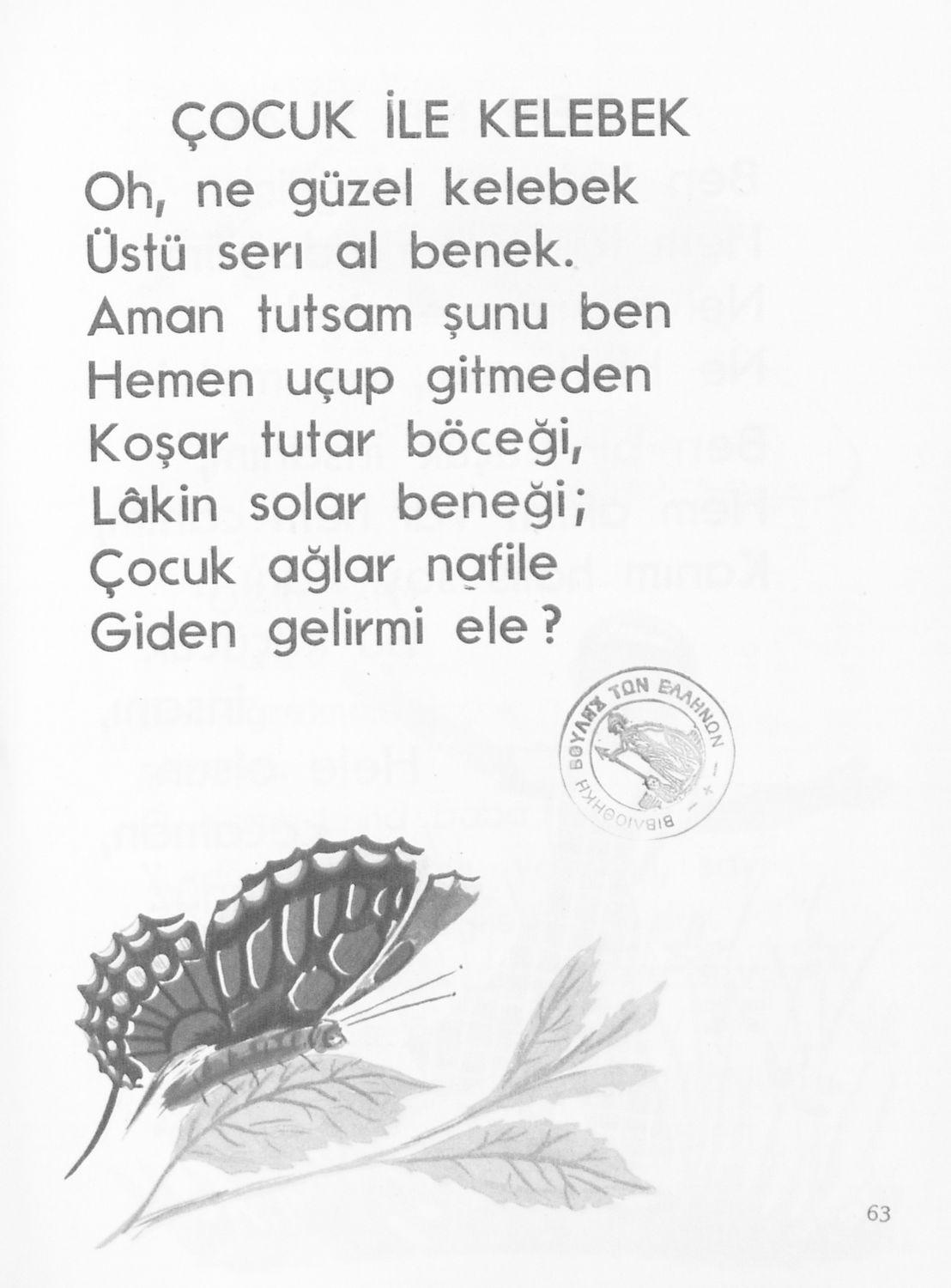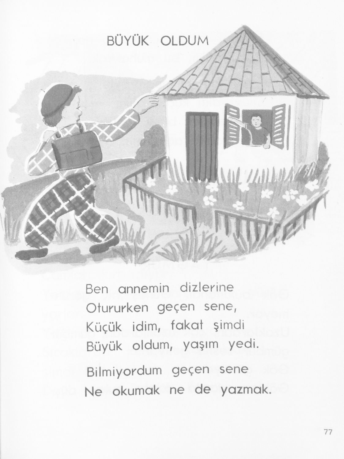 Αναγνωστικό Α΄ Δημοτικού για τα Μουσουλμανικά Σχολεία που περιέχει κείμενα στα τουρκικά εμπνευσμένα από την κοινωνική και οικογενειακή ζωή και το φυσικό περιβάλλον.