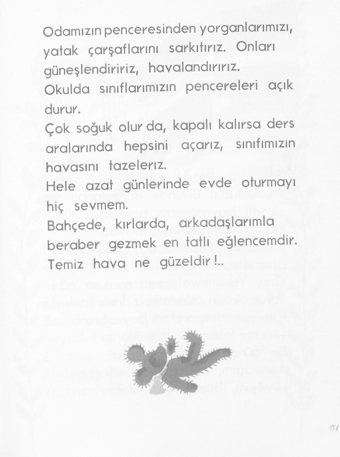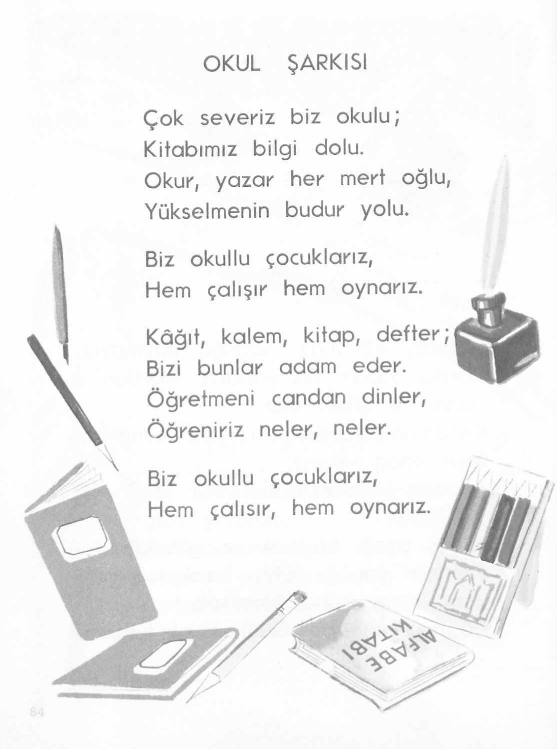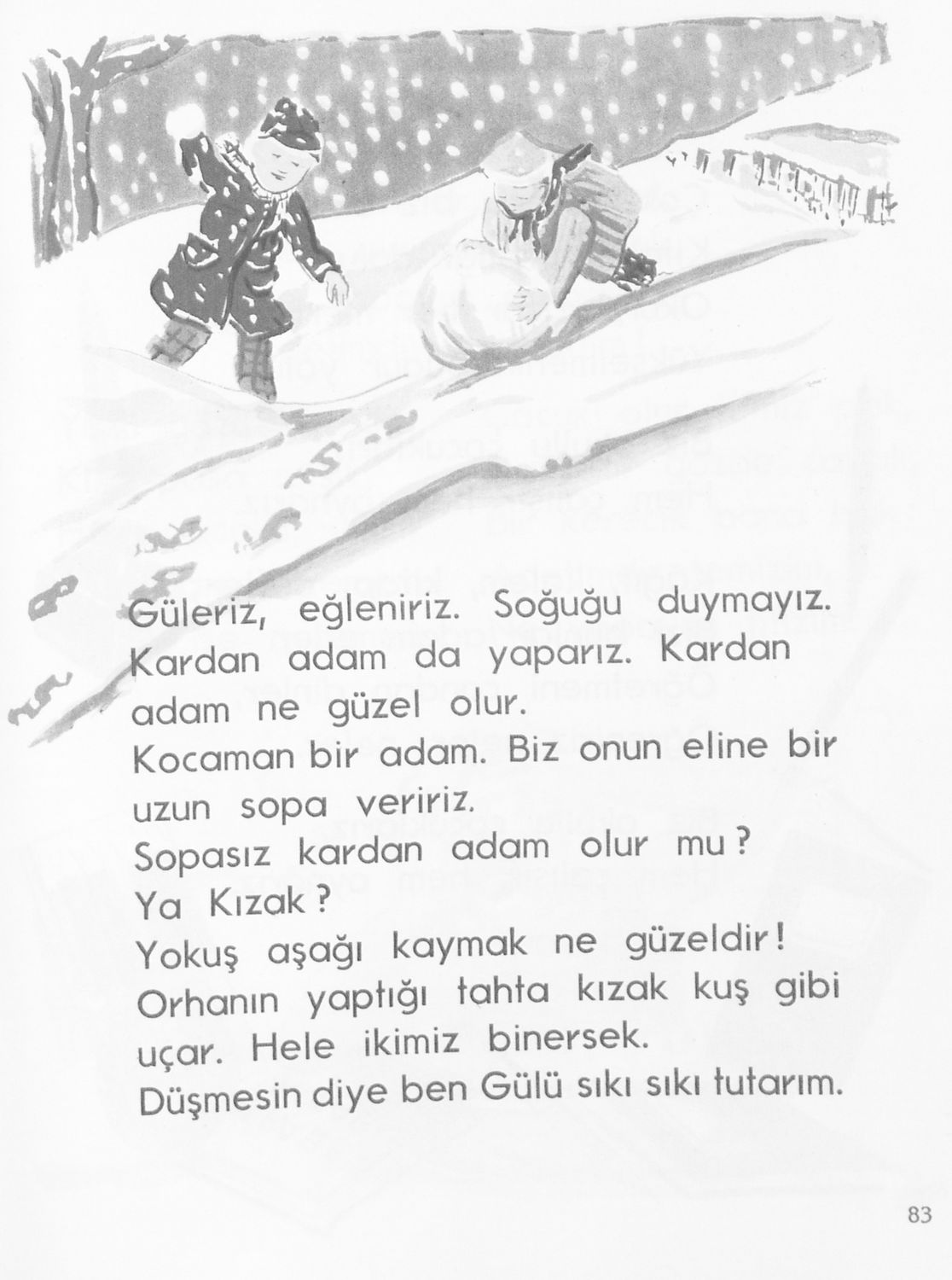 Αναγνωστικό για τους μαθητές της Β΄ τάξης των Μουσουλμανικών Σχολείων που περιέχει κείμενα στα τουρκικά από την κοινωνική και την οικογενειακή ζωή και το φυσικό περιβάλλον.