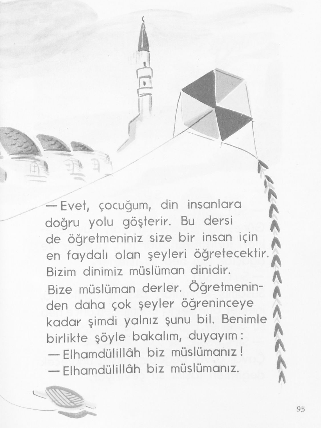 Αναγνωστικό Α΄ Δημοτικού για τα Μουσουλμανικά Σχολεία που περιέχει κείμενα στα τουρκικά εμπνευσμένα από την κοινωνική και οικογενειακή ζωή και το φυσικό περιβάλλον.