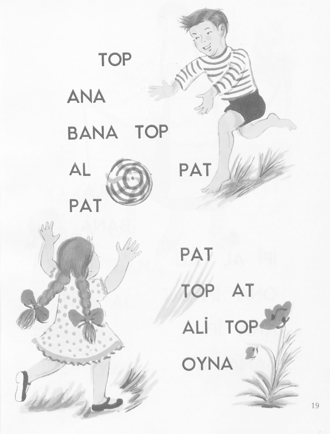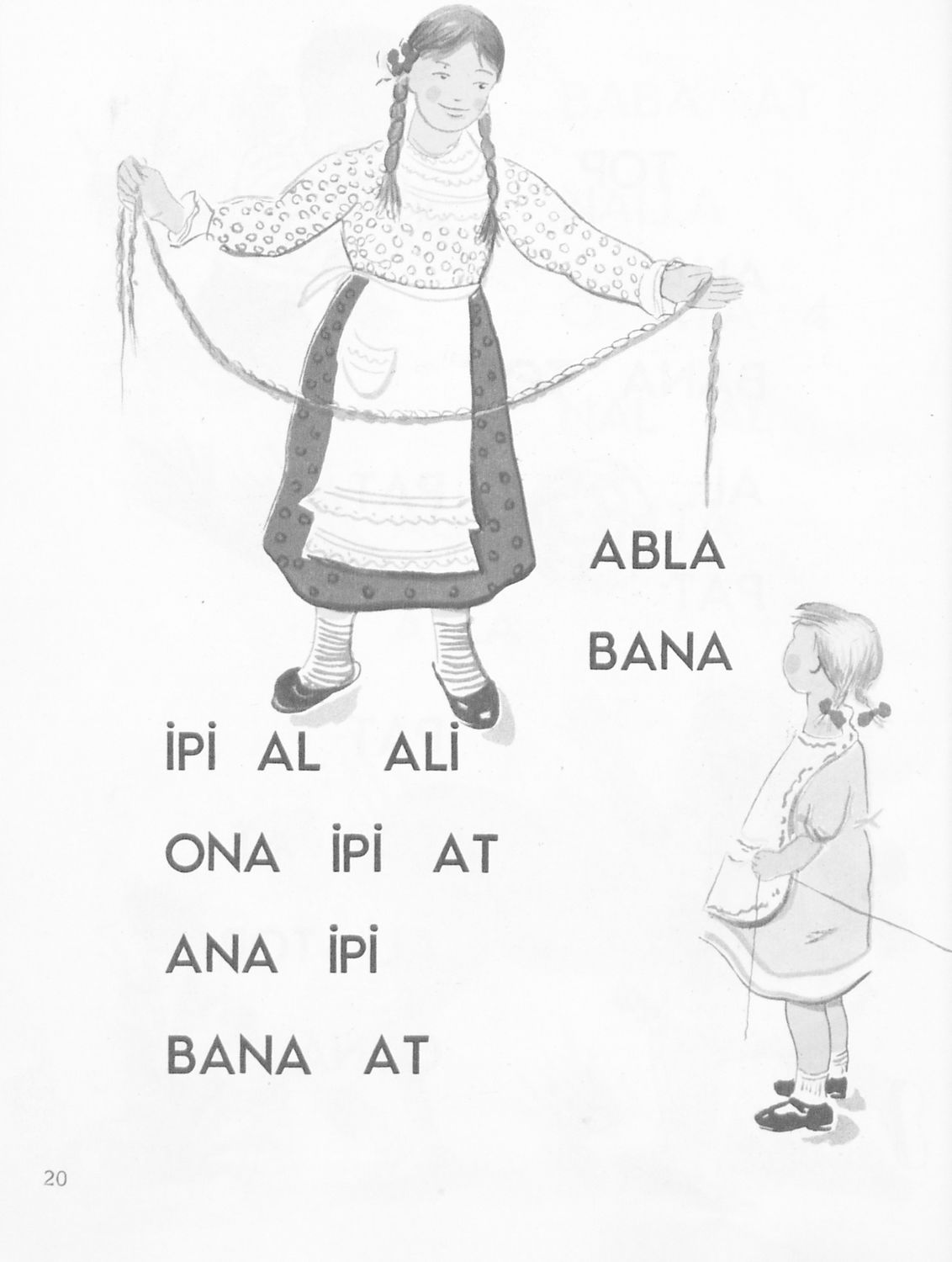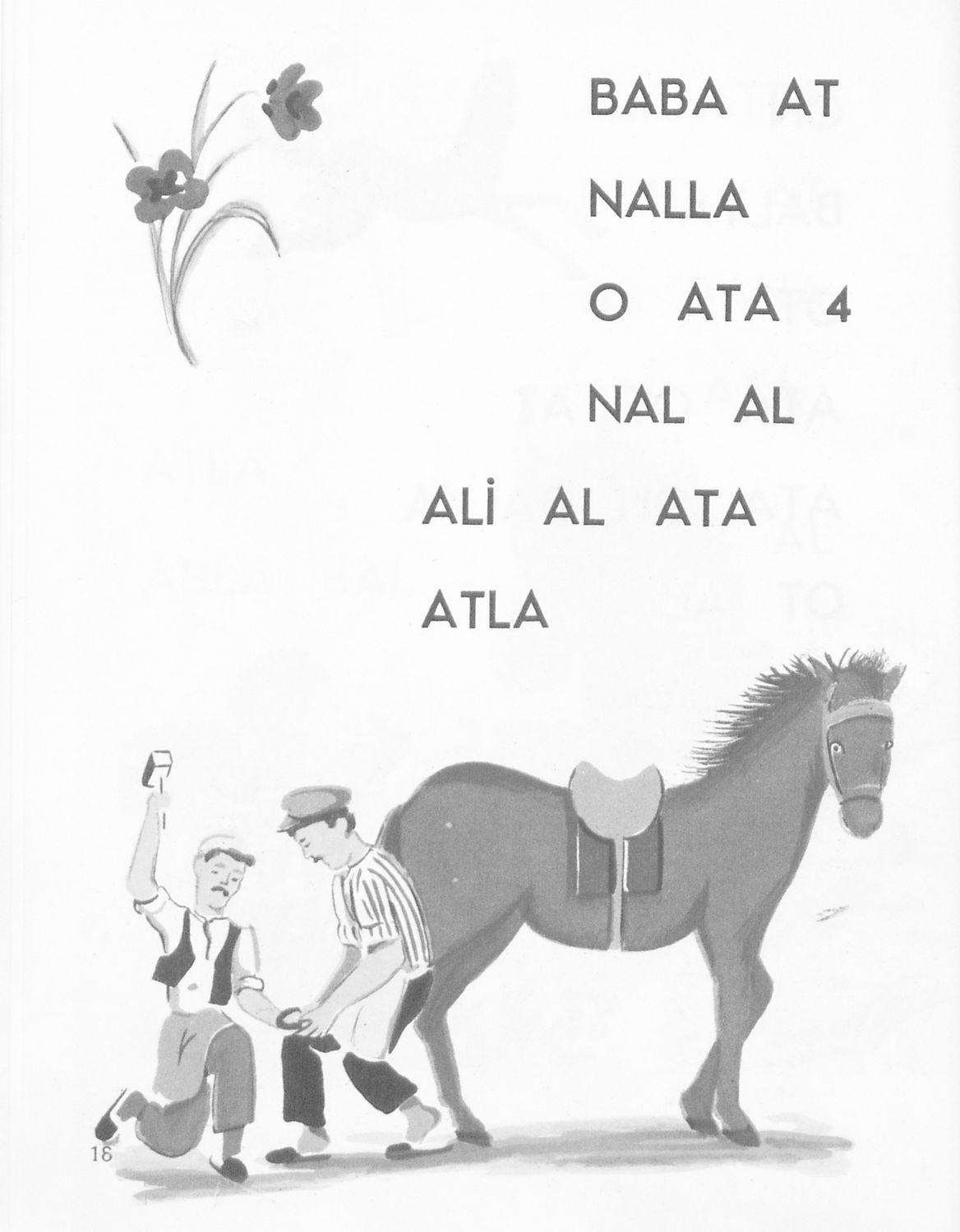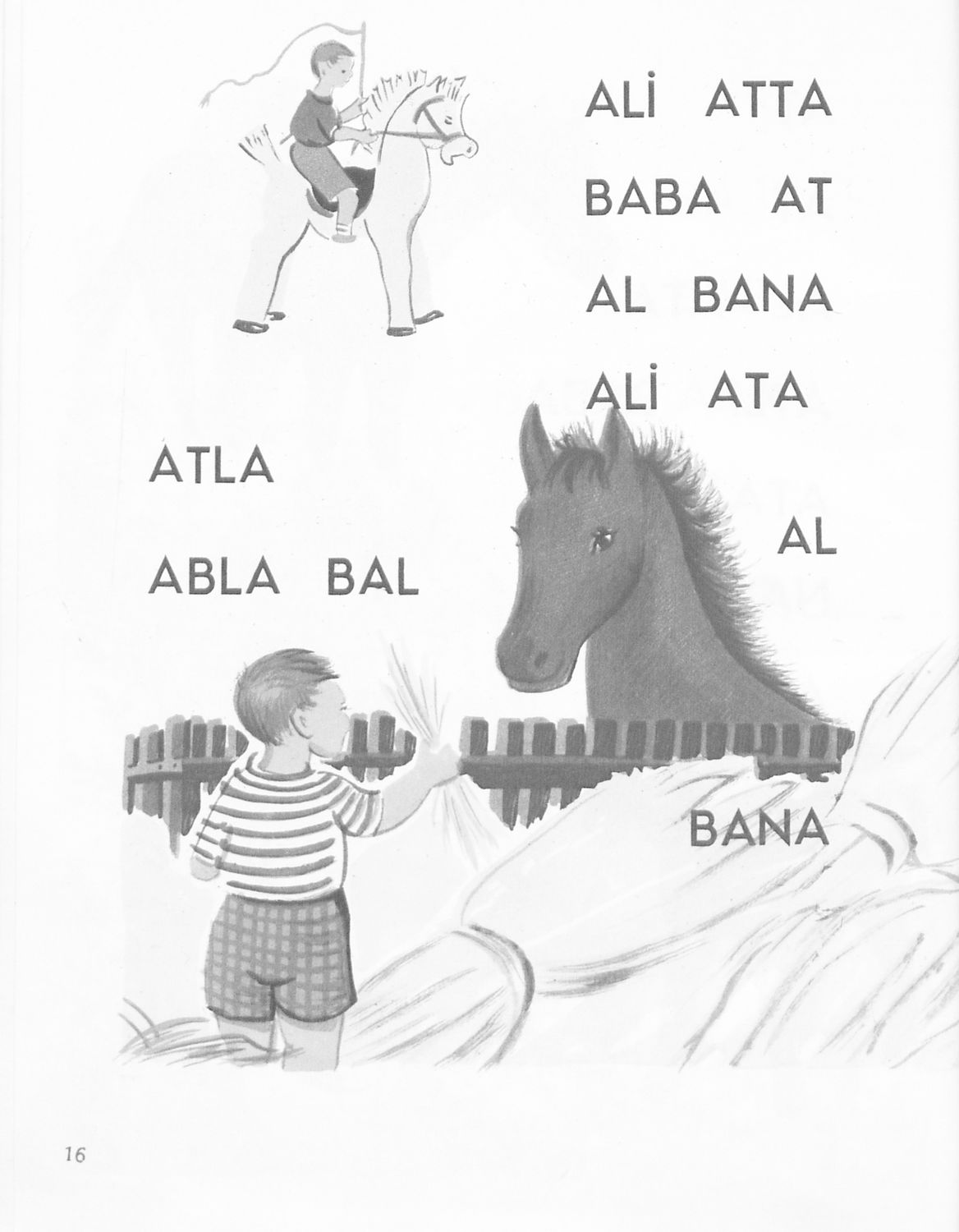 Αναγνωστικό Α΄ Δημοτικού για τα Μουσουλμανικά Σχολεία που περιέχει κείμενα στα τουρκικά εμπνευσμένα από την κοινωνική και οικογενειακή ζωή και το φυσικό περιβάλλον.