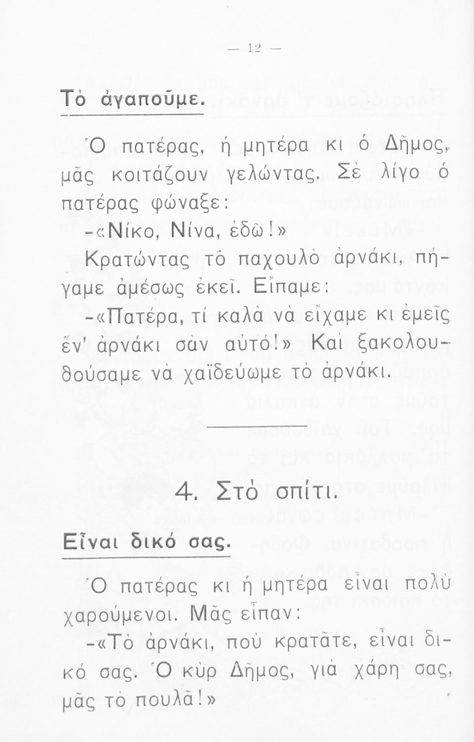 Παρουσίαση περιεχομένου: Αναγνωστικό Α΄ Δημοτικού που περιλαμβάνει μικρές ιστορίες με θεματολογία από την οικογενειακή και κοινωνική ζωή. Εκτός από τη εκμάθηση της ανάγνωσης, παρέχει βασικές γνώσεις για τη ζωή και την καθημερινότητα.