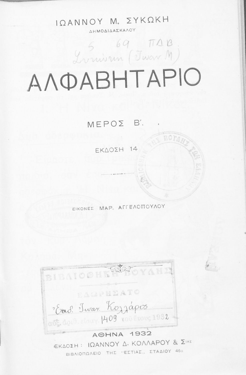 Τίτλος: Αλφαβητάριο. Μέρος Β'