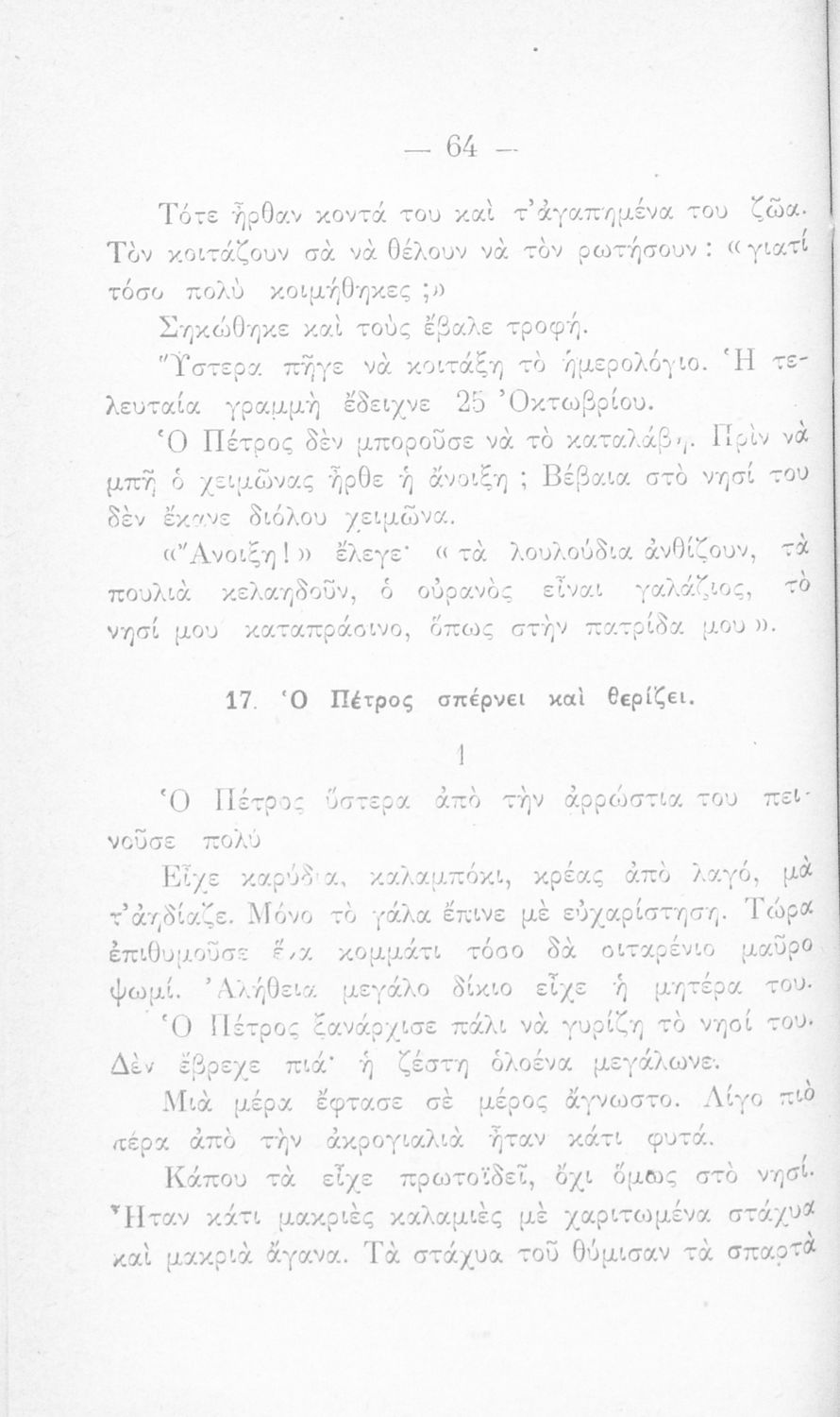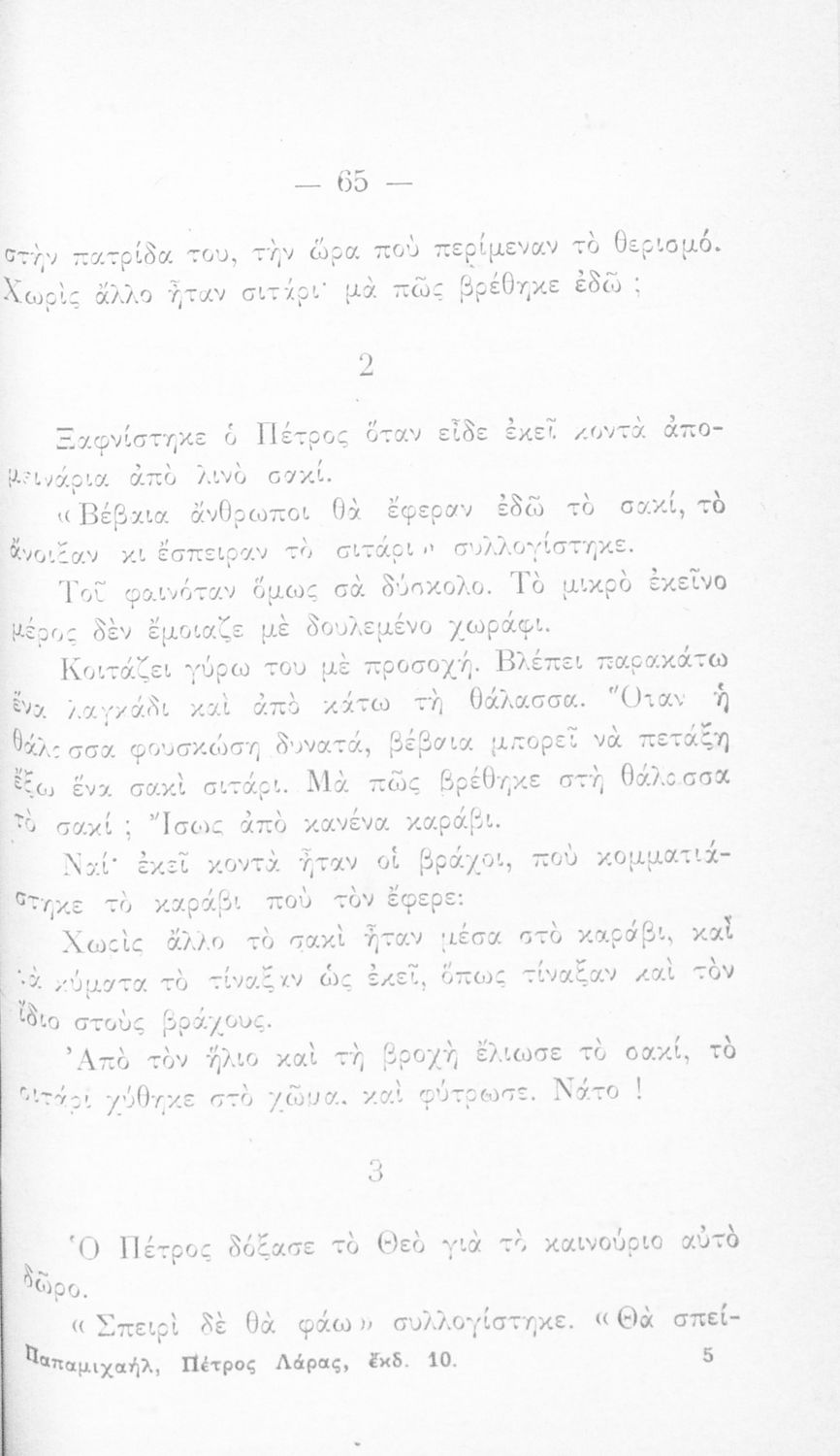 Αναγνωστικό Β΄ Δημοτικού που εξιστορεί τις περιπέτειες του κεντρικού ήρωα, Πέτρου Λάρα. Περιέχει και ποιήματα εμπνευσμένα από την καθημερινή ζωή των ανθρώπων.