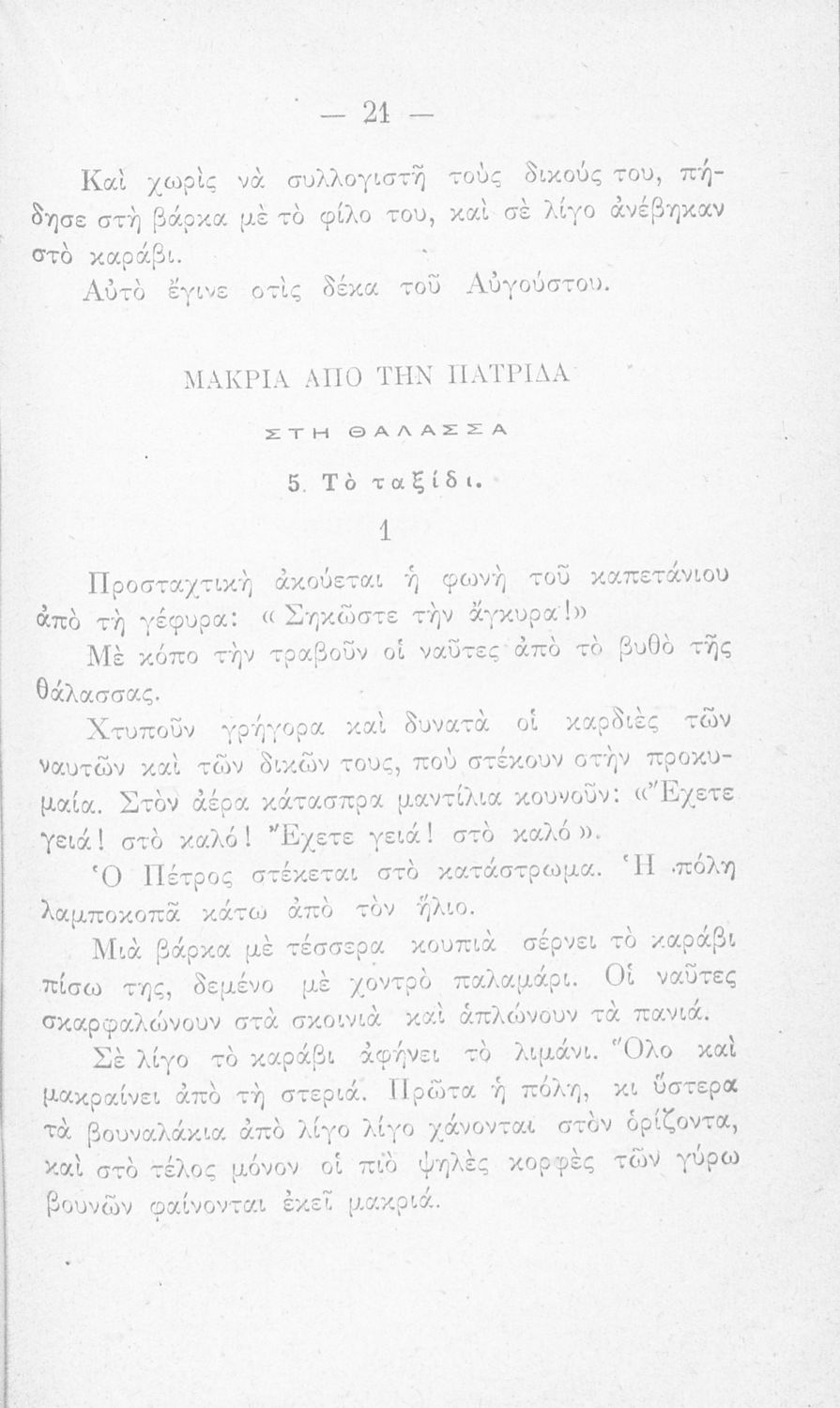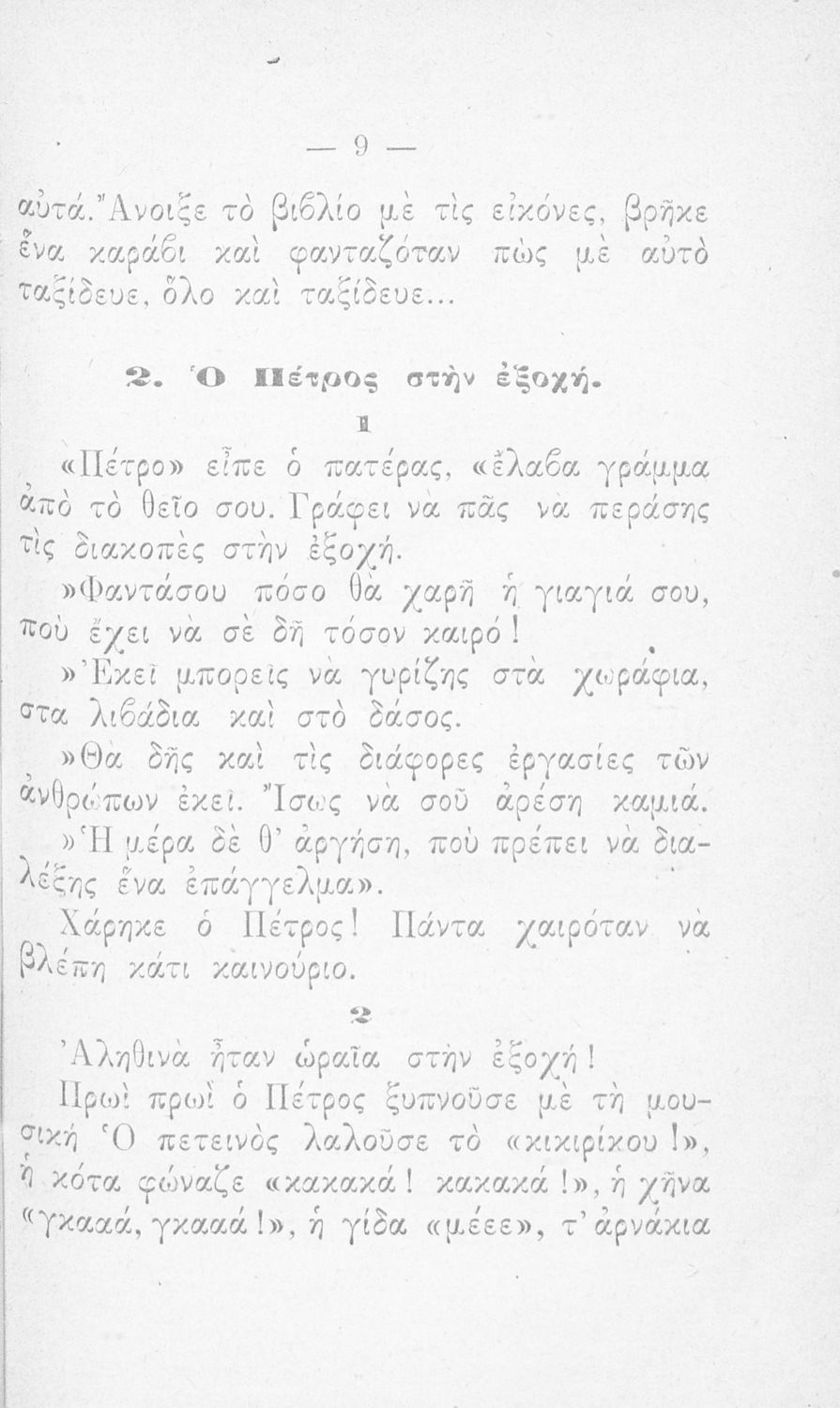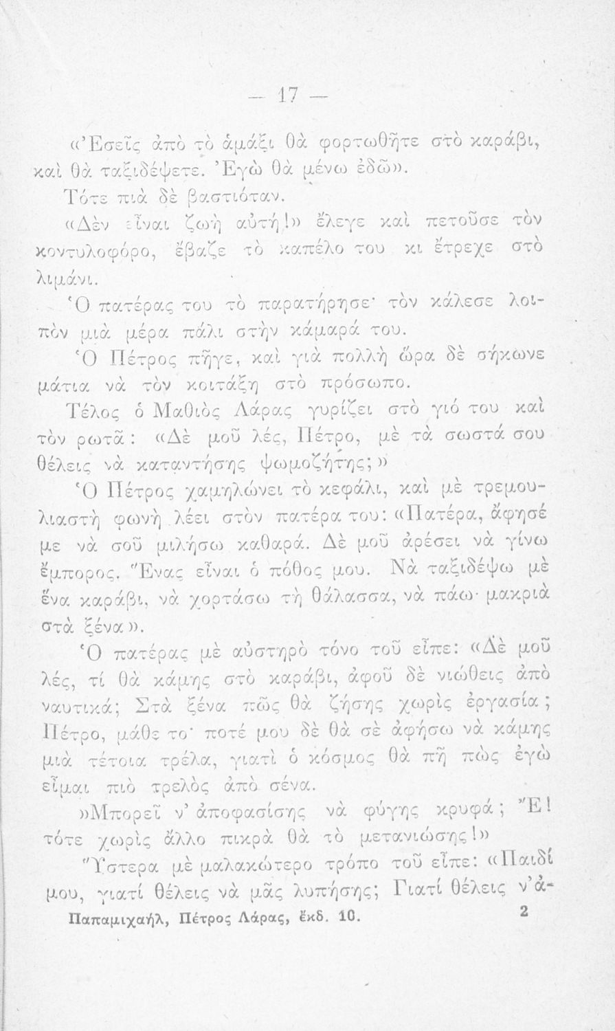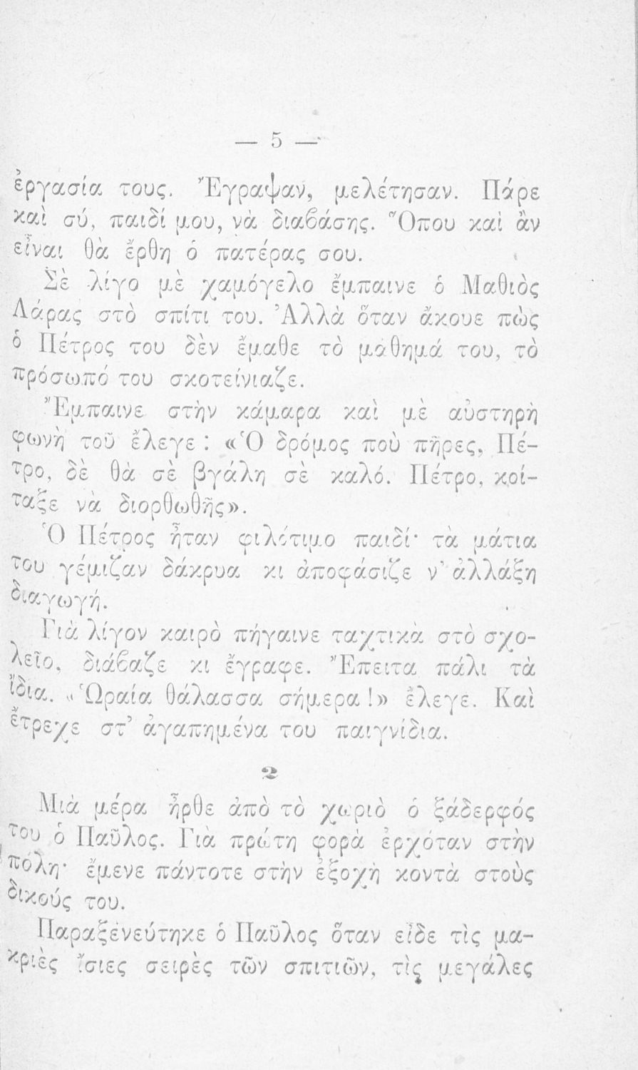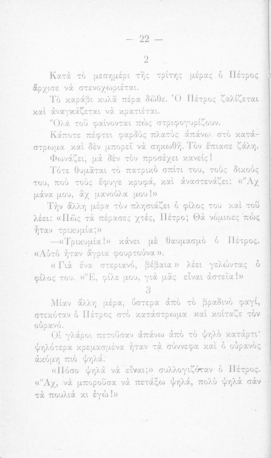 Αναγνωστικό Β΄ Δημοτικού που εξιστορεί τις περιπέτειες του κεντρικού ήρωα, Πέτρου Λάρα. Περιέχει και ποιήματα εμπνευσμένα από την καθημερινή ζωή των ανθρώπων.