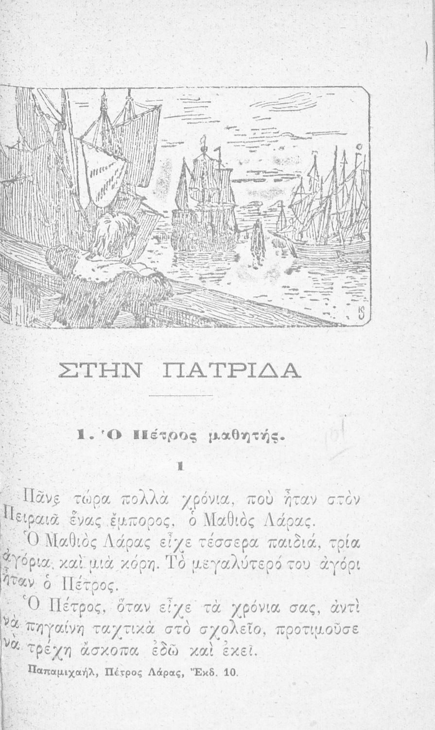 Βαθμίδα εκπαίδευσης: Πρωτοβάθμια Τάξη: Β' Δημοτικού Μάθημα: Νέα Ελληνικά Γλώσσα: Δημοτική Παρουσίαση περιεχομένου: Αναγνωστικό Β΄ Δημοτικού που εξιστορεί τις περιπέτειες του κεντρικού ήρωα, Πέτρου Λάρα. Περιέχει και ποιήματα εμπνευσμένα από την καθημερινή ζωή των ανθρώπων. |