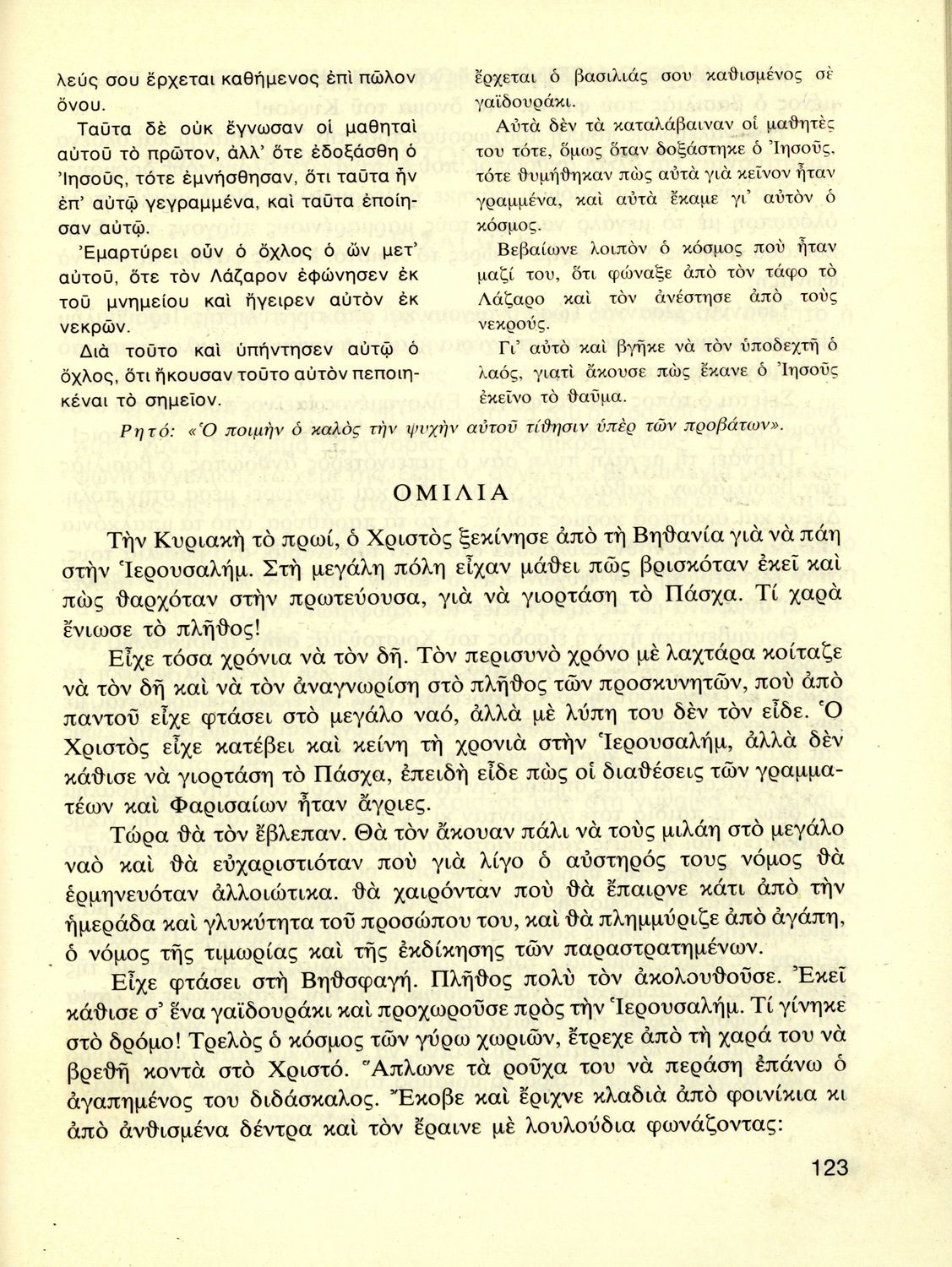 Σχολικό εγχειρίδιο για την Ε΄ και ΣΤ΄ Δημοτικού για το μάθημα των Θρησκευτικών. Το εγχειρίδιο περιλαμβάνει τα ευαγγελικά αποσπάσματα και τις προσευχές της Κυριακής, ιστορίες από την ζωή του Χριστού, τα θαύματα