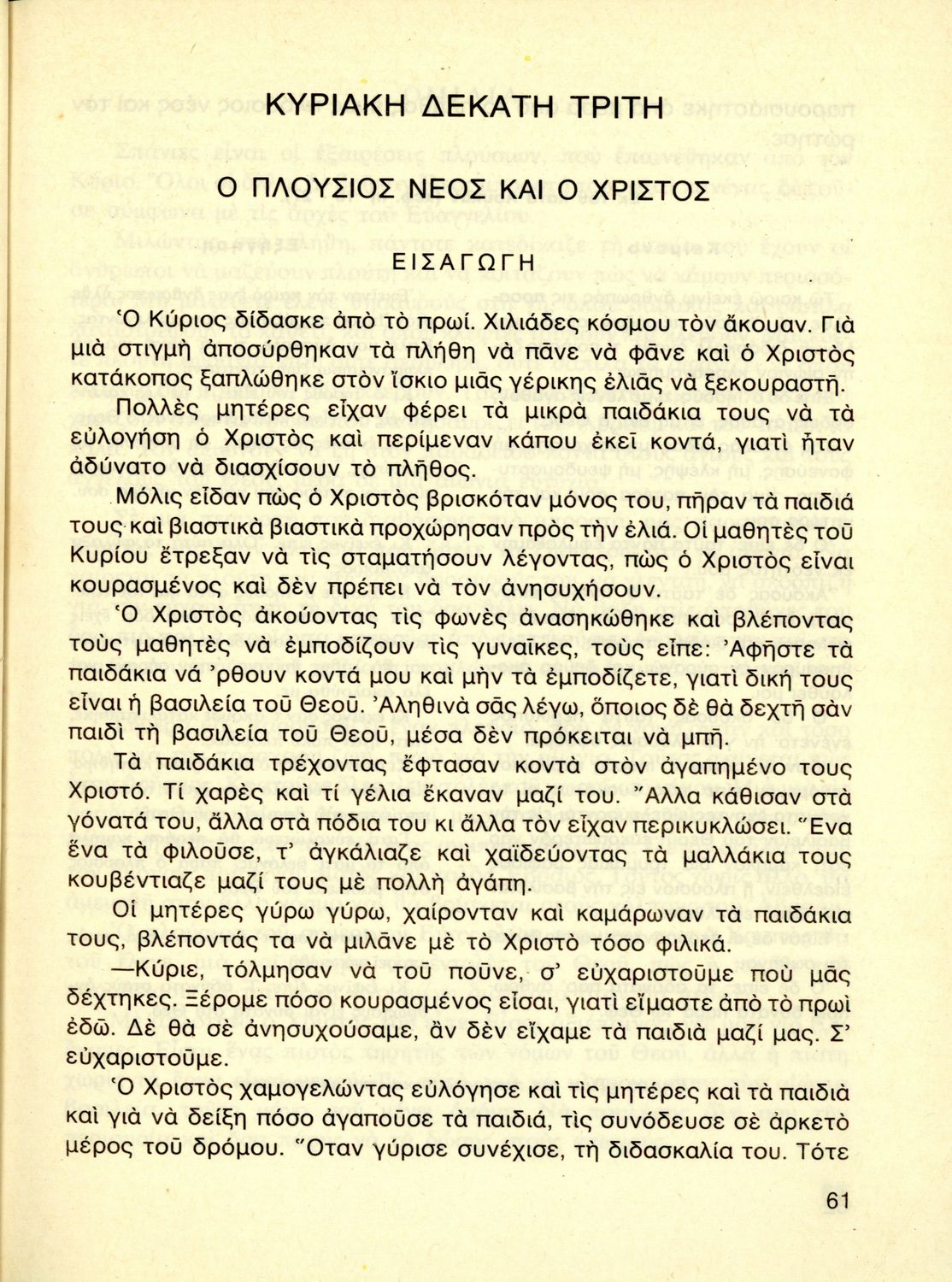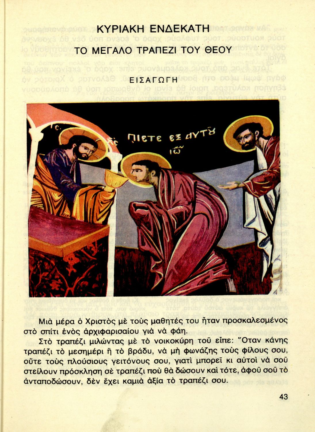 Σχολικό εγχειρίδιο για την Ε΄ και ΣΤ΄ Δημοτικού για το μάθημα των Θρησκευτικών. Το εγχειρίδιο περιλαμβάνει τα ευαγγελικά αποσπάσματα και τις προσευχές της Κυριακής, ιστορίες από την ζωή του Χριστού, τα θαύματα