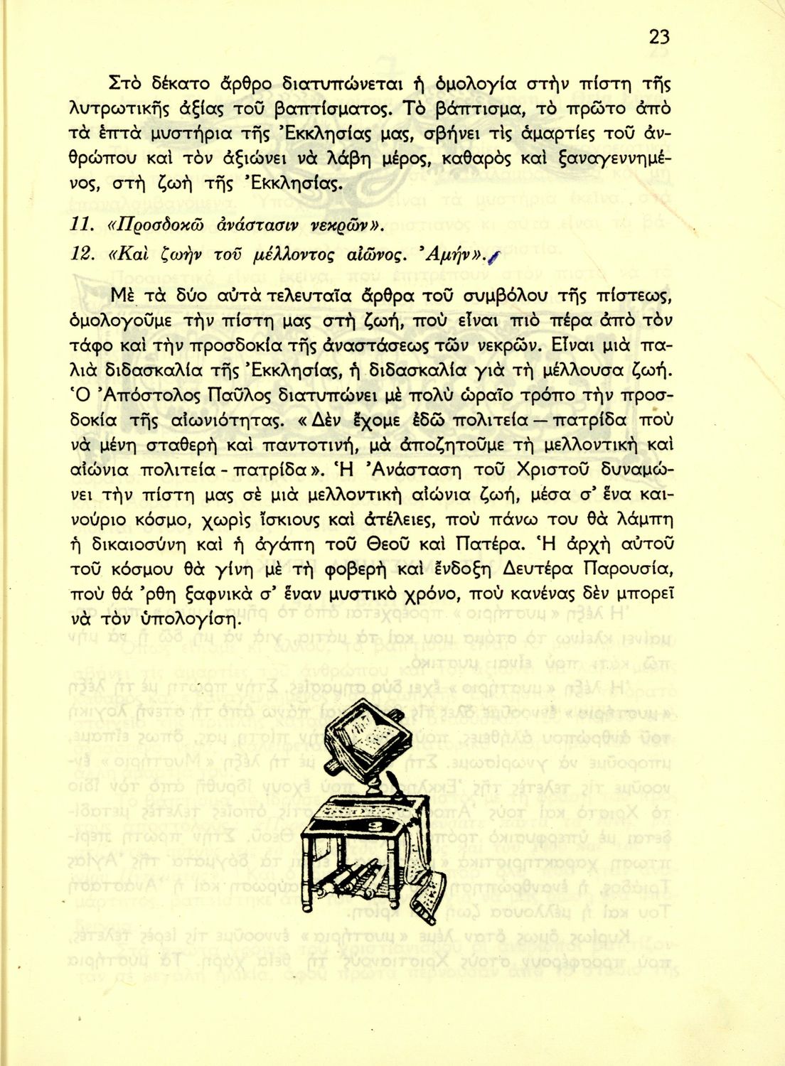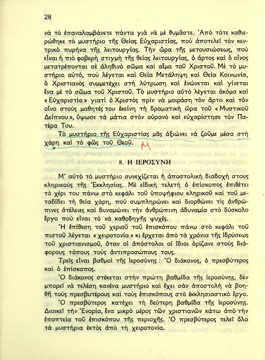 Σχολικό εγχειρίδιο Θρησκευτικών για τα Ελληνικά Σχολεία και Παρθεναγωγεία που αναλύει τις βασικές αλήθειες της πίστης και παραθέτει στοιχεία για τη λειτουργική λατρεία και τη ζωή της Εκκλησίας