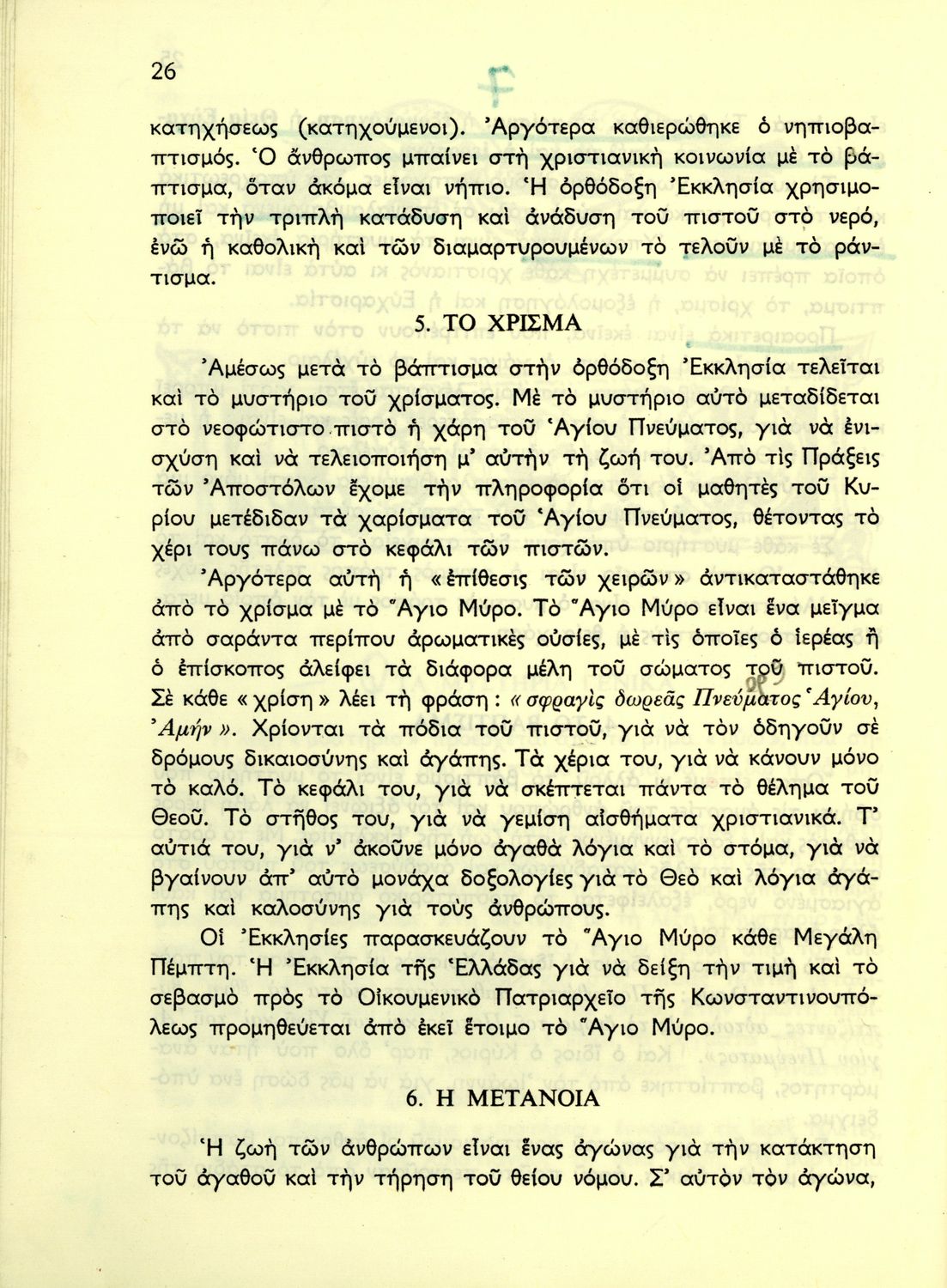 Σχολικό εγχειρίδιο Θρησκευτικών ΣΤ΄ Δημοτικού που αναλύει την έννοια της κατήχησης στις διάφορες θρησκείες με έμφαση στο ορθόδοξο χριστιανικό δόγμα, το οποίο εξετάζει από δογματική και ηθική σκοπιά. Περιλαμβάνει και στοιχεία λειτουργικής της Ορθόδοξης Εκκλησίας.