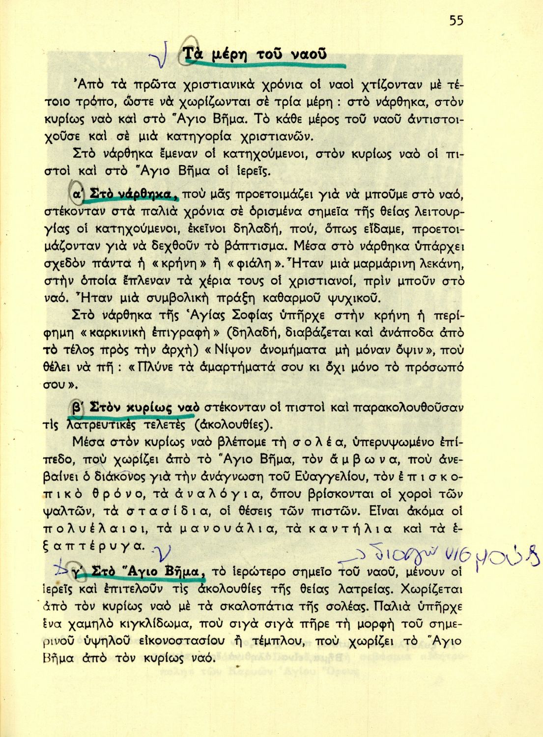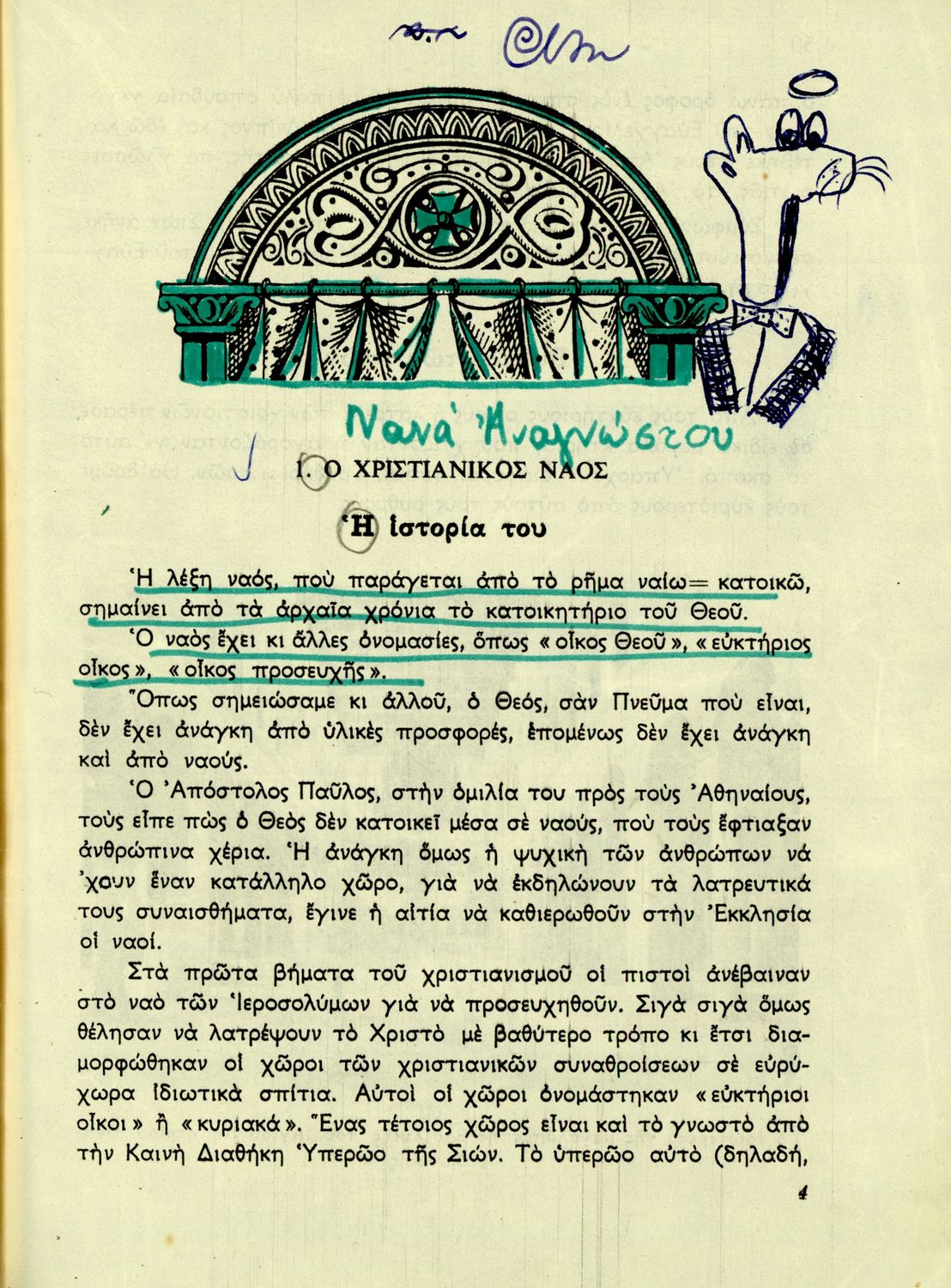 520 ## _aΣχολικό εγχειρίδιο Θρησκευτικών ΣΤ΄ Δημοτικού που αναλύει την έννοια της κατήχησης στις διάφορες θρησκείες με έμφαση στο ορθόδοξο χριστιανικό δόγμα, το οποίο εξετάζει από δογματική και ηθική σκοπιά. Περιλαμβάνει και στοιχεία λειτουργικής της Ορθόδοξης Εκκλησίας.