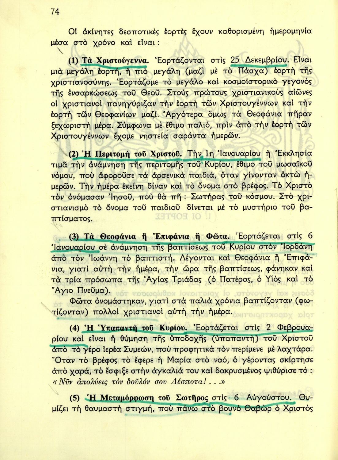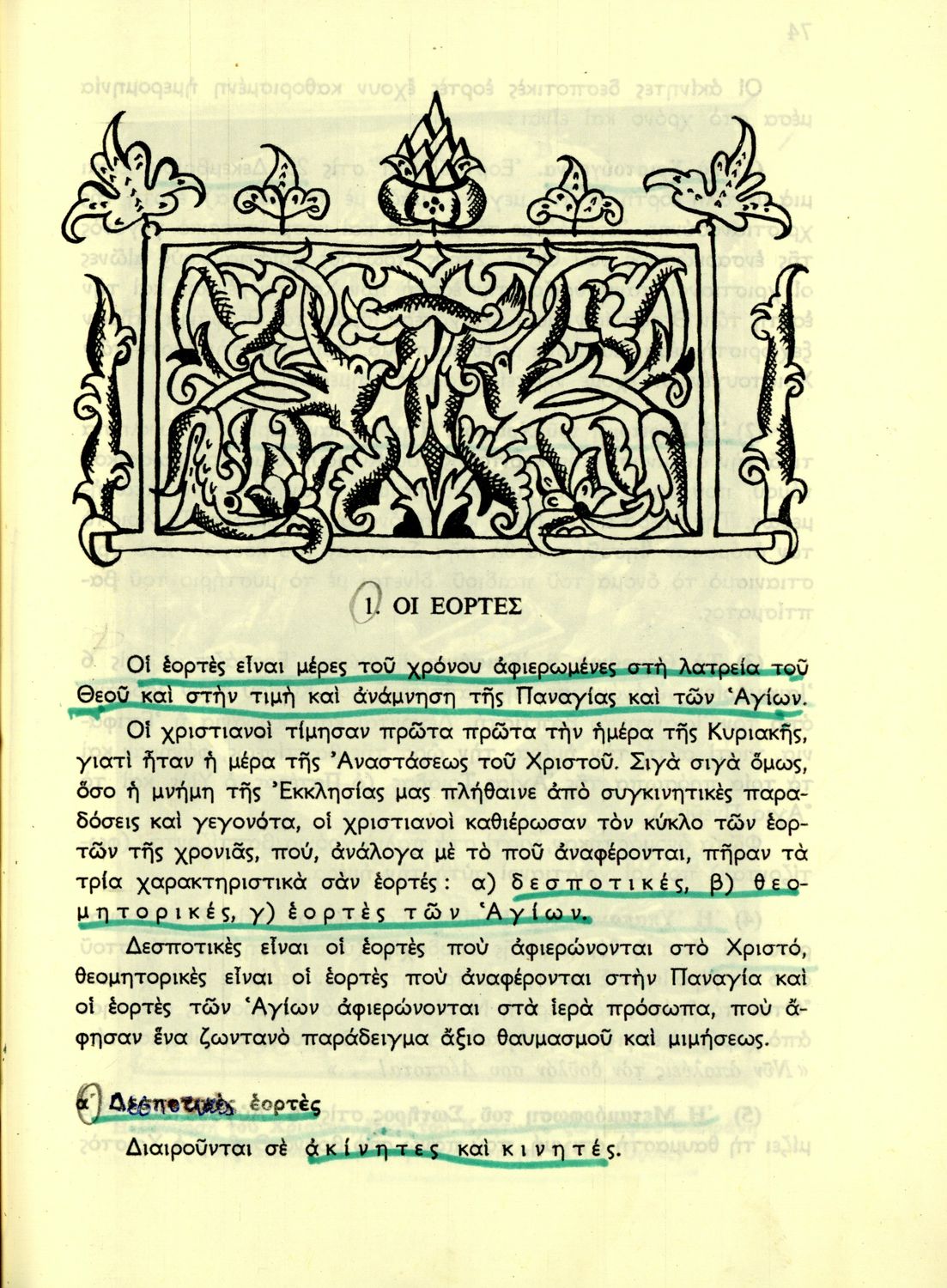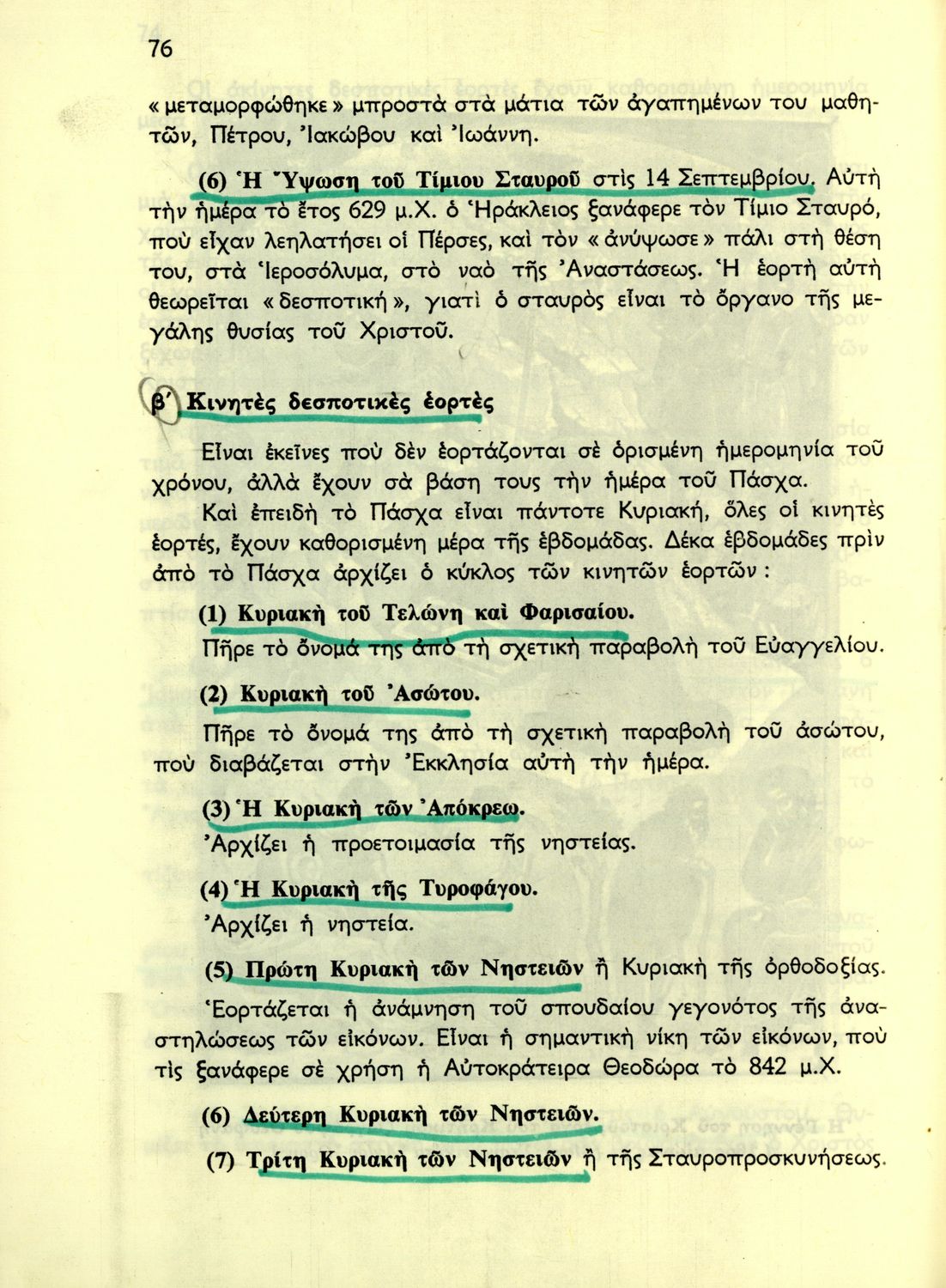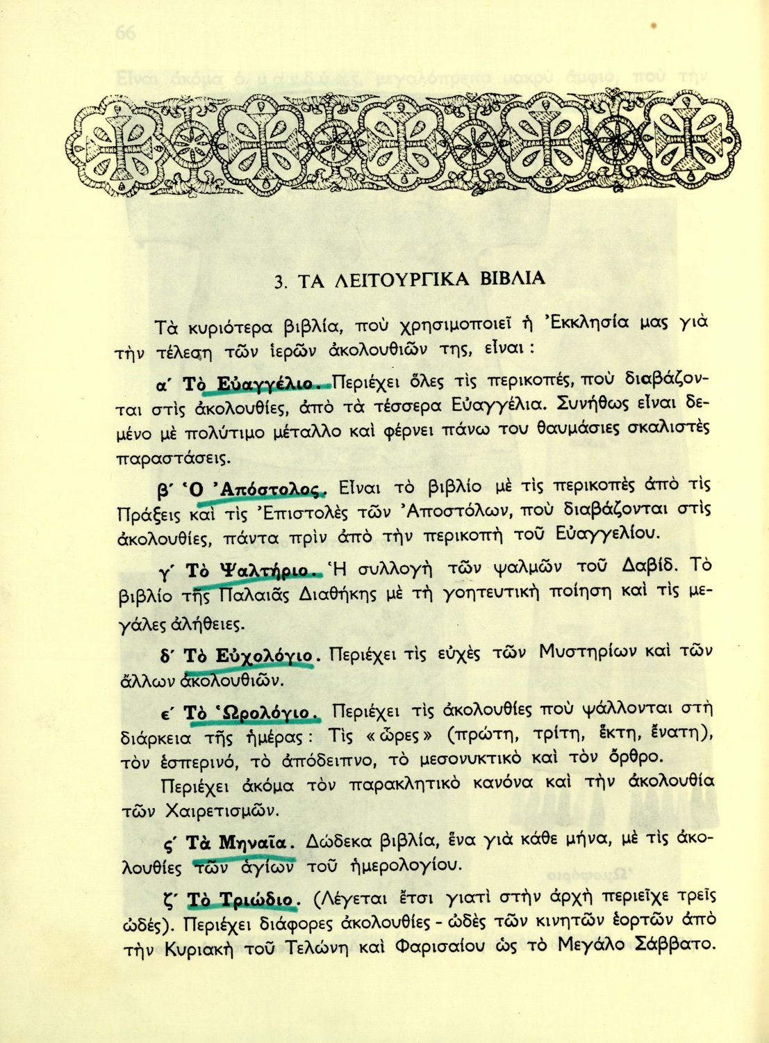 520 ## _aΣχολικό εγχειρίδιο Θρησκευτικών ΣΤ΄ Δημοτικού που αναλύει την έννοια της κατήχησης στις διάφορες θρησκείες με έμφαση στο ορθόδοξο χριστιανικό δόγμα, το οποίο εξετάζει από δογματική και ηθική σκοπιά. Περιλαμβάνει και στοιχεία λειτουργικής της Ορθόδοξης Εκκλησίας.