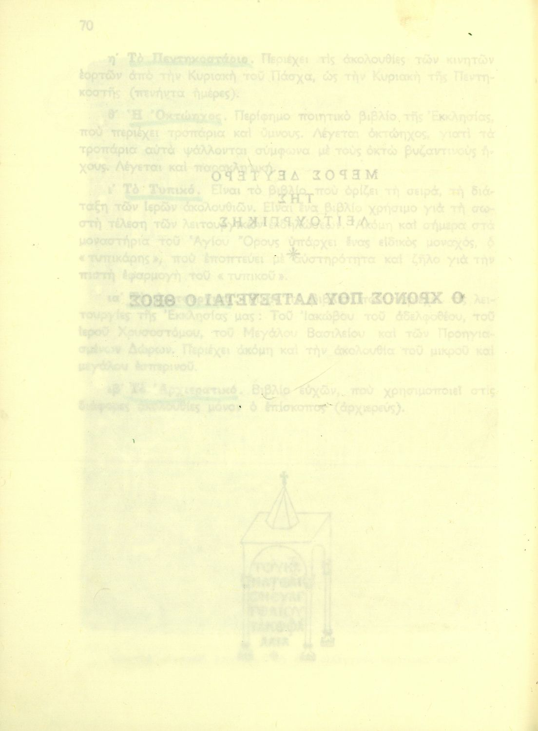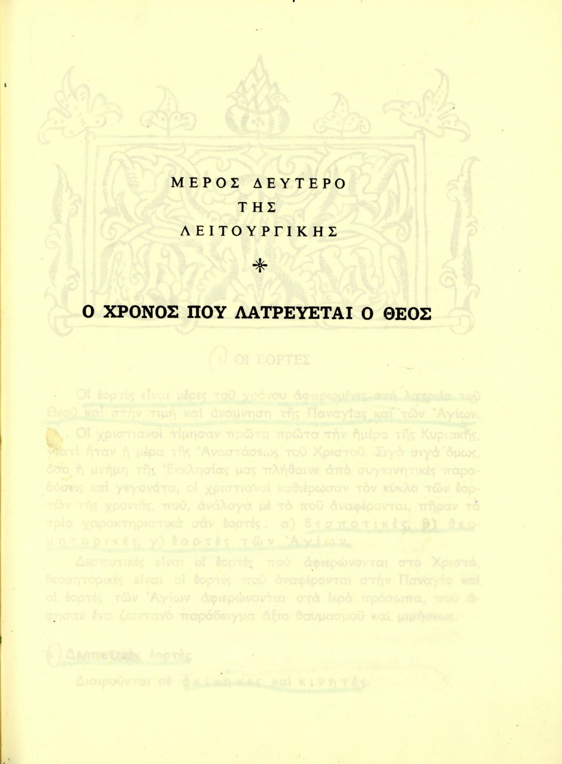 Κωδικός αναγνώρισης: 04-00004 Τίτλος: Κατήχηση και Λειτουργική Συγγραφέας: Ματθαίος Μουντές Μέγεθος και υπόστρωμα: Σχολικό εγχειρίδιο, 20εκ., μαλακό εξώφυλλο, 103 σελίδες. Εξώφυλλο (έγχρωμο), εικόνες και φωτογραφίες (ασπρόμαυρες), διακοσμητικά στοιχεία (ασπρόμαυρα). |