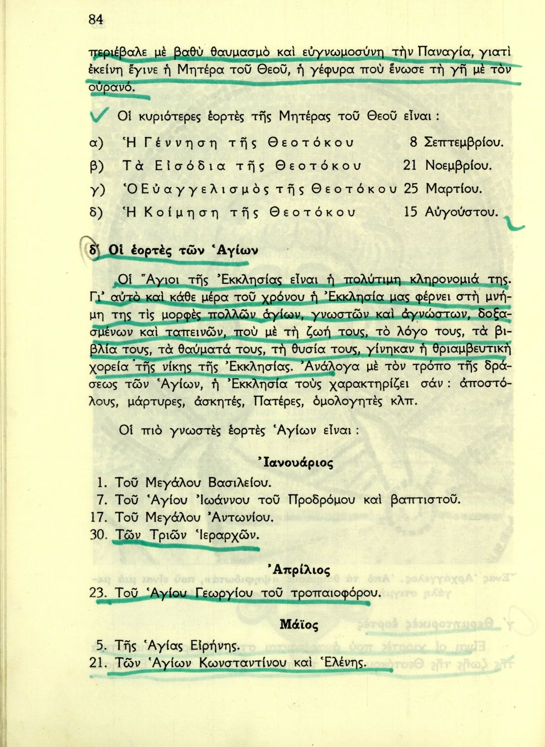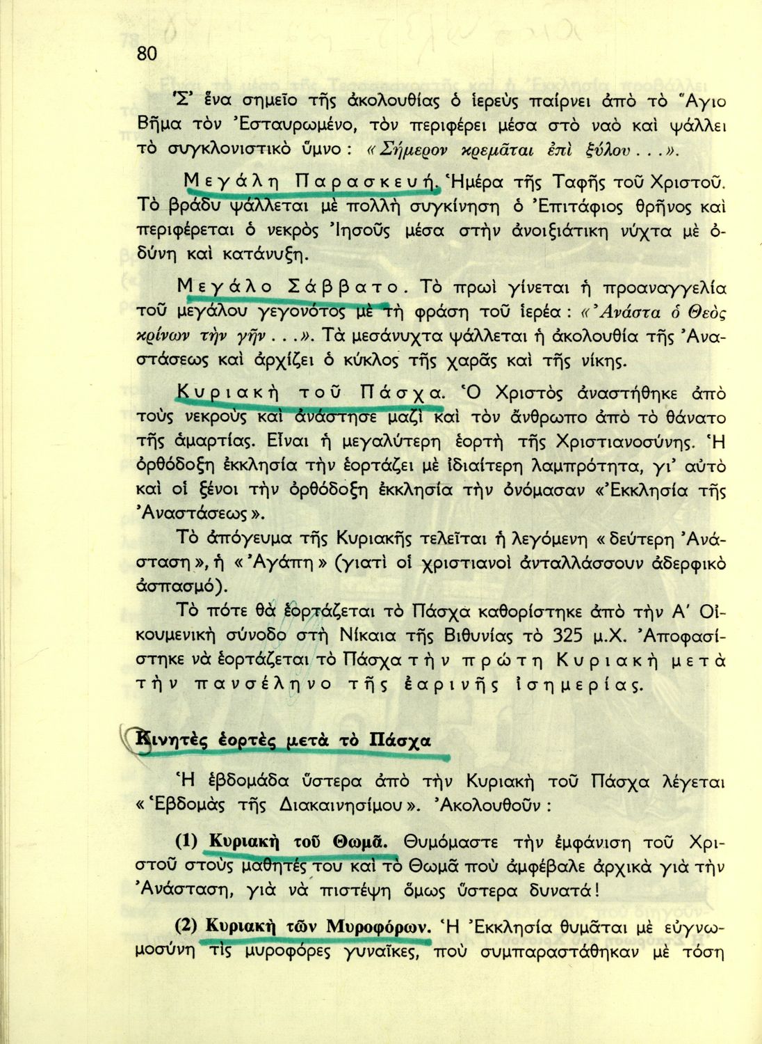 Σχολικό εγχειρίδιο Θρησκευτικών για τα Ελληνικά Σχολεία και Παρθεναγωγεία που αναλύει τις βασικές αλήθειες της πίστης και παραθέτει στοιχεία για τη λειτουργική λατρεία και τη ζωή της Εκκλησίας