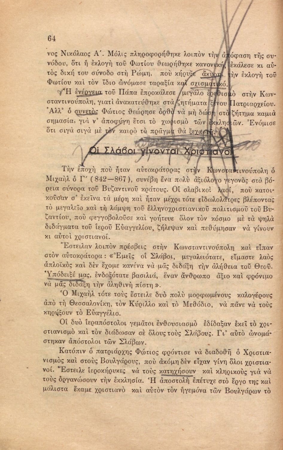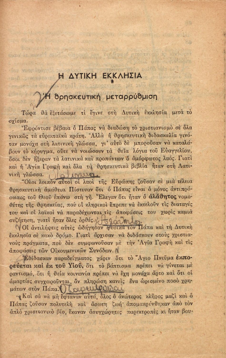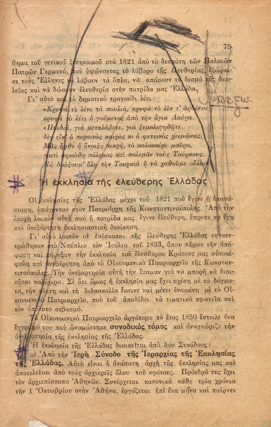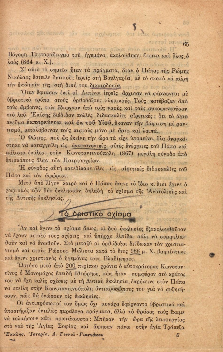 Σχολικό εγχειρίδιο Θρησκευτικών Ε΄ Δημοτικού που περιέχει την ιστορία της Ορθόδοξης Εκκλησίας από την ίδρυσή της μέχρι την δημιουργία της Εκκλησίας της Ελλάδας.