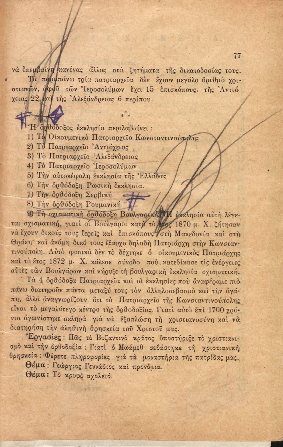 Μαθητικό βοήθημα Θρησκευτικών Ε΄ Δημοτικού που αποτελεί μια ιστορική επισκόπηση της Ορθόδοξης Εκκλησίας από την ίδρυσή της μέχρι την ίδρυση της Εκκλησίας της Ελλάδας.