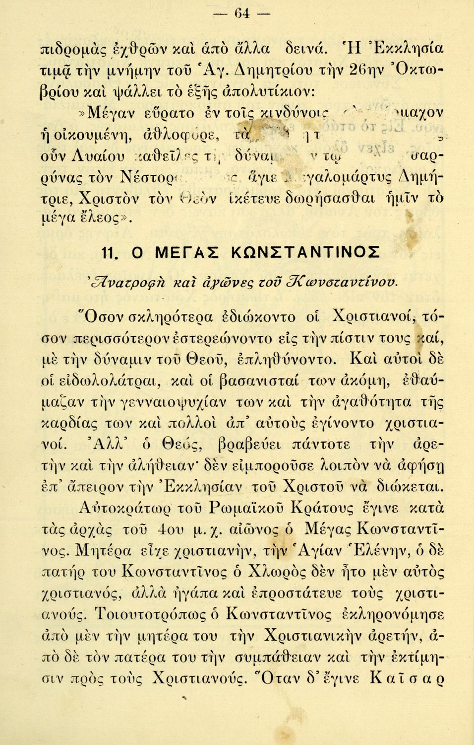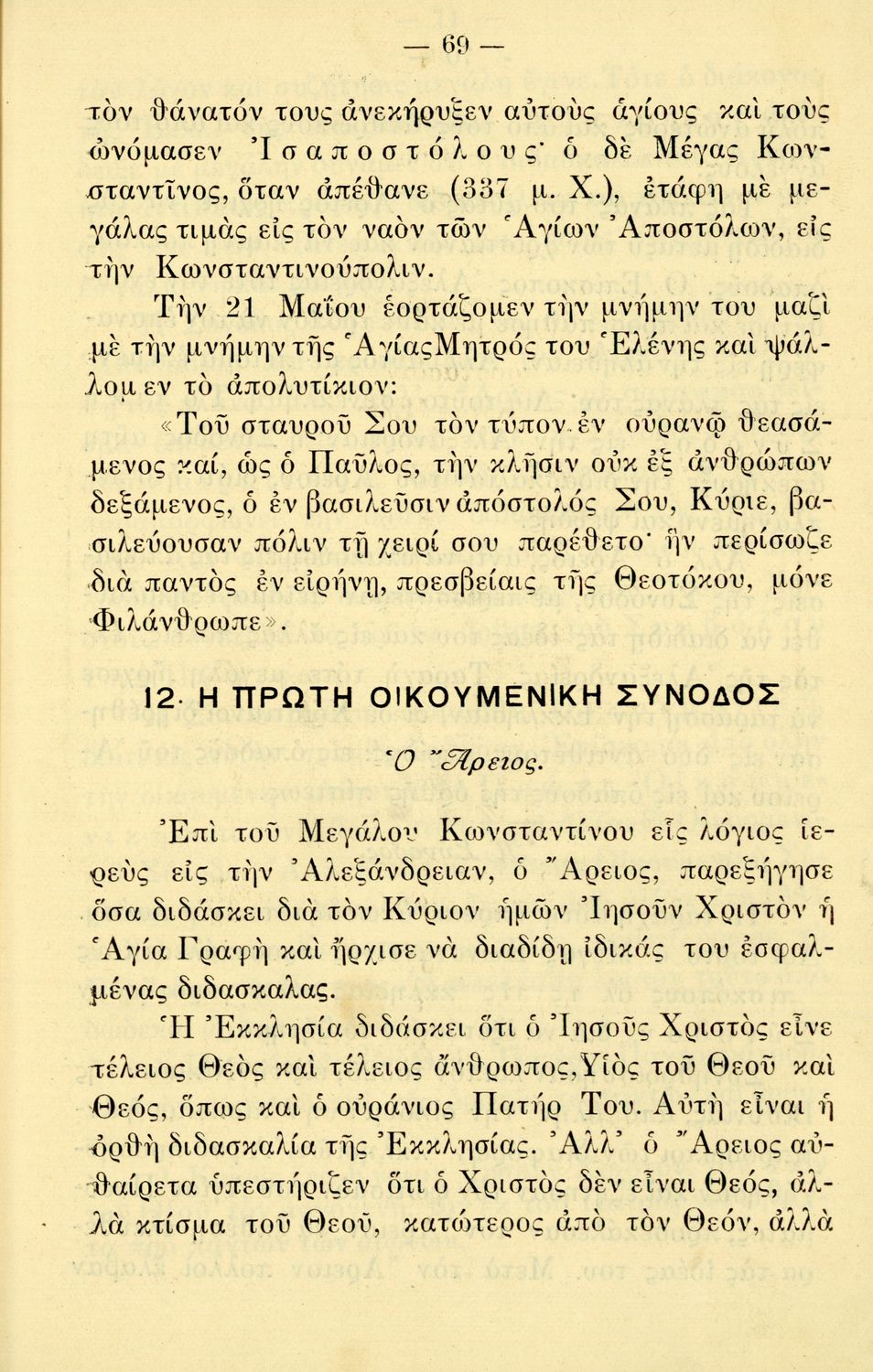 Βαθμίδα εκπαίδευσης: Πρωτοβάθμια Μάθημα: Θρησκευτικά Γλώσσα: Καθαρεύουσα Παρουσίαση περιεχομένου: Σχολικό εγχειρίδιο Θρησκευτικών Δημοτικού που αποτελεί μια ιστορική επισκόπηση της Ορθόδοξης Εκκλησίας από την ίδρυσή της μέχρι την ίδρυση της Εκκλησίας της Ελλάδας. |