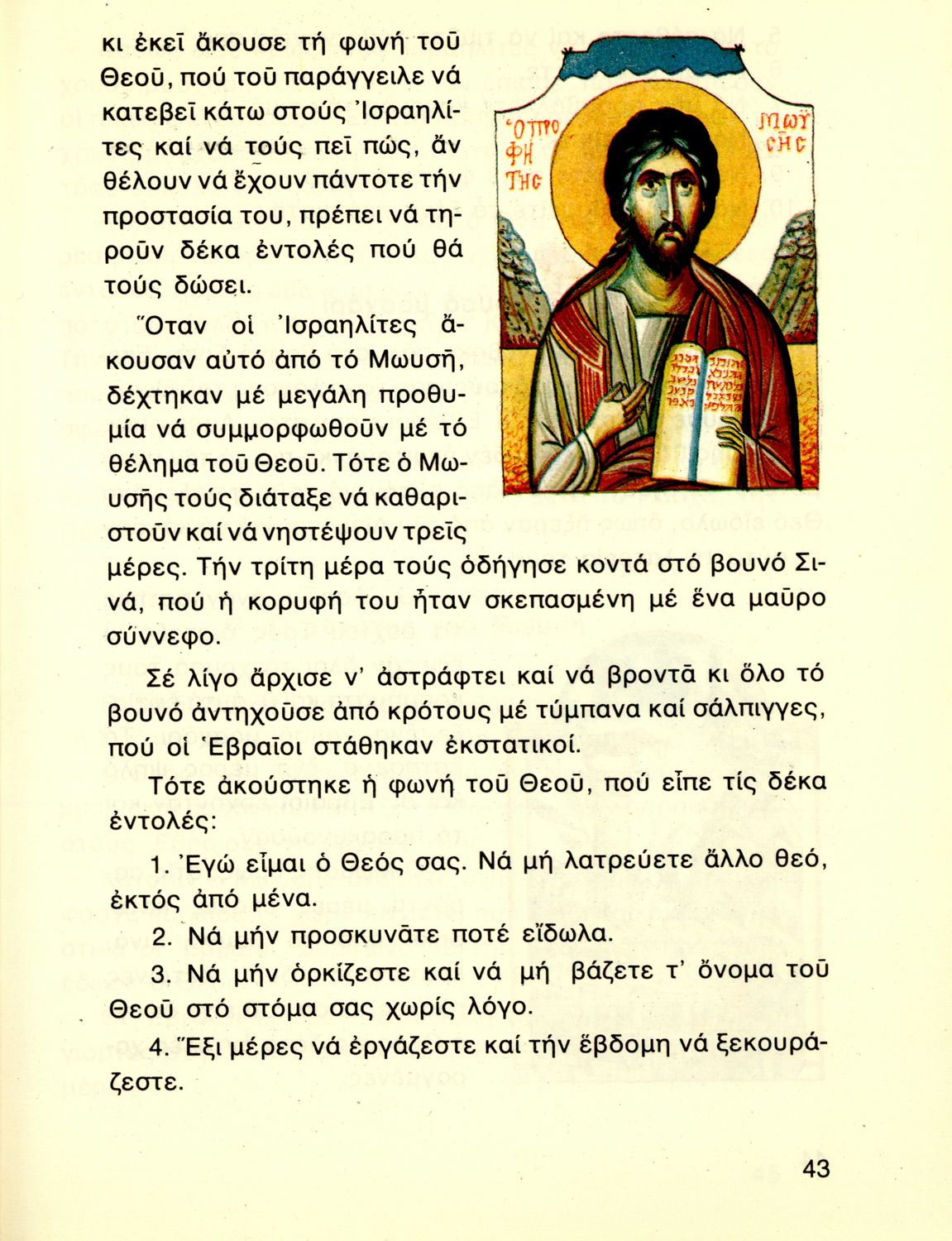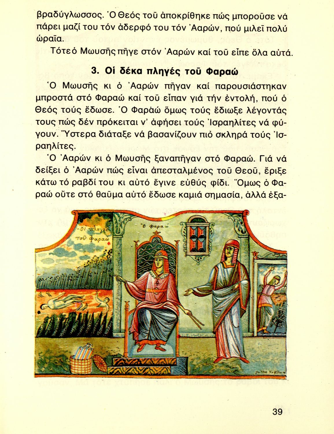 Σχολικό εγχειρίδιο Θρησκευτικών [Γ΄ Δημοτικού] που συνιστά μία εξιστόρηση της Παλαιάς Διαθήκης από τη δημιουργία του κόσμου ως τους Προφήτες.