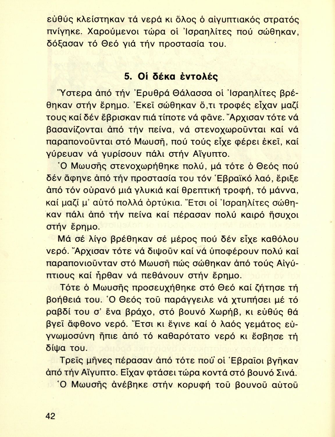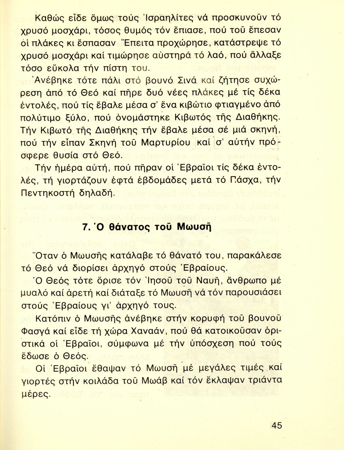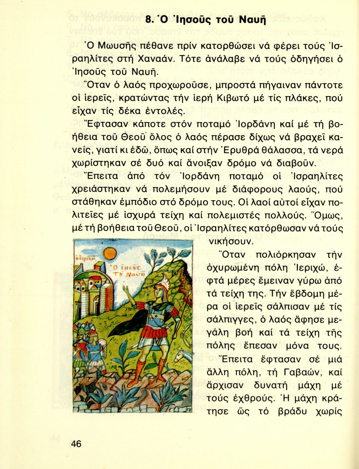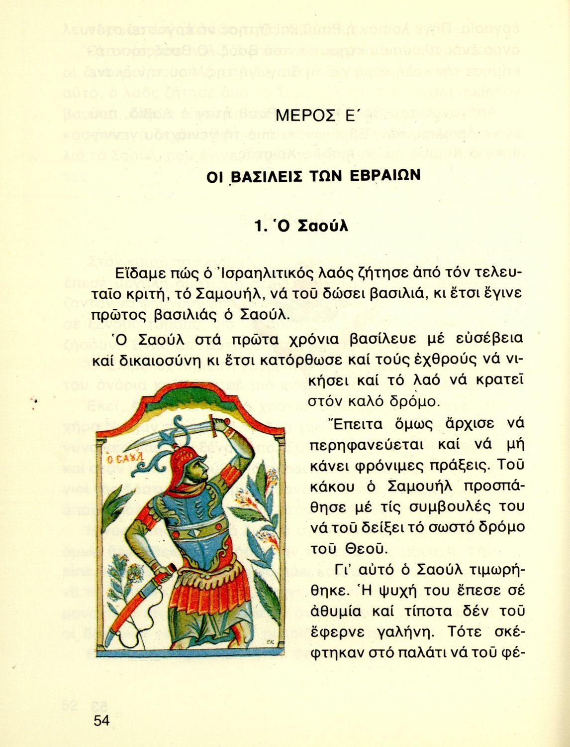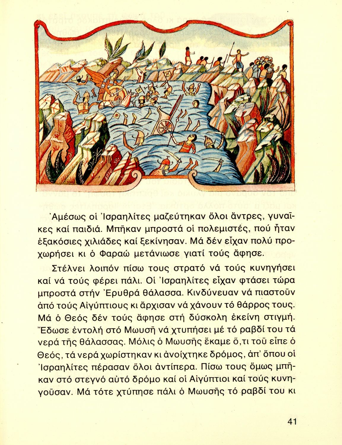 Σχολικό εγχειρίδιο Θρησκευτικών Δημοτικού που συνιστά μία εξιστόρηση της Παλαιάς Διαθήκης από τη δημιουργία του κόσμου ως τους Προφήτες.