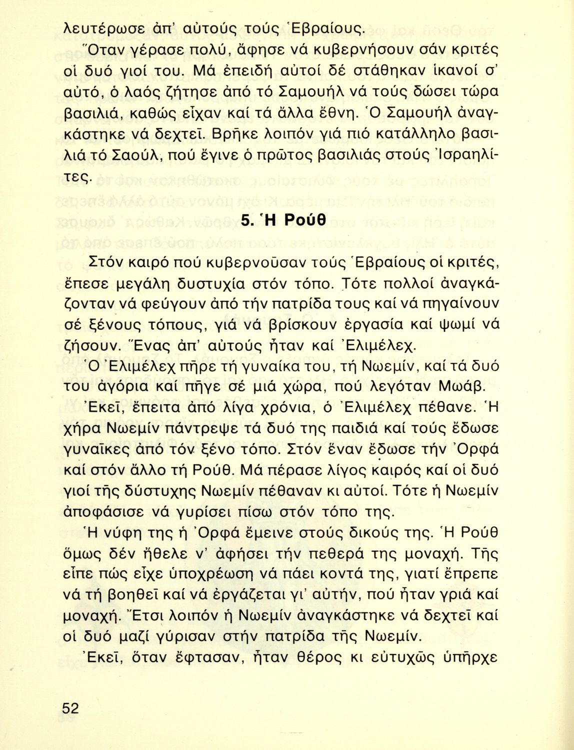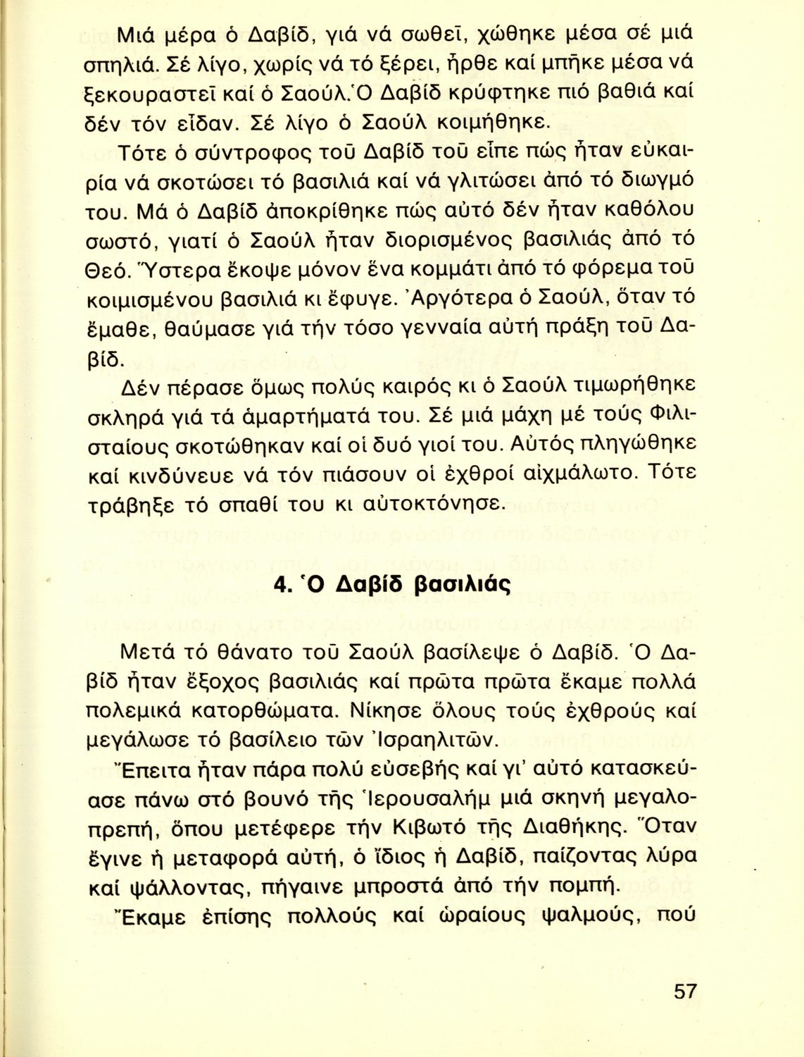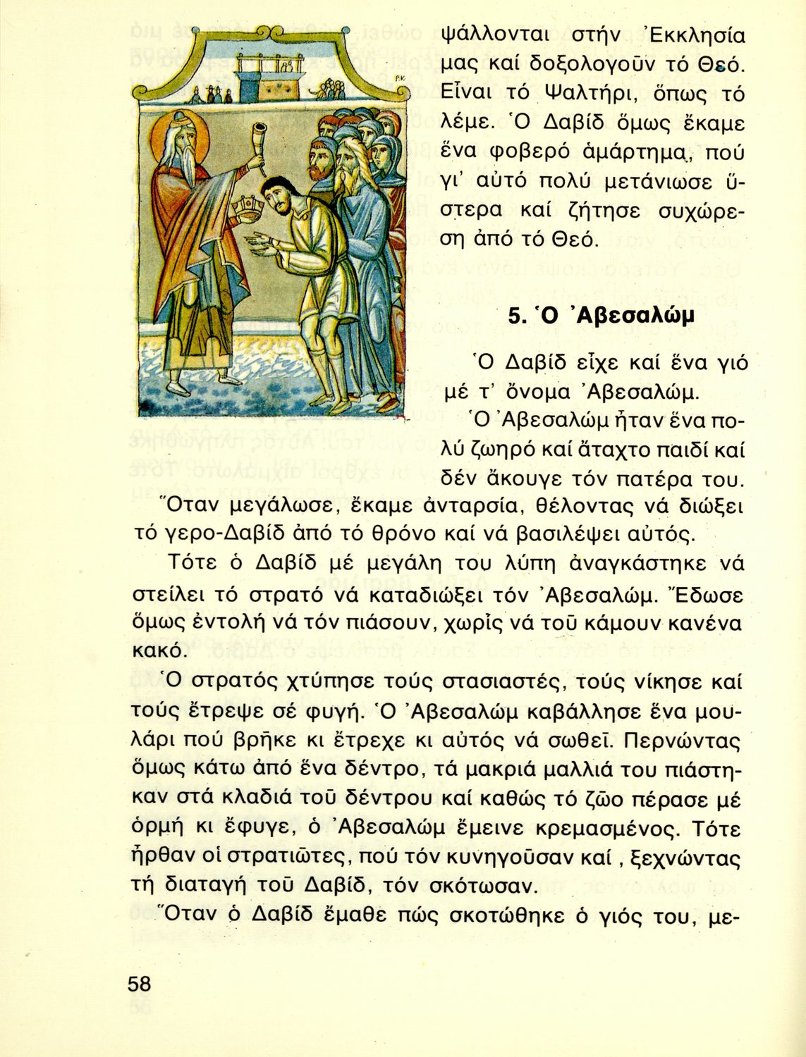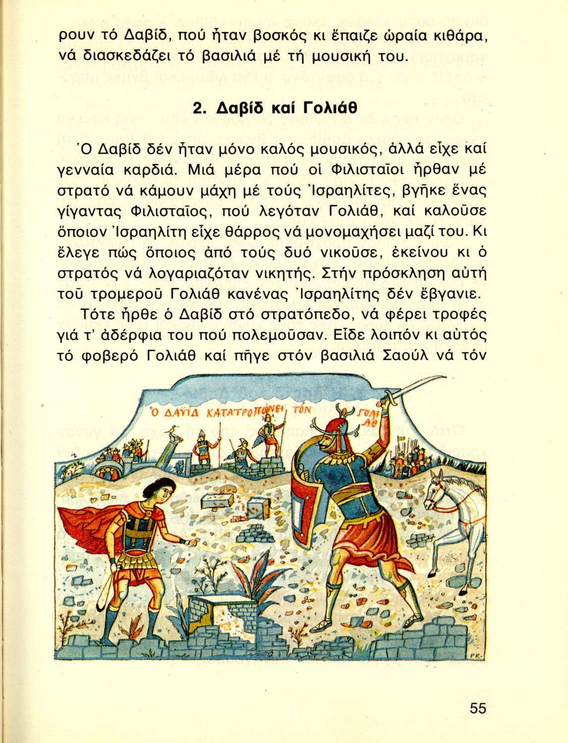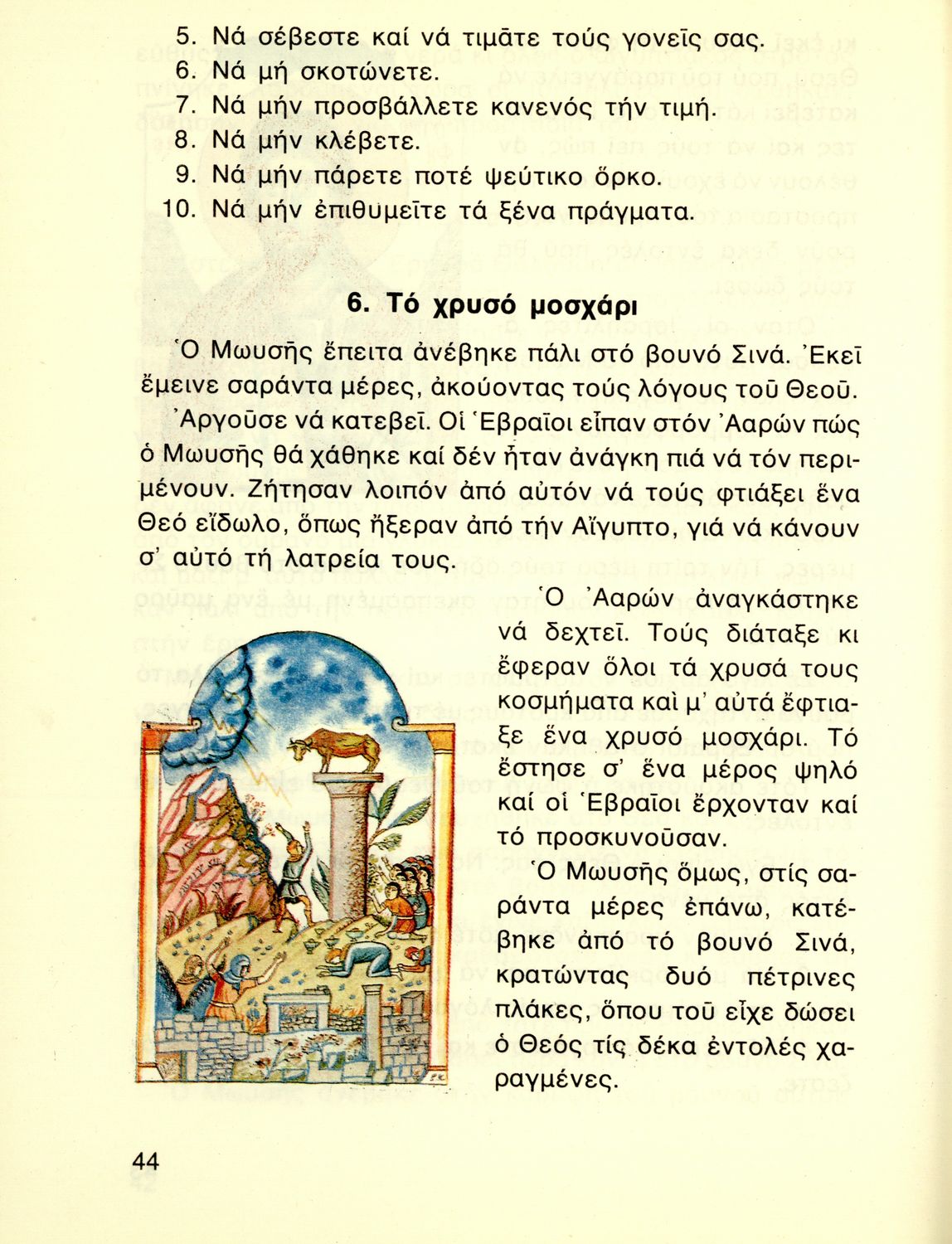 Σχολικό εγχειρίδιο Θρησκευτικών Δημοτικού που συνιστά μία εξιστόρηση της Παλαιάς Διαθήκης από τη δημιουργία του κόσμου ως τους Προφήτες.