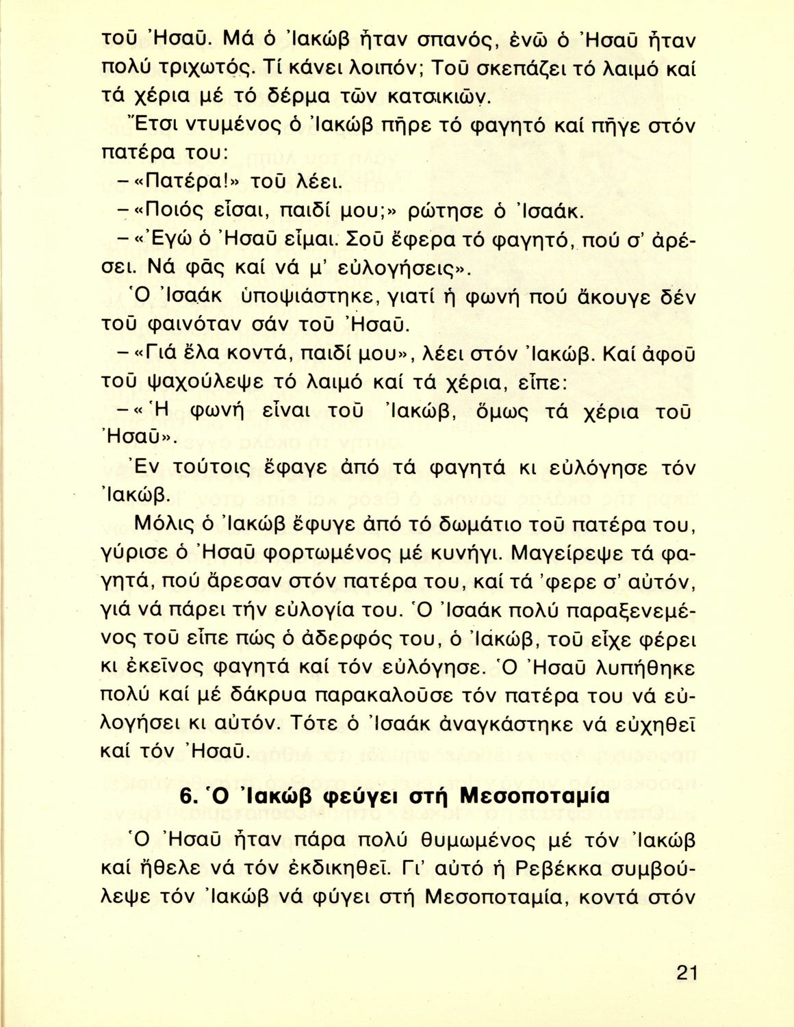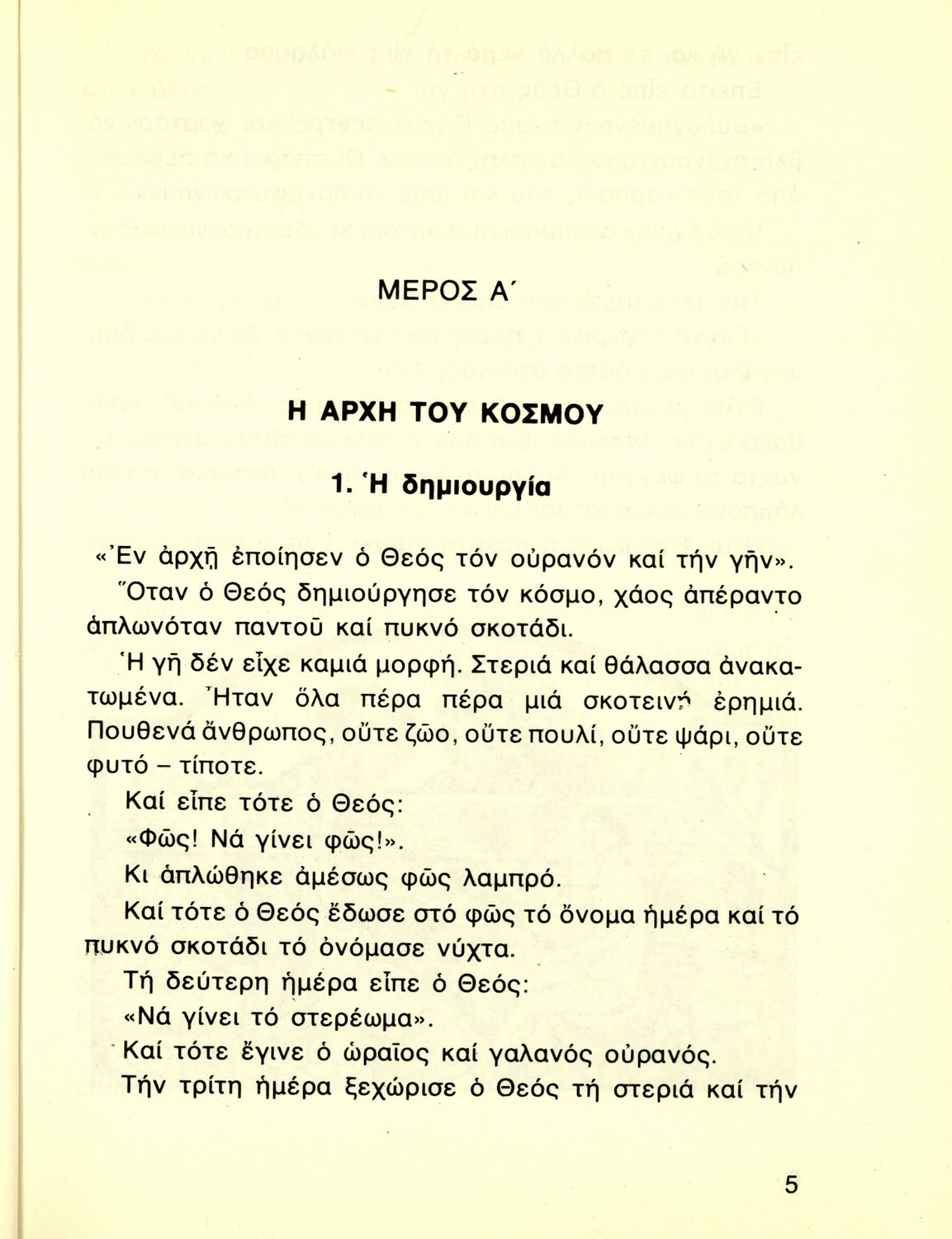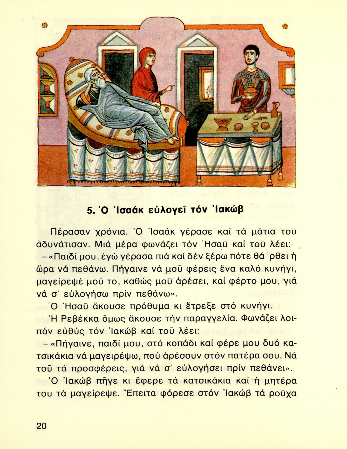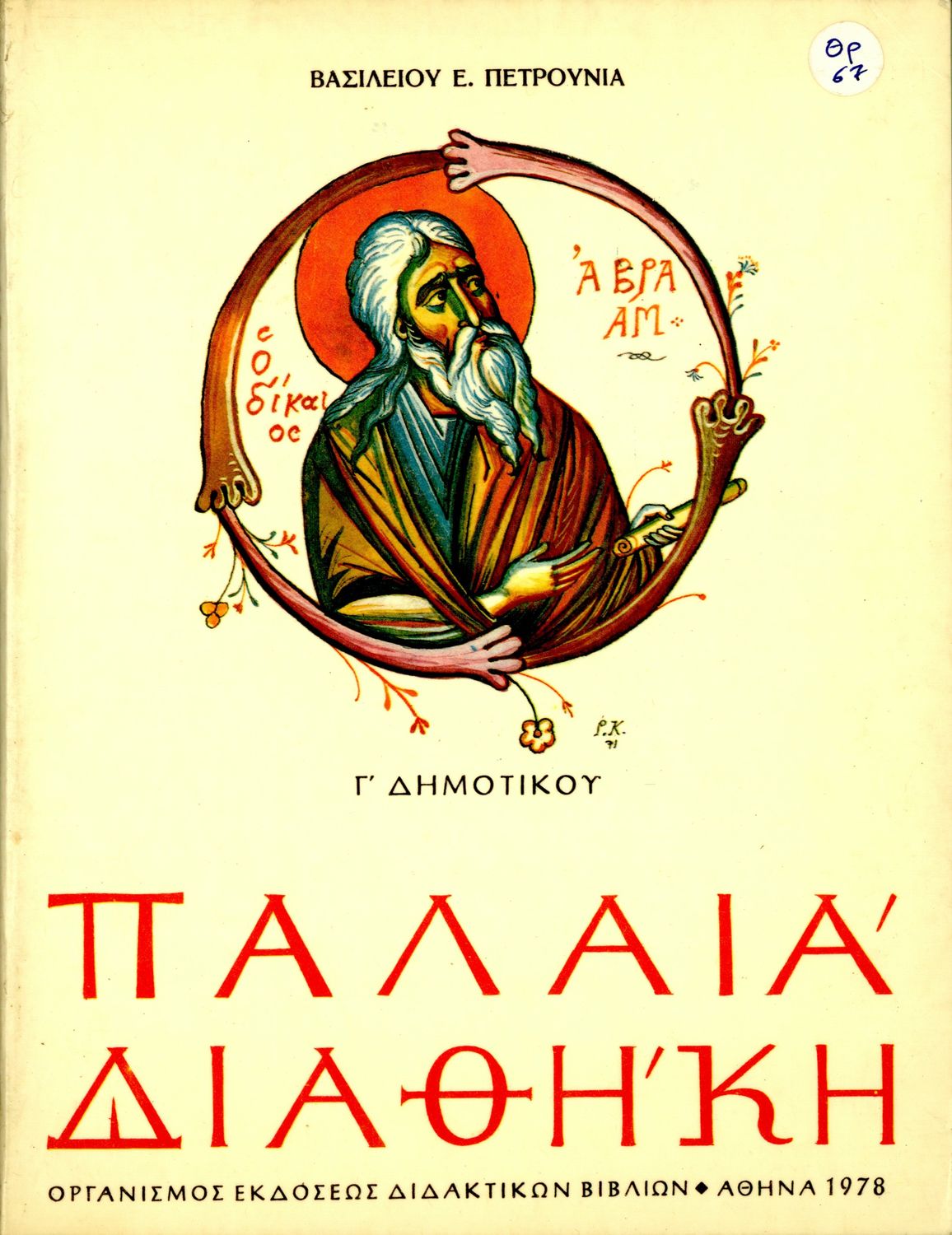 Σχολικό εγχειρίδιο Θρησκευτικών Δημοτικού που συνιστά μία εξιστόρηση της Παλαιάς Διαθήκης από τη δημιουργία του κόσμου ως τους Προφήτες.