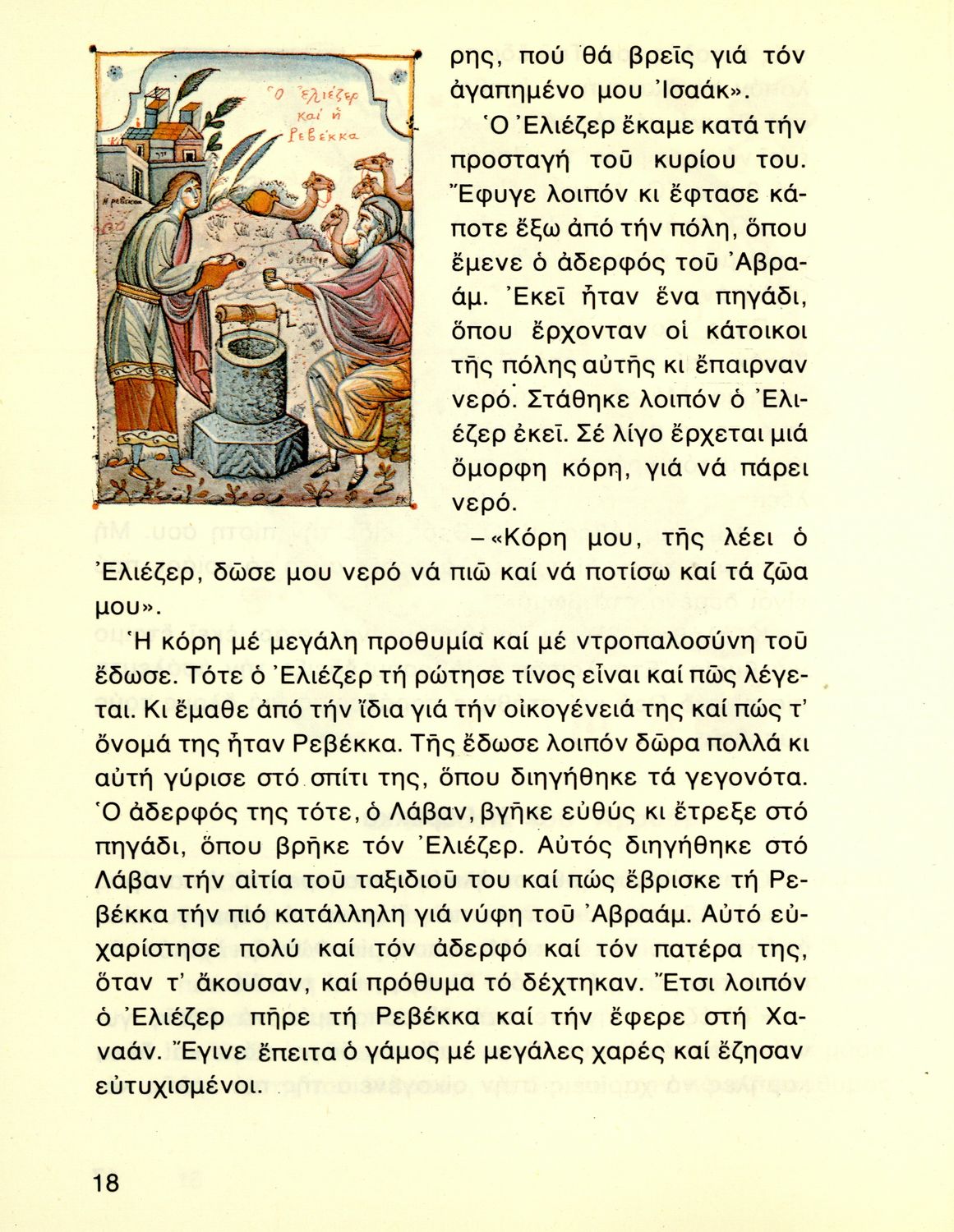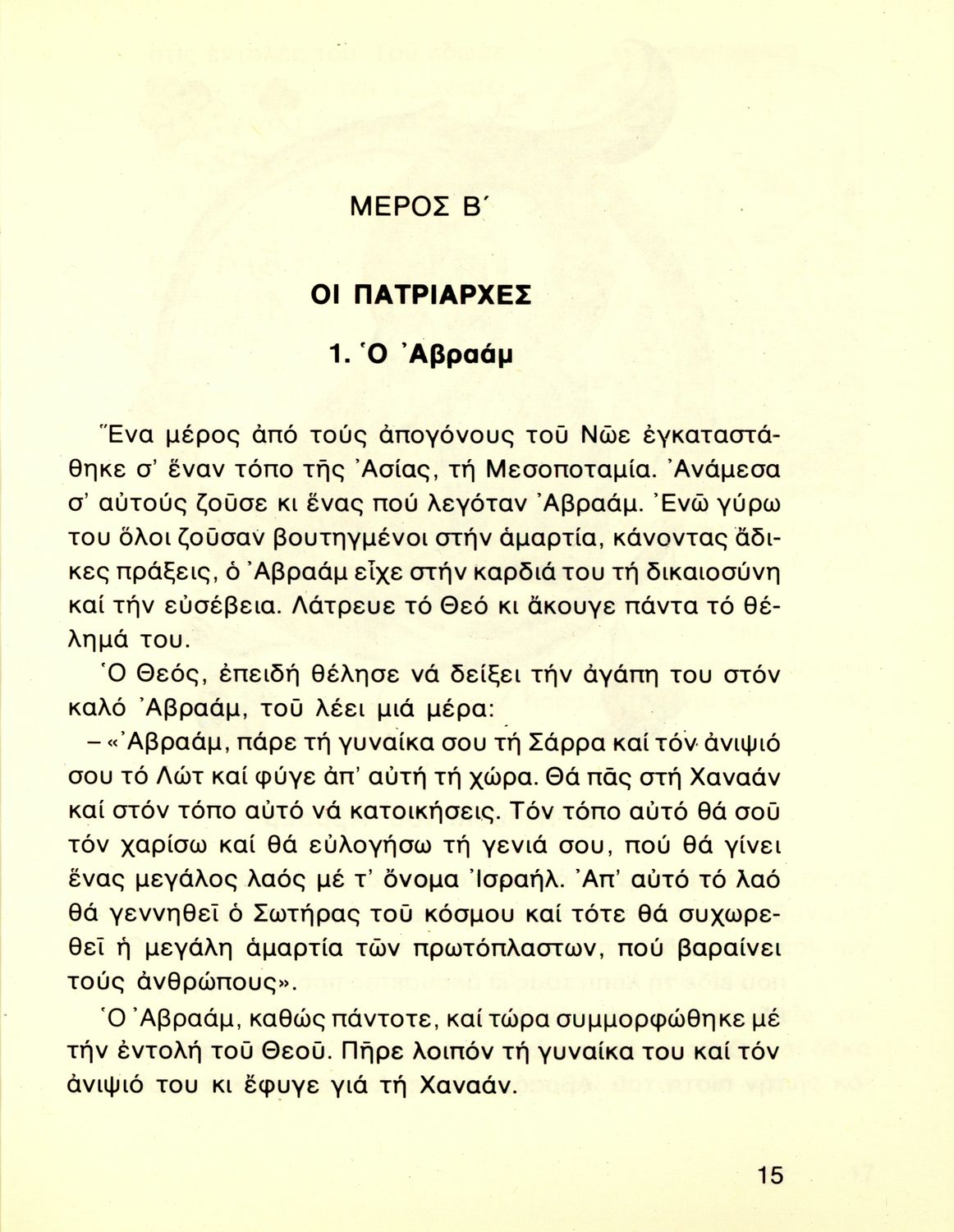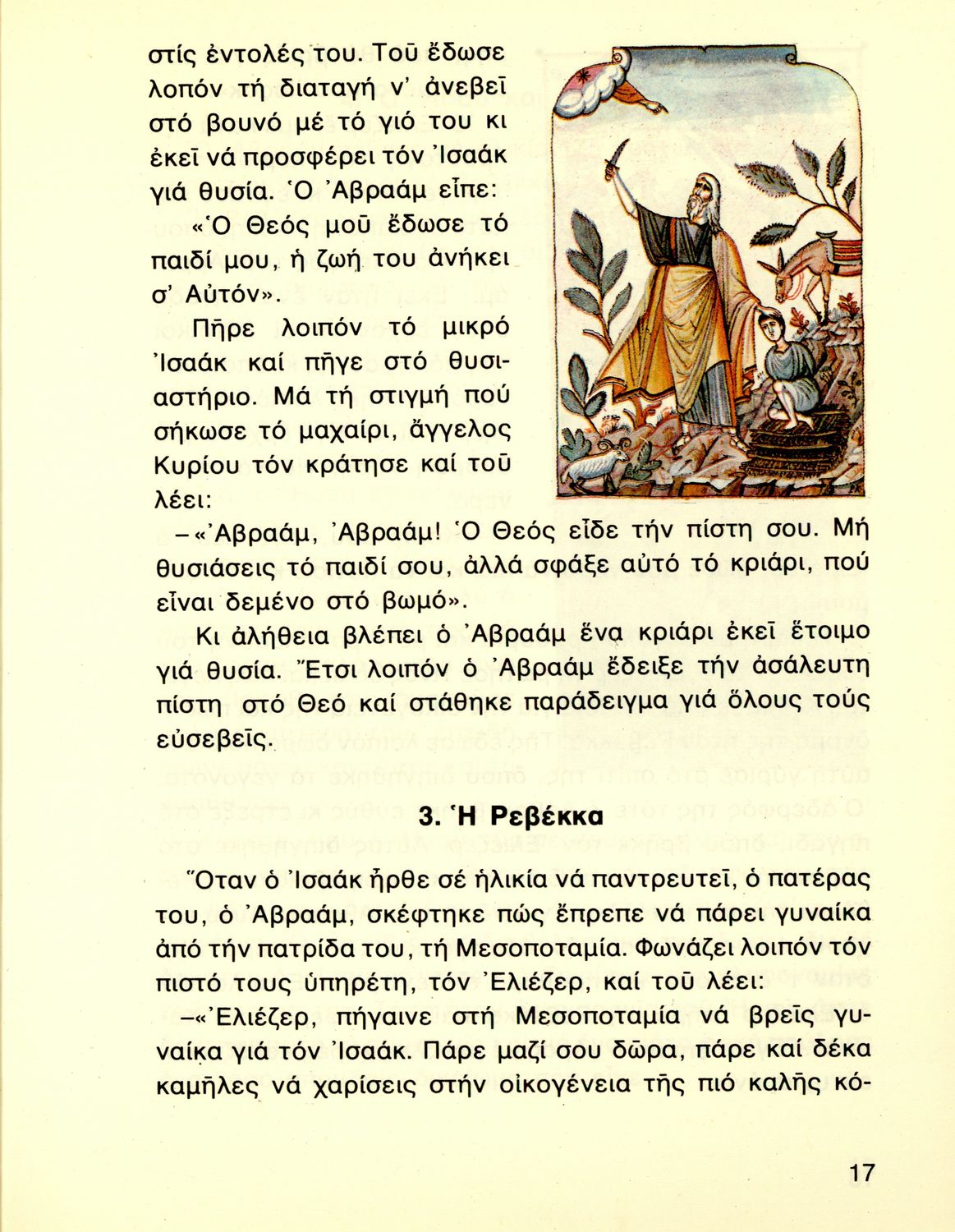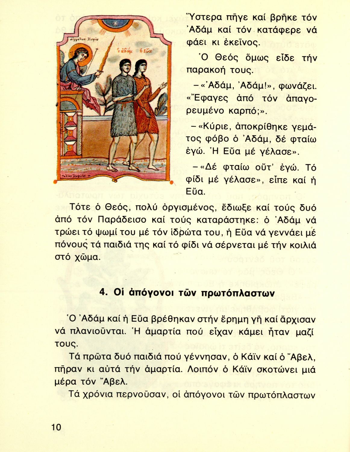 Σχολικό εγχειρίδιο Θρησκευτικών [Γ΄ Δημοτικού] που συνιστά μία εξιστόρηση της Παλαιάς Διαθήκης από τη δημιουργία του κόσμου ως τους Προφήτες.