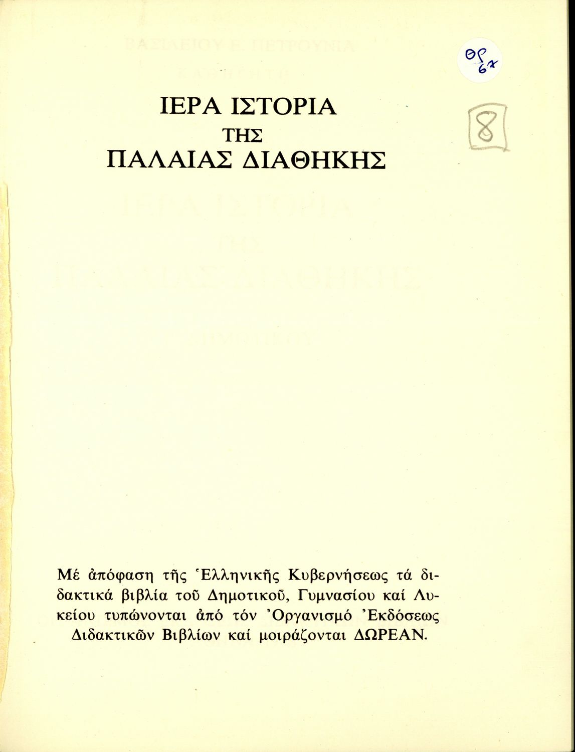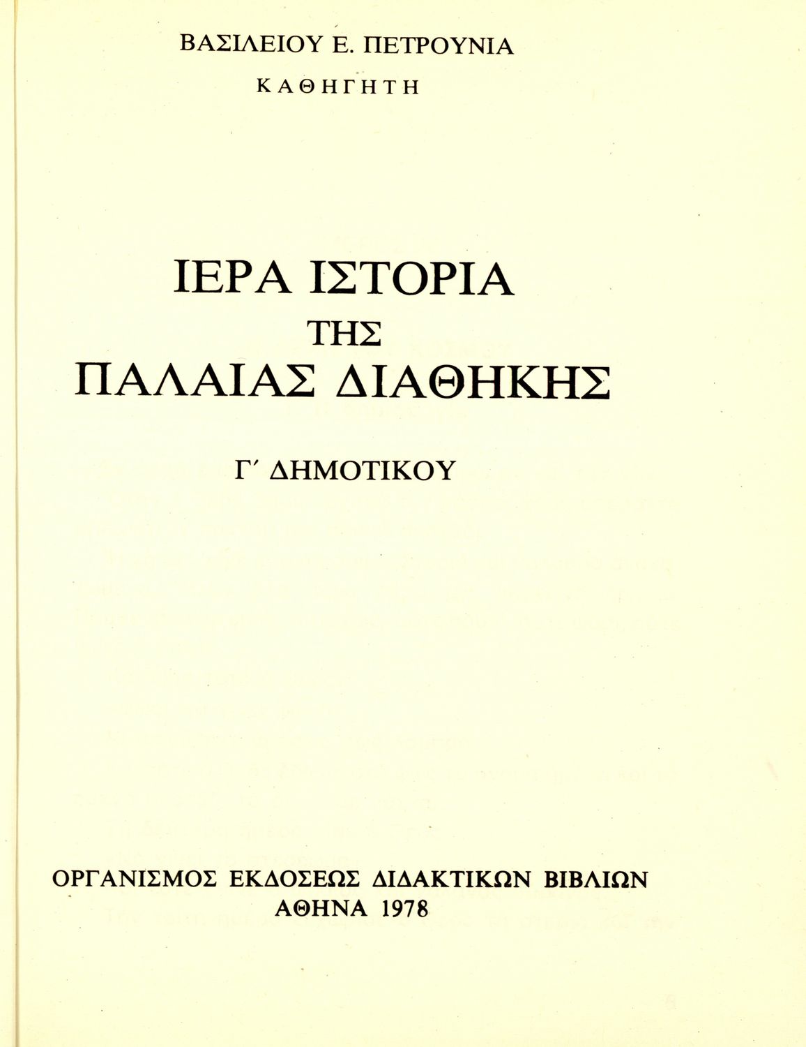 Τίτλος: Ιερά Ιστορία της Παλαιάς Διαθήκης Γ΄ Δημοτικού