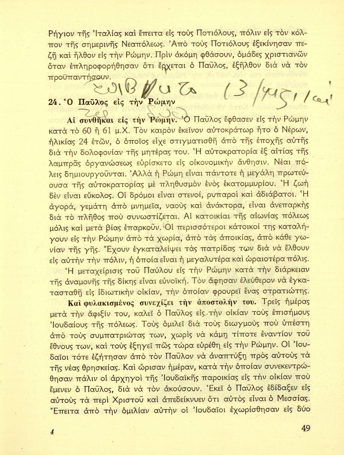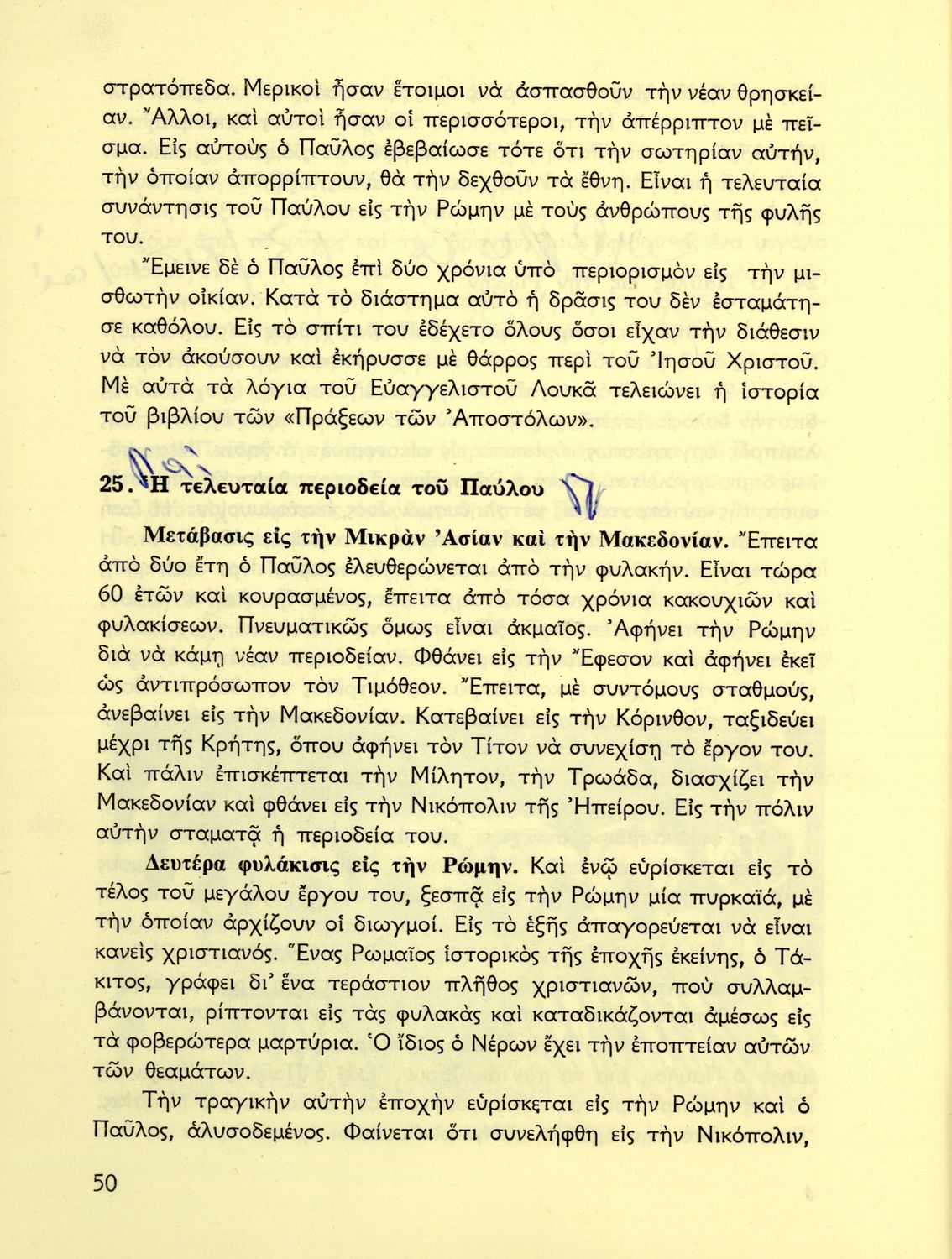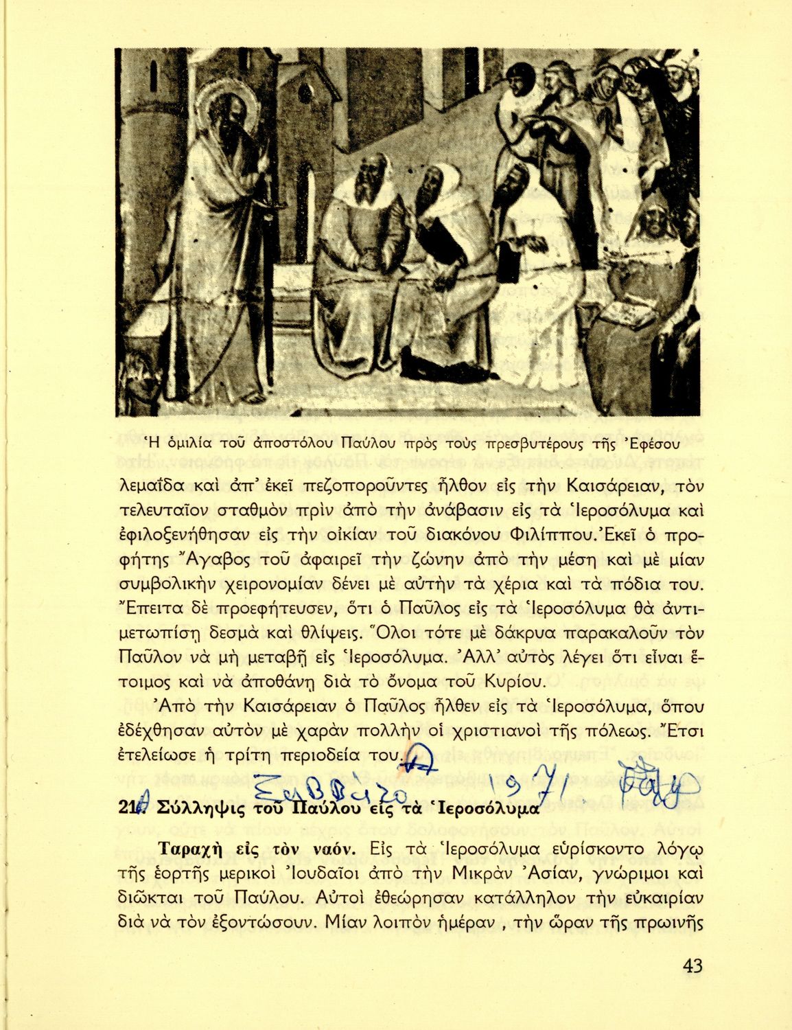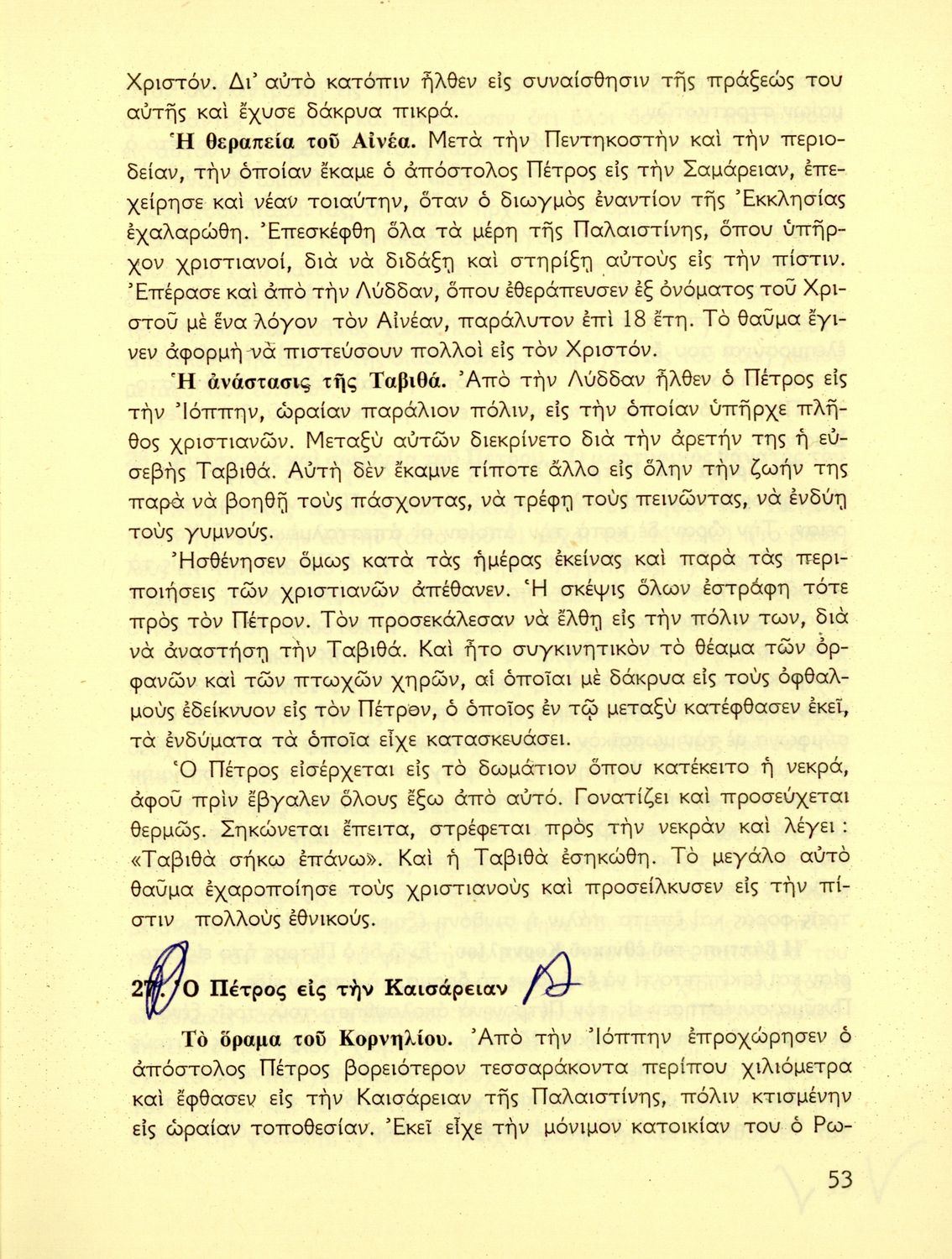 Σχολικό εγχειρίδιο Θρησκευτικών Ε΄ Δημοτικού που αποτελεί μια ιστορική επισκόπηση της Ορθόδοξης Εκκλησίας από την ίδρυσή της μέχρι την ίδρυση της Εκκλησίας της Ελλάδας. Φέρει το σύμβολο της δικτατορίας.
