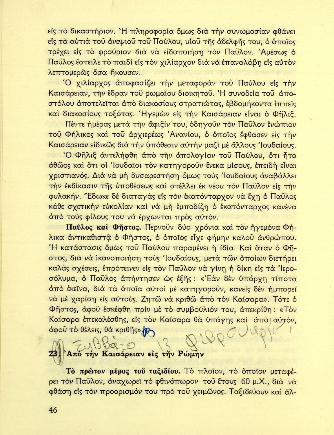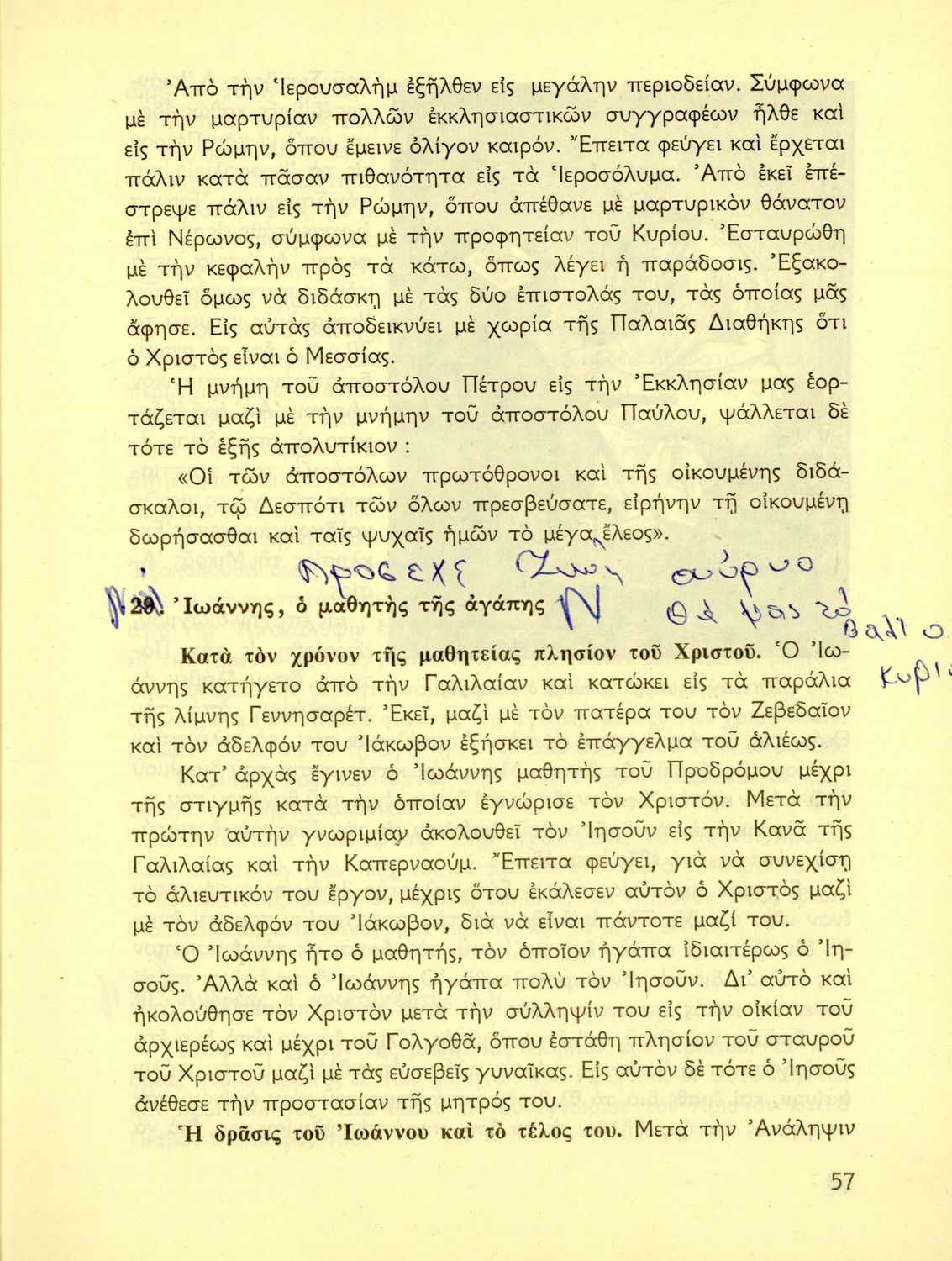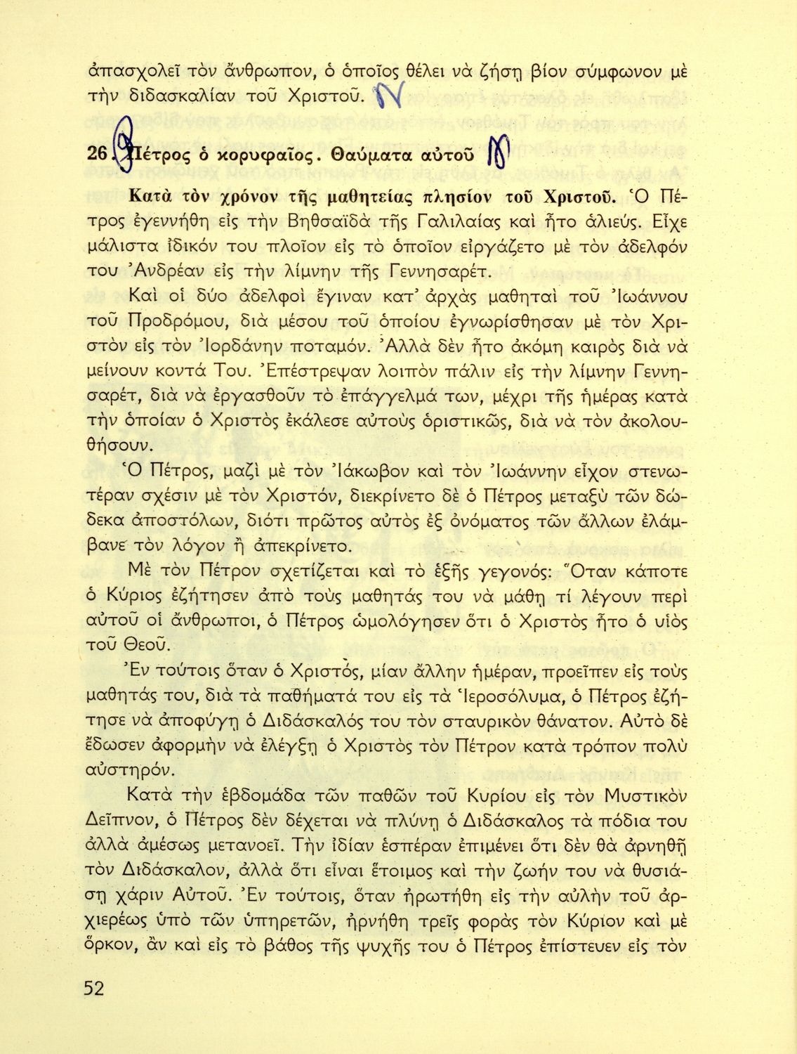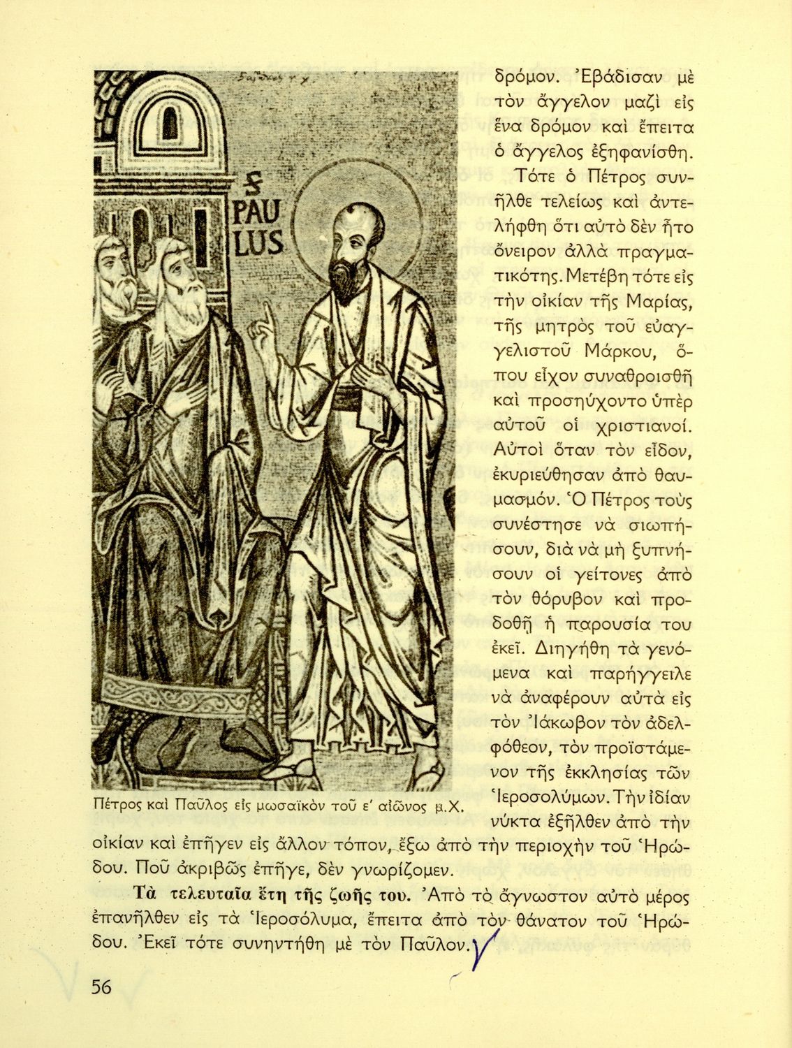 Σχολικό εγχειρίδιο Θρησκευτικών Ε΄ Δημοτικού που αποτελεί μια ιστορική επισκόπηση της Ορθόδοξης Εκκλησίας από την ίδρυσή της μέχρι την ίδρυση της Εκκλησίας της Ελλάδας. Φέρει το σύμβολο της δικτατορίας.